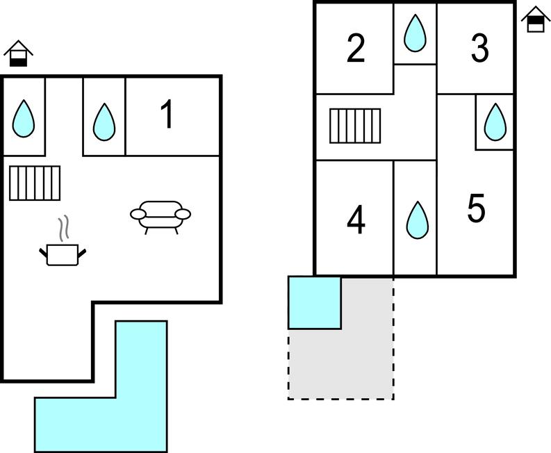 Badeværelse 5m2 (nr. 1) - WC. Varmt og koldt vand. Bruser