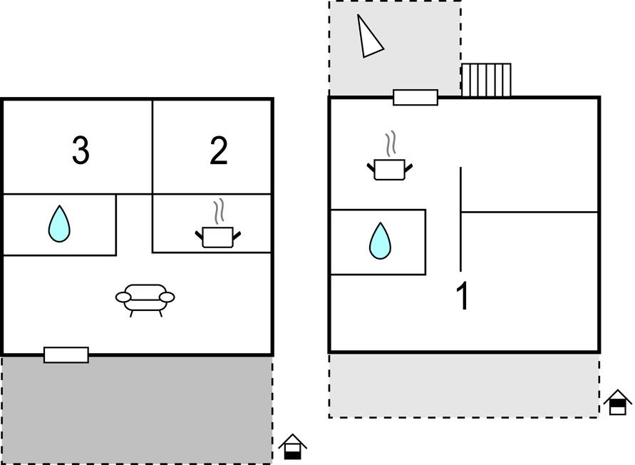 I den lukkede have finder I behagelige havemøbler, hvor der også er en grill samt parasol, så I kan lave lækre måltider og nyde dem i skyggen. De to etager er forbundet med udvendige trapper.