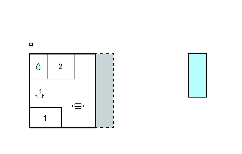 Opholdsstue/køkken 20m2 - 2 Sovepladser. (Sofa, madras eller lignende).