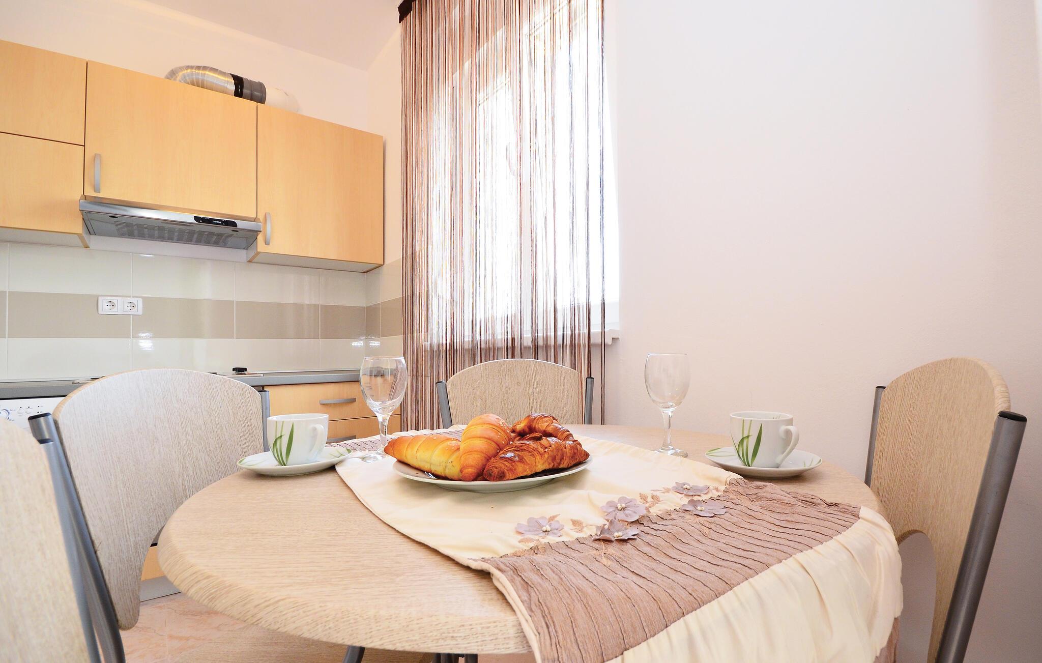 Denne lejlighed tilbyder alt, hvad I behøver for en afslappende pause fra hverdagen. Slap af i den behagelige sofa med en kop kaffe eller lyt til en interessant podcast. Tilbered lækre måltider i det moderne køkken, og server dem med et glas vin.