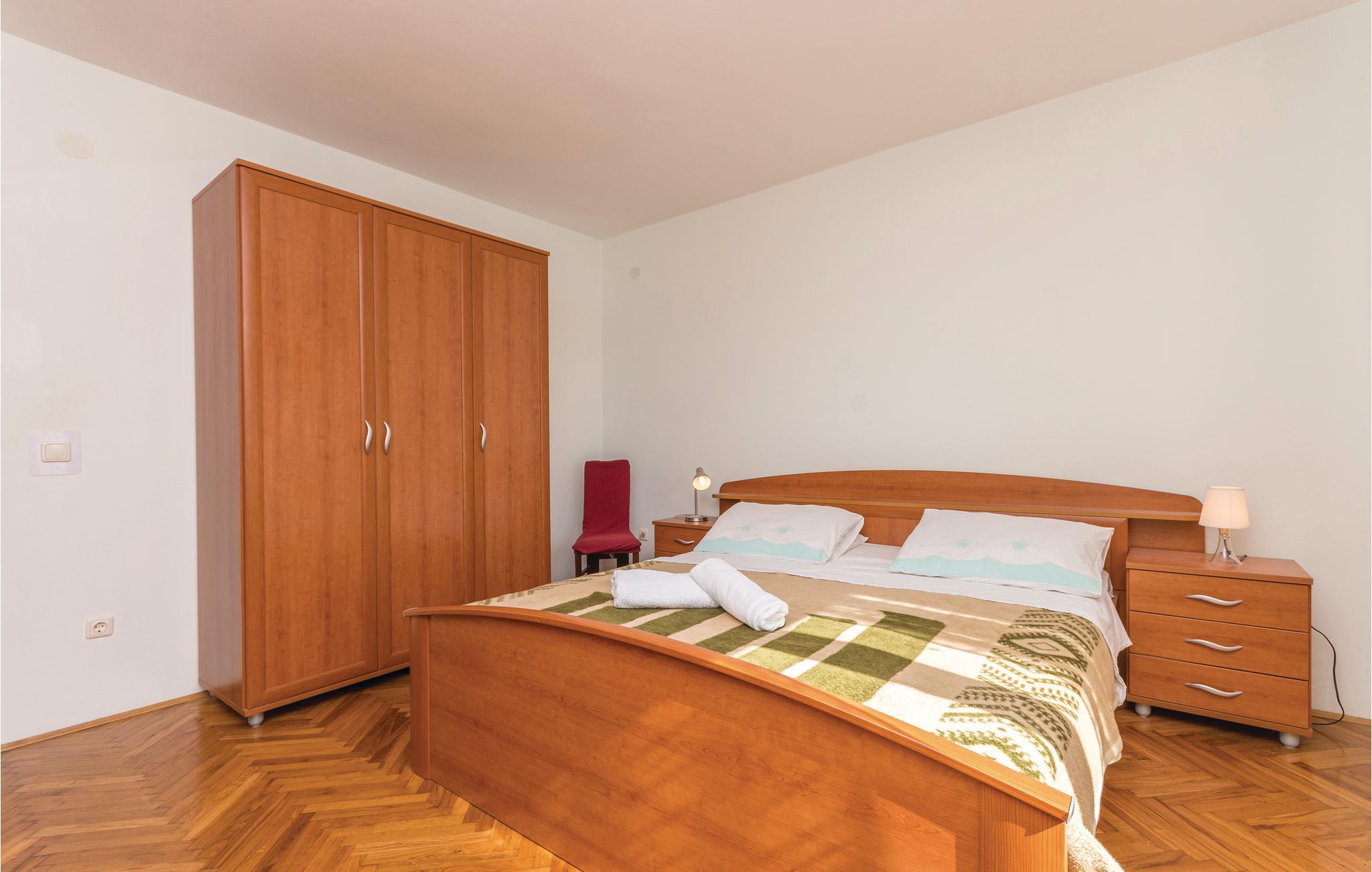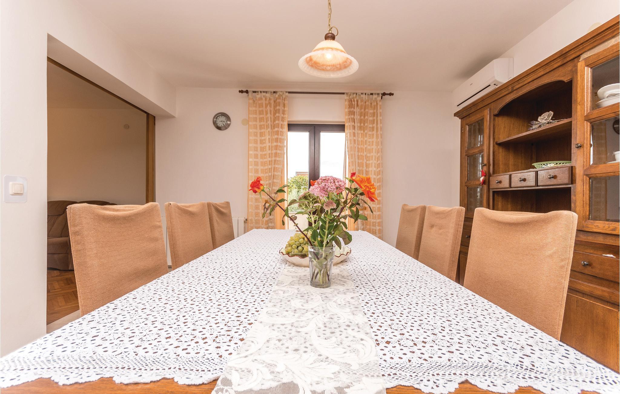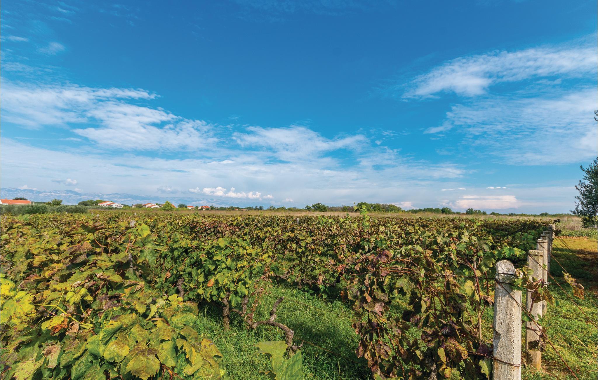 Dette feriehus er bygget i traditionel stil og rummer tre soveværelser med dobbeltsenge, stue og køkken med spisestue. Huset ligger på en stor grund, der er omgivet af husejerens vinbjerge. Fra de to store terrasser er der udsigt over Velebit bjergene, Privlakas marker og delvis over havet. Vi kan varmt anbefale en tur til den interessante by Zadar. I Zadar er der en smuk gammel bydel og de moderne installationer Solhilsen og Havorgelet samt mange eksempler på anderledes og ny arkitektur. Når bølgerne slår mod Havorgelet opstår en særegen musik og når solen går ned så er der et betagende spil af lys i Solhilsen. Besøg også den historiske lille by Nin, der er kendt for sin gamle bykerne og det helende mudder ved Dronningestranden.