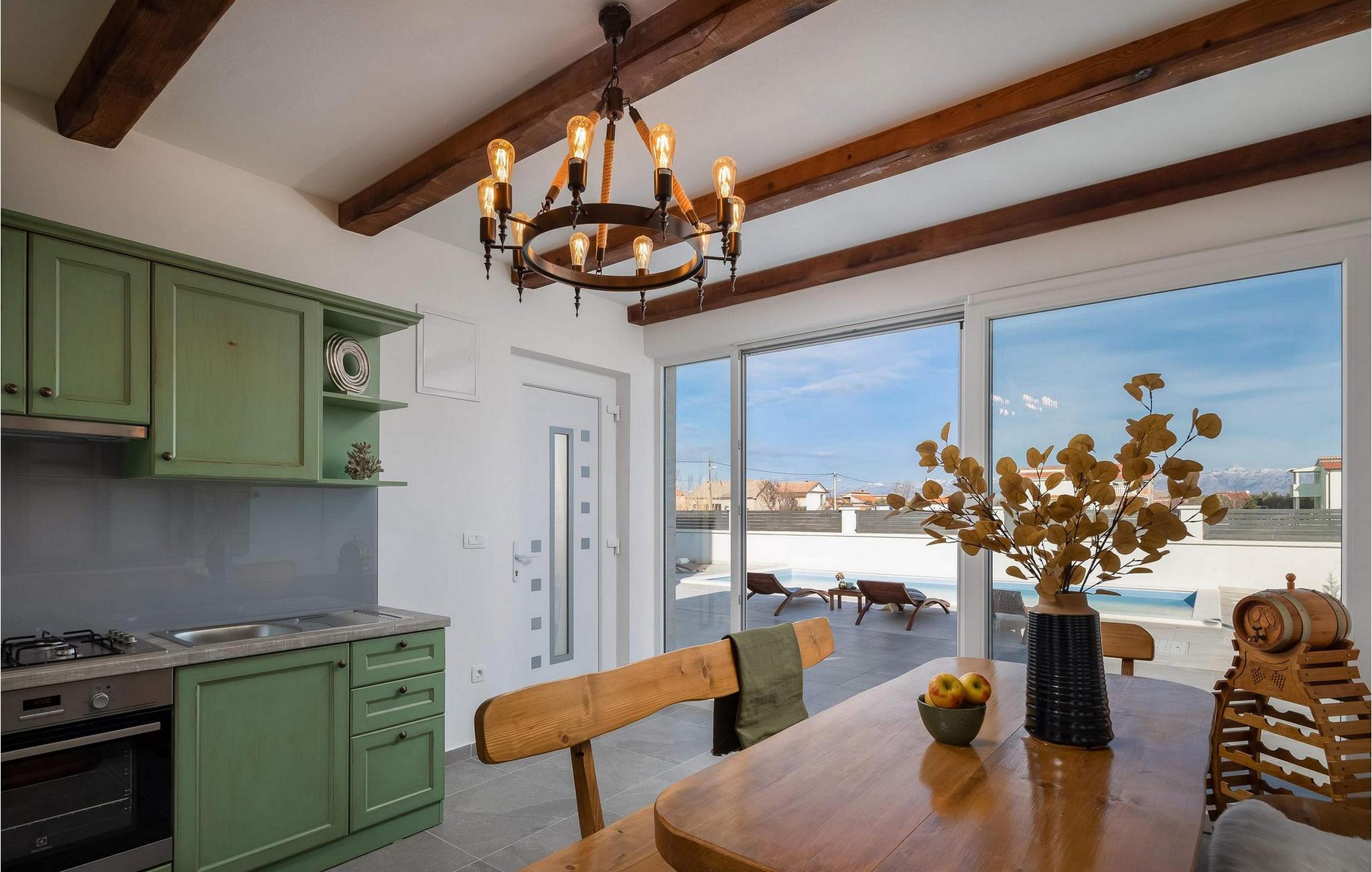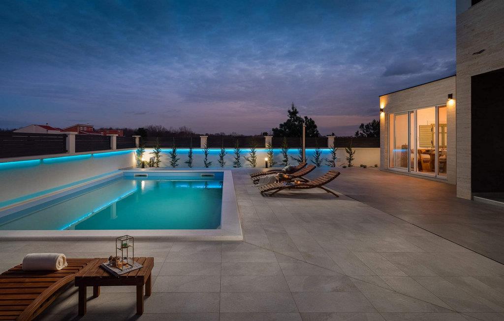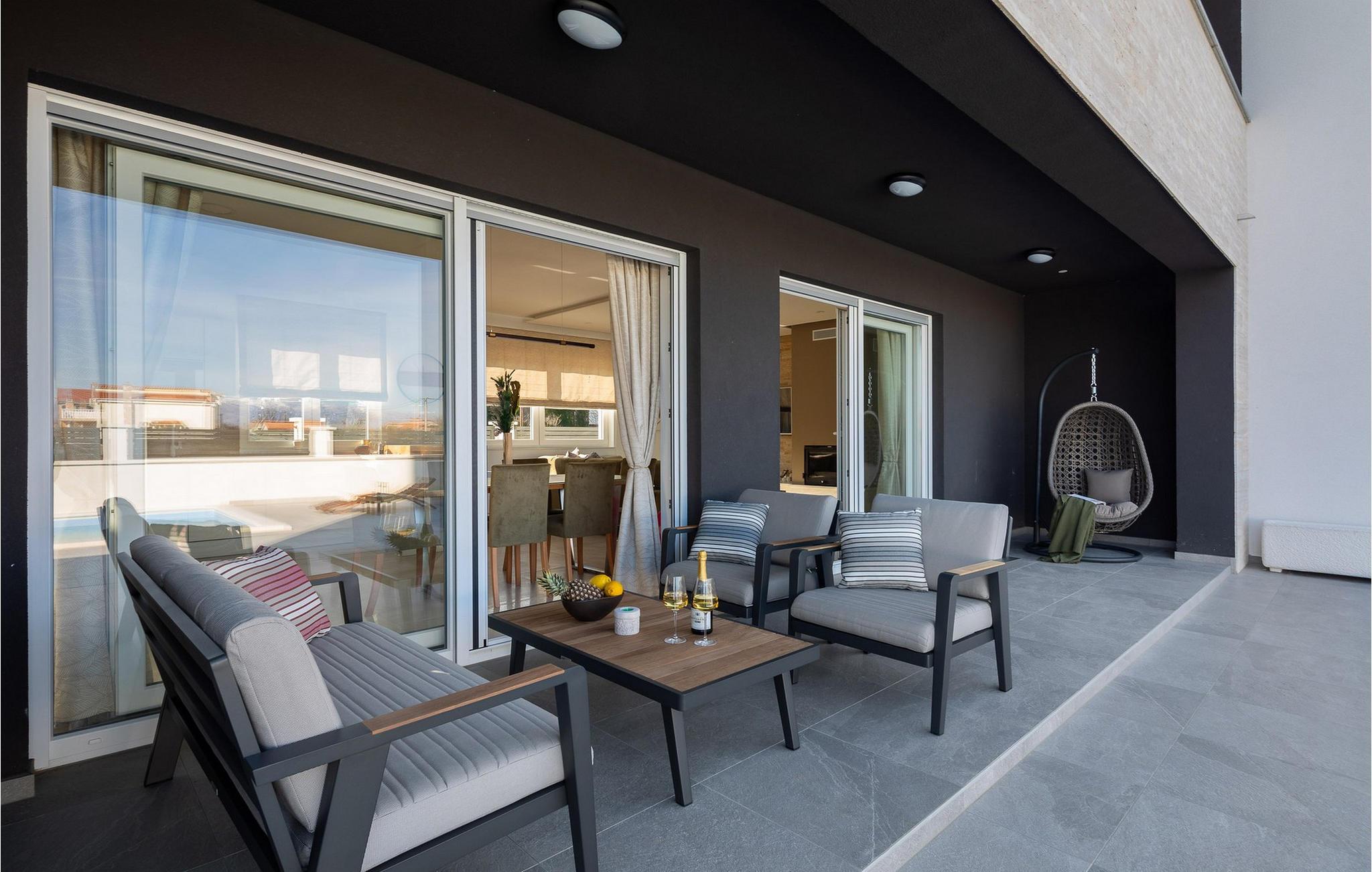 Begynd dagene med en forfriskende dukkert i den store pool og svøm et par afslappende baner. Slap af på solterrassen med en kølig drink, læn jer tilbage med en god bog eller slap blot af på liggestolene. Det overdækkede siddeområde giver skygge og er perfekt til udendørs spisning eller afslappende aftener med et glas vin. En murstensgrill er også tilgængelig til at tilberede sprøde retter - nyd den dalmatiske sommer fuldt ud.