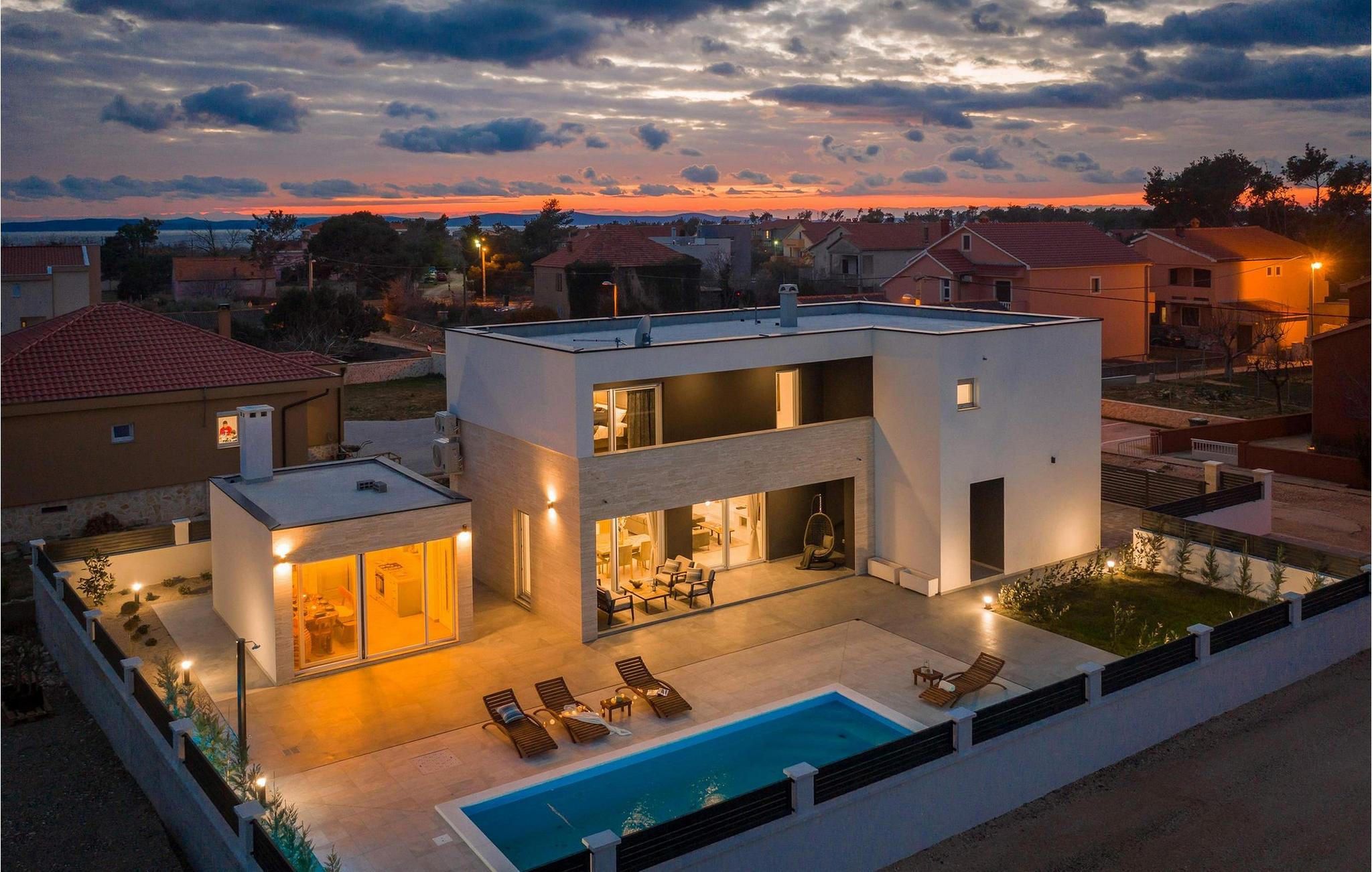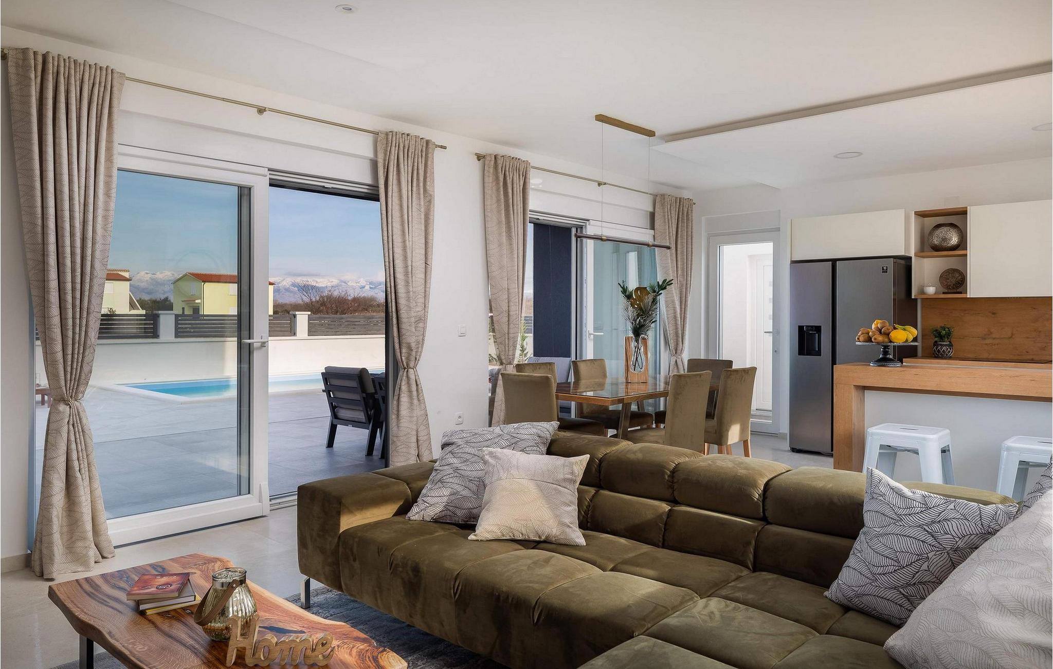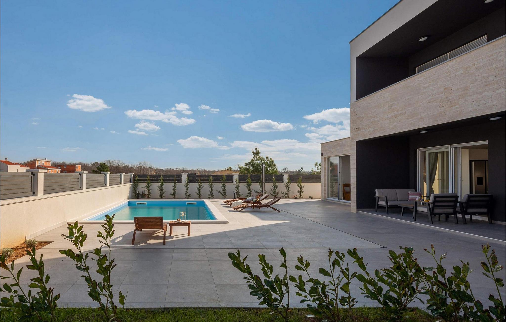 Begynd dagene med en forfriskende dukkert i den store pool og svøm et par afslappende baner. Slap af på solterrassen med en kølig drink, læn jer tilbage med en god bog eller slap blot af på liggestolene. Det overdækkede siddeområde giver skygge og er perfekt til udendørs spisning eller afslappende aftener med et glas vin. En murstensgrill er også tilgængelig til at tilberede sprøde retter - nyd den dalmatiske sommer fuldt ud.