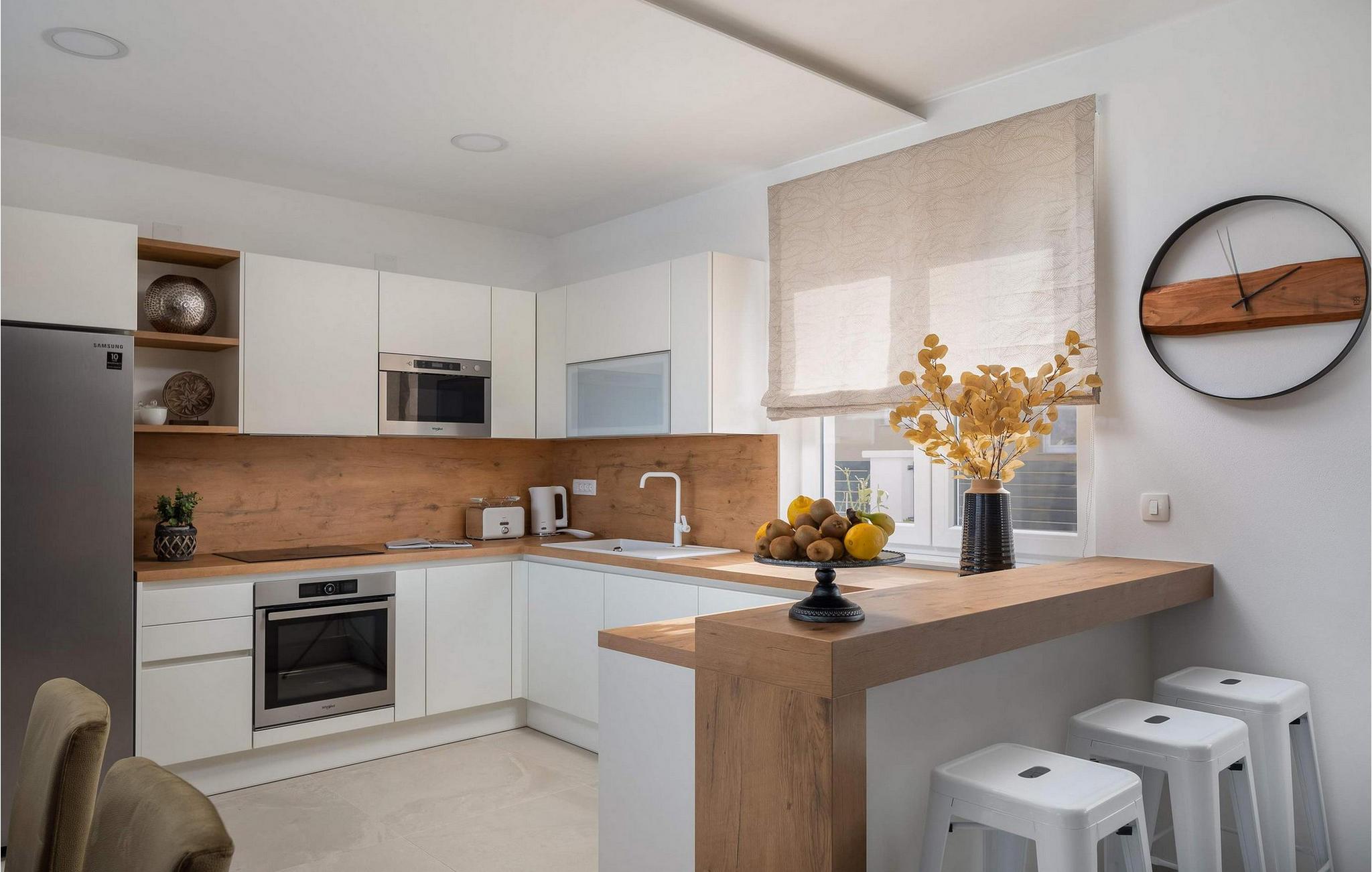 Villa Katarina har en harmonisk blanding af moderne design og middelhavsstil. Møblerne er stilfulde, men hyggelige, med varme farver, trædetaljer og gennemtænkte accenter. Den lyse opholdsstue åbner ud til terrassen med en fantastisk udsigt over poolen eller havet. Lyt til god musik, nyd en sjov spilleaften eller test jeres evner med en runde bordfodbold. Tilbered lækre måltider i køkkenet og nyd dem sammen.