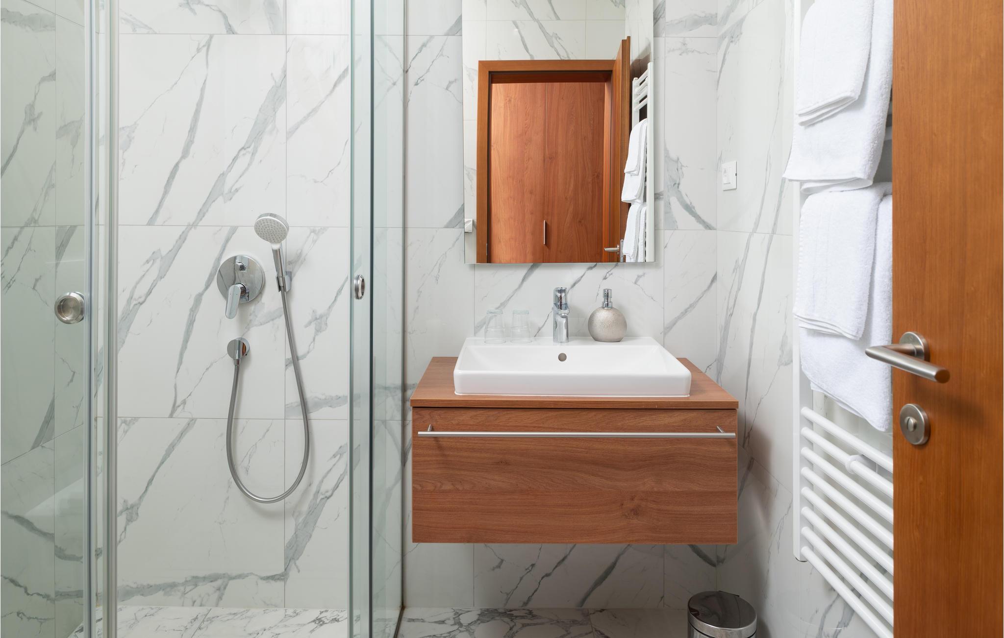 Badeværelse (nr. 1) - WC. Varmt og koldt vand. Bruser