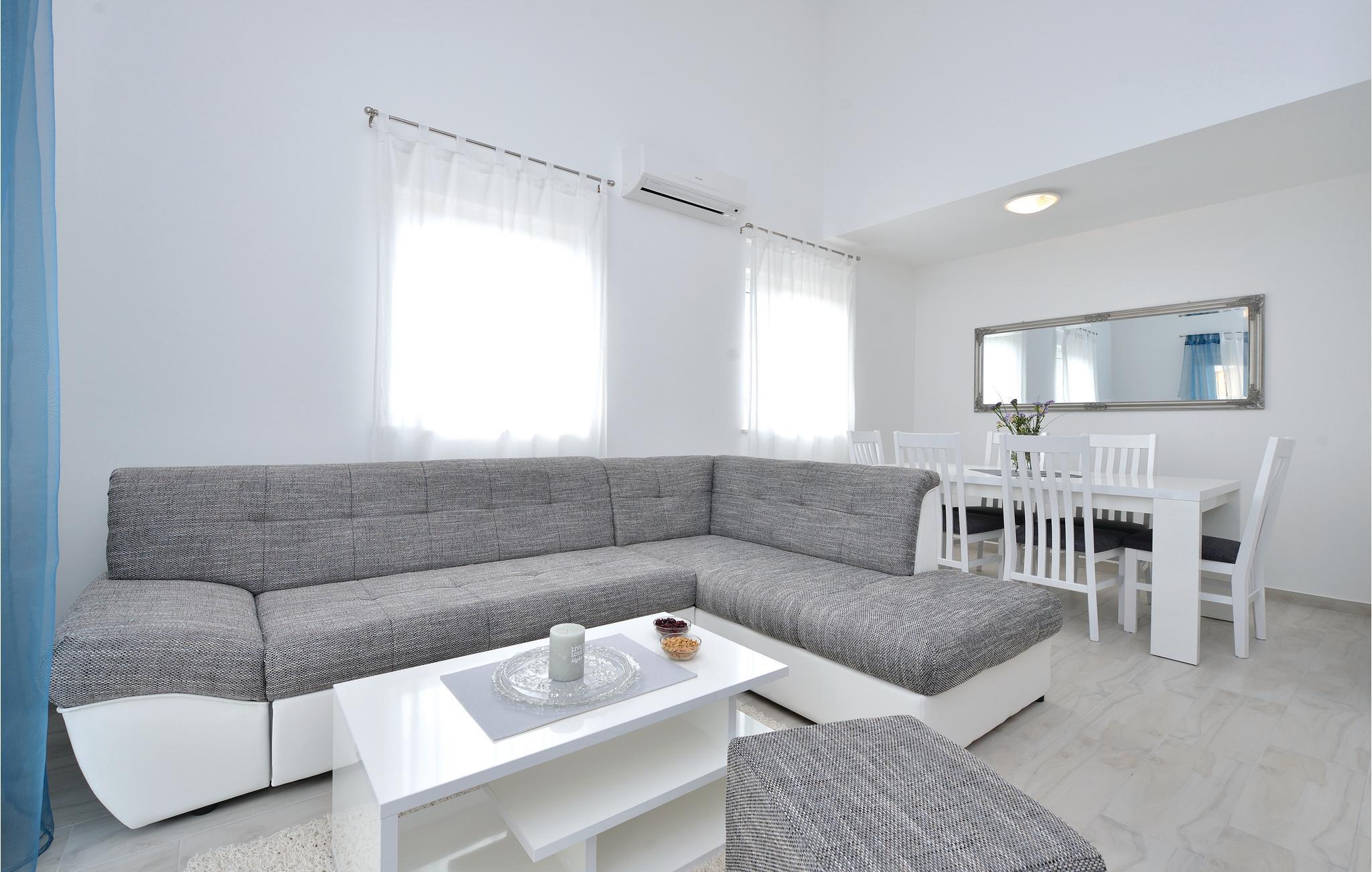 Dette sted er et yndet mål for familieferier. De funktionelt indrettede ferielejligheder byder på al nødvendig komfort til en afslappende ferie. CDZ875 og CDZ877 rummer to soveværelser og en altan med udsigt til gården, mens CDZ876 og CDZ878 med hhv. et soveværelse byder på en mindre altan. Gå en tur til nærmeste strand på kun fem minutter. Lær den rige kulturarv i Nin og Zadar at kende. Tag på udflugter til nationalparken Paklenica samt til Kornati-øerne, og lad jer fortrylle af den usædvanlige natur.