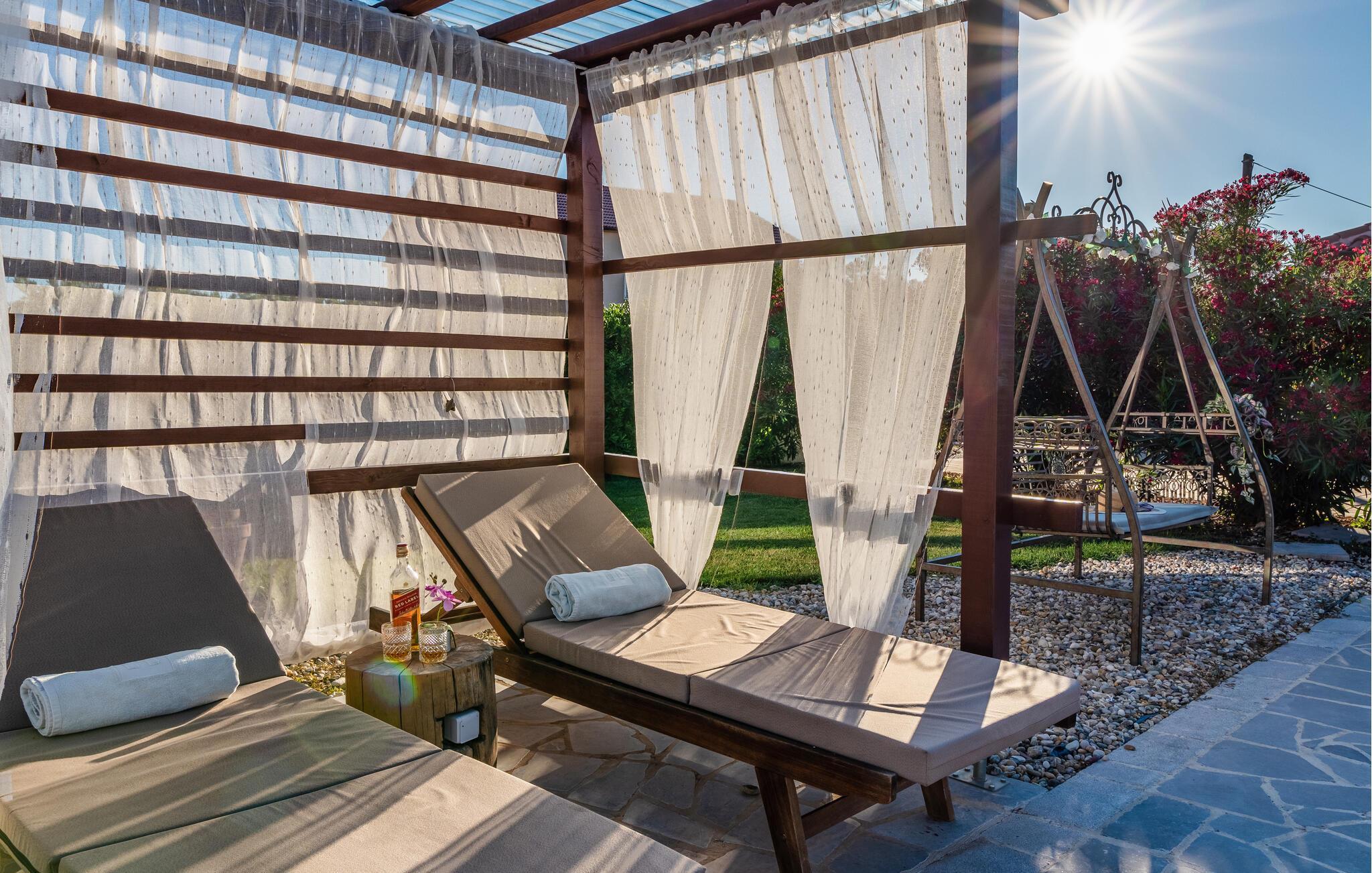 Nord for Zadar, ved den kysten med forrevne klipper, skønne bugte og skønne strande, ligger Vrsi, en lille by hvor dette feriehus med egen privat pool ligger. Huset er bygget i smuk mediterran stil og indrettet med alle former for bekvemmeligheder til et behageligt ophold. Det smagfulde interiør får jer til at slappe af fra feriens første sekund. Hop I den private pool lige når I har lyst, lav mad på grillen der står i haven og børnene kan lege og tumle sig i haven. Ud over at nyde badedage på de skønne strande og i Adriaterhavet, er her mange muligheder for en aktiv ferie. I kan cykle ad velanlagte stier, dykke ned under havets overflade, wind- eller kitesurfe og dyrke mange andre former for vandsport. Besøg også Nin, en historisk by med mange seværdigheder og en af de mange Natur- eller nationalparker i området.