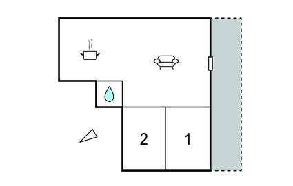 Opholdsstue/køkken 24m2 - 2 Sovepladser. (Sofa, madras eller lignende).