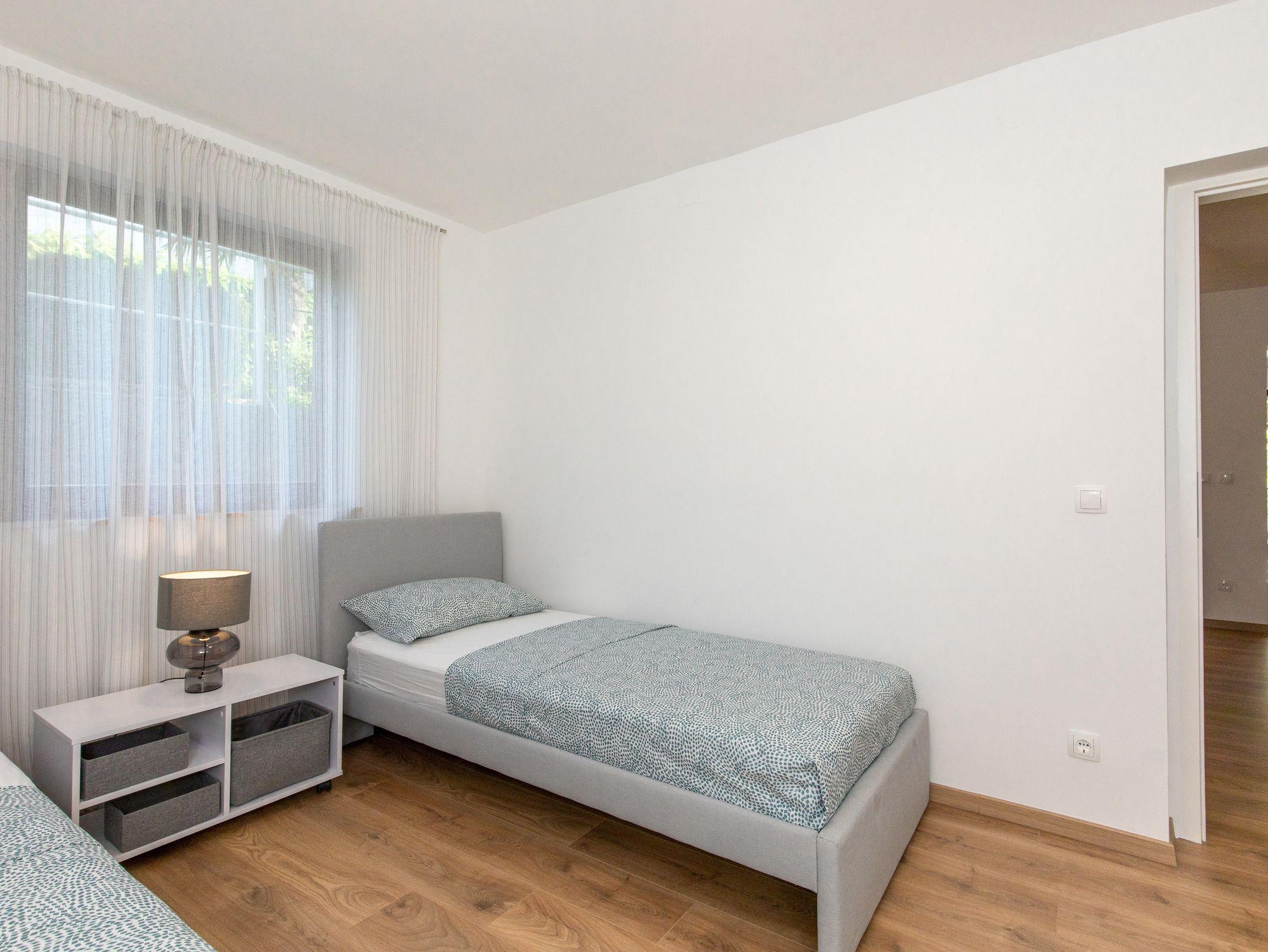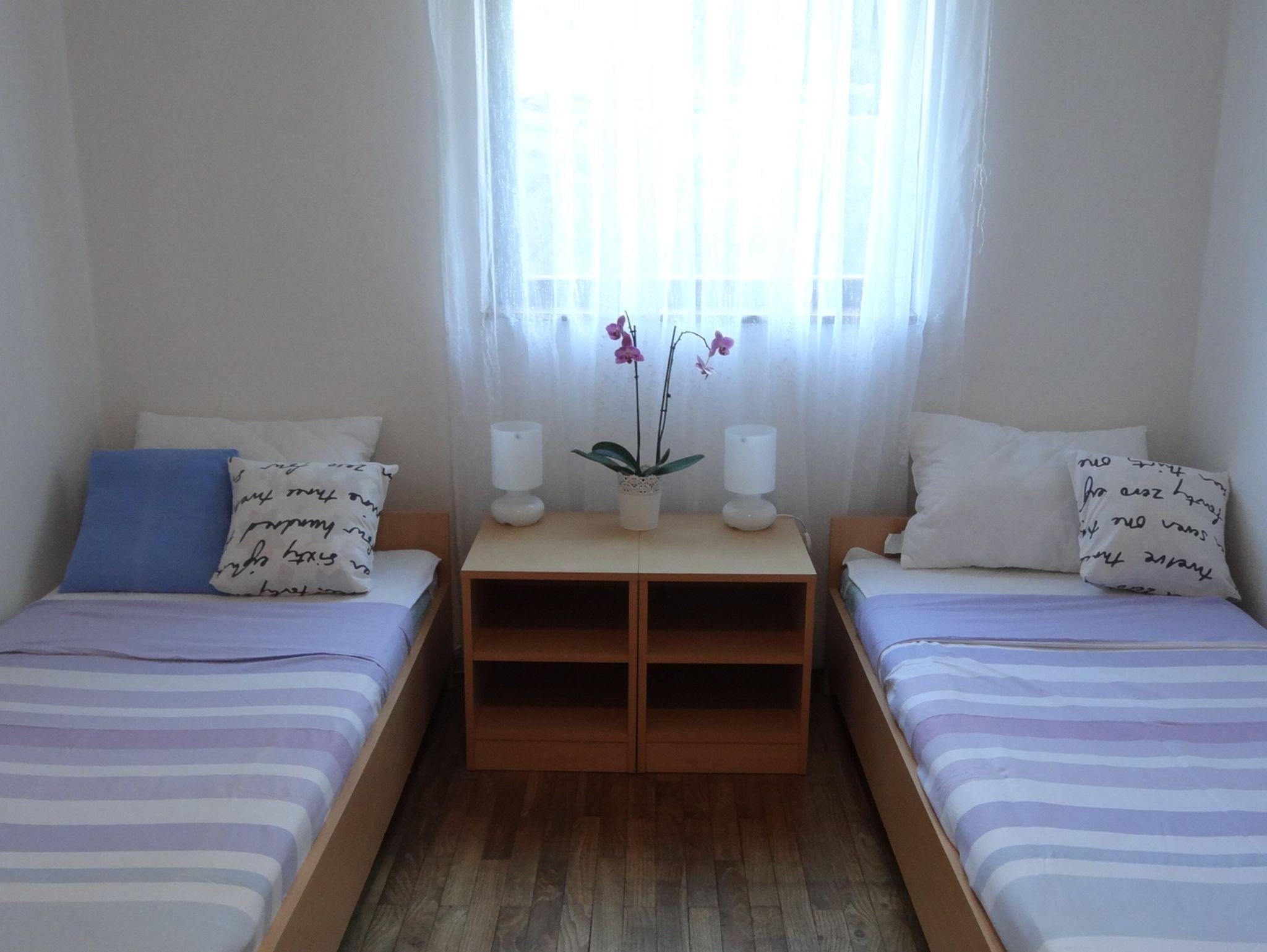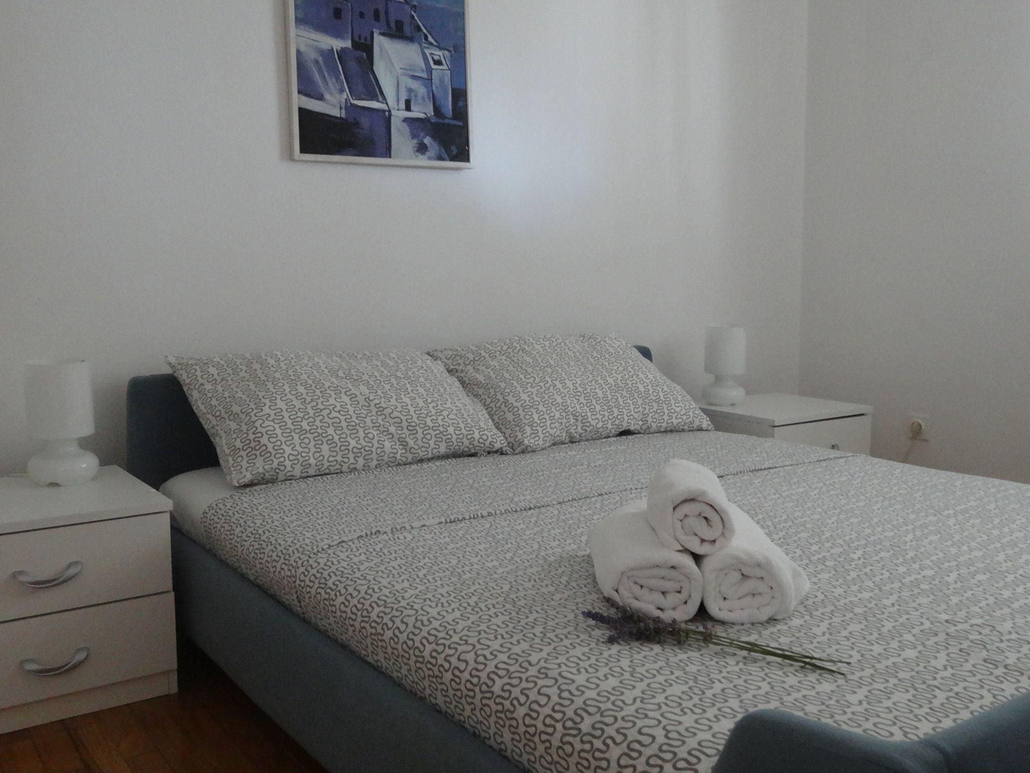 Ferienwohnung bietet Platz für 4 Gäste. Die Betten sind in Schlafzimmern, die es 2 gibt, innerhalb einer Gesamtfläche von 44m2, angeordnet. Die Gäste haben eine eigene Terrasse zur Verfügung, auf der sie in warmen Sommernächten genießen können. Es ist erlaubt, Speisen auf dem Gemeinschafts-Grill vorzubereiten. IM PREIS INBEGRIFFEN: Kurtaxe, Endreinigung, Klimatisierung, Parkplatz, Internet. VERBINDLICHE ZUSÄTZLICHE KOSTEN: Aufzahlung für Kurzaufenthalte (prozentualer Zuschlag pro Nächtigungsanzahl: 30% - 1, 20% - 2, 10% - 3). Die Verfügbarkeit zusätzlicher Dienstleistungen in Ihrem reservierten Termin und die Preise derselben (falls nicht aufgeführt) müssen im Voraus überprüft werden. Zusätzliche Dienstleistungen die in der Zahlungsaufforderung nicht aufgeführt sind werden direkt beim Vermieter bezahlt, angenommen der Gast nutzt auch diese.