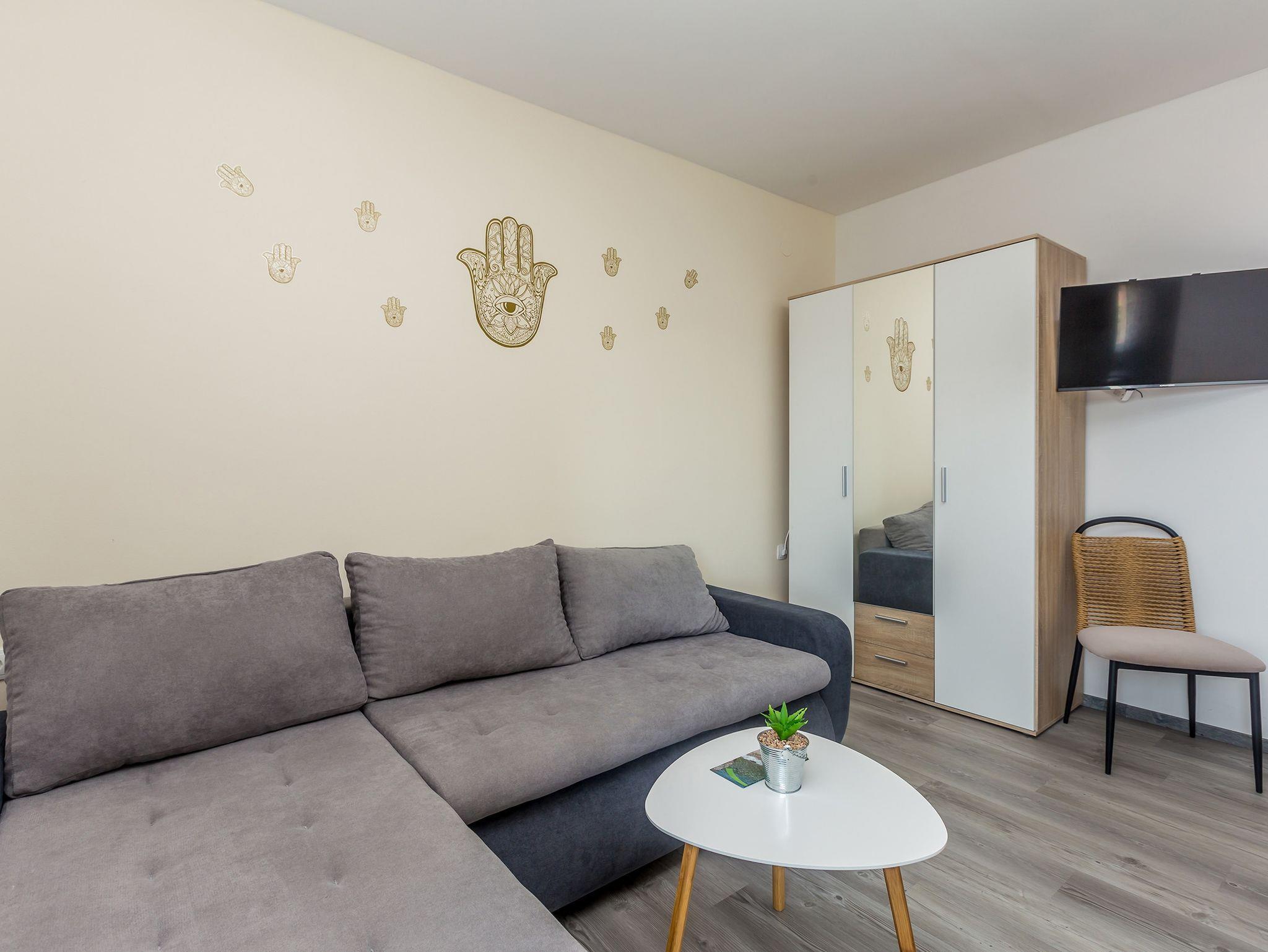 Ferienwohnung bietet Platz für 3 Gäste. Die Betten sind in Schlafzimmern, die es 1 gibt, innerhalb einer Gesamtfläche von 31m2, angeordnet. Die Gäste haben eine eigene Terrasse zur Verfügung, auf der sie in warmen Sommernächten genießen können. Das Apartment bietet Meerblick. Es ist erlaubt, Speisen auf dem Gemeinschafts-Grill vorzubereiten. IM PREIS INBEGRIFFEN: Kurtaxe, Endreinigung, Klimatisierung, Parkplatz, Internet. Die Verfügbarkeit zusätzlicher Dienstleistungen in Ihrem reservierten Termin und die Preise derselben (falls nicht aufgeführt) müssen im Voraus überprüft werden. Zusätzliche Dienstleistungen die in der Zahlungsaufforderung nicht aufgeführt sind werden direkt beim Vermieter bezahlt, angenommen der Gast nutzt auch diese.