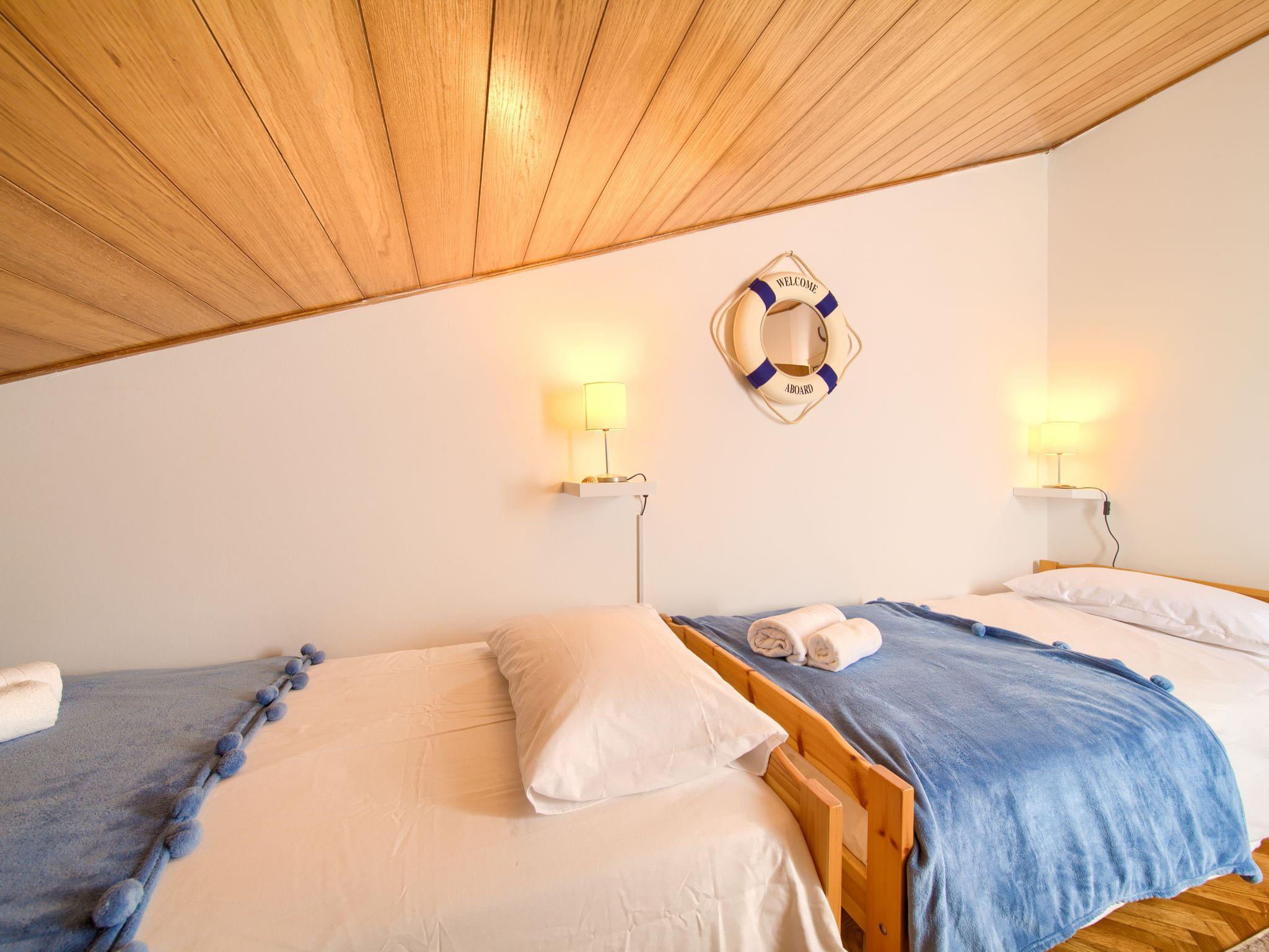 Ferienwohnung bietet Platz für 4 Gäste. Die Betten sind in Schlafzimmern, die es 2 gibt, innerhalb einer Gesamtfläche von 44m2, angeordnet. Die Gäste haben eine eigene Terrasse zur Verfügung, auf der sie in warmen Sommernächten genießen können. Das Apartment bietet Meerblick. Für vollen Genuss und Entspannung gibt es einen privaten Grill für Gäste dieser Unterkunft. In der gebuchten Unterkunftseinheit zahlt man am Ort ein Depositum ( der Preis ist an der Internetseite angeführt ). IM PREIS INBEGRIFFEN: Kurtaxe, Endreinigung, Klimatisierung, Parkplatz, Internet, Bügeleisen, Bügelbrett. VERBINDLICHE ZUSÄTZLICHE KOSTEN: Kaution (150,00 € Einmalzahlung). UNVERBINDLICHE ZUSÄTZLICHE KOSTEN: Zentralheizung (10,00 € pro Nacht). Die Verfügbarkeit zusätzlicher Dienstleistungen in Ihrem reservierten Termin und die Preise derselben (falls nicht aufgeführt) müssen im Voraus überprüft werden. Zusätzliche Dienstleistungen die in der Zahlungsaufforderung nicht aufgeführt sind werden direkt beim Vermieter bezahlt, angenommen der Gast nutzt auch diese.