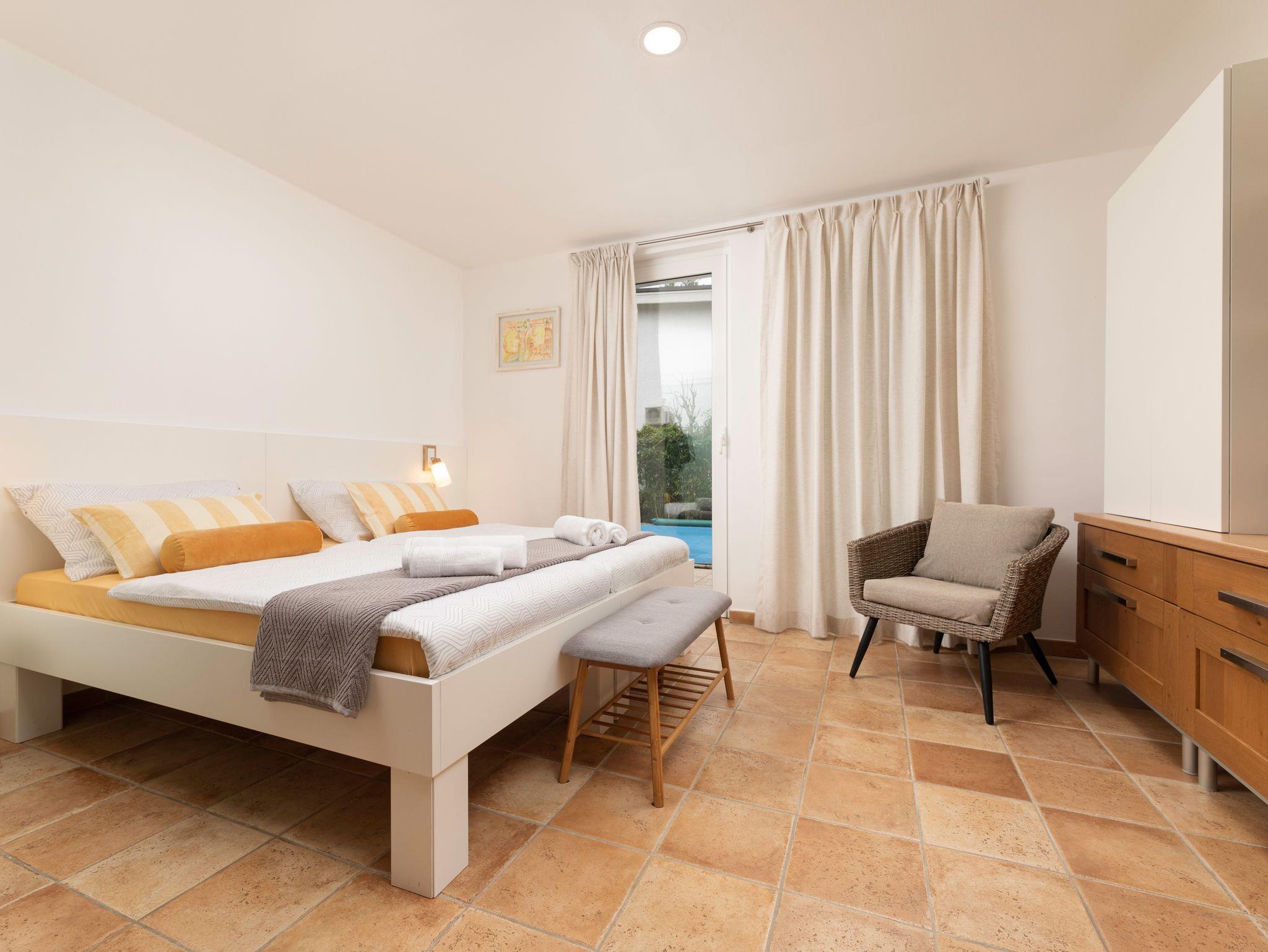 Ferienwohnung bietet Platz für 4 Gäste. Die Betten sind in Schlafzimmern, die es 2 gibt, innerhalb einer Gesamtfläche von 66m2, angeordnet. Die Gäste haben eine eigene Terrasse zur Verfügung, auf der sie in warmen Sommernächten genießen können. Während ihres Aufenthalts können sich Gäste im privaten Schwimmbad entspannen. IM PREIS INBEGRIFFEN: Kurtaxe, Endreinigung, Klimatisierung, Pool, Parkplatz, Internet. Die Verfügbarkeit zusätzlicher Dienstleistungen in Ihrem reservierten Termin und die Preise derselben (falls nicht aufgeführt) müssen im Voraus überprüft werden. Zusätzliche Dienstleistungen die in der Zahlungsaufforderung nicht aufgeführt sind werden direkt beim Vermieter bezahlt, angenommen der Gast nutzt auch diese.