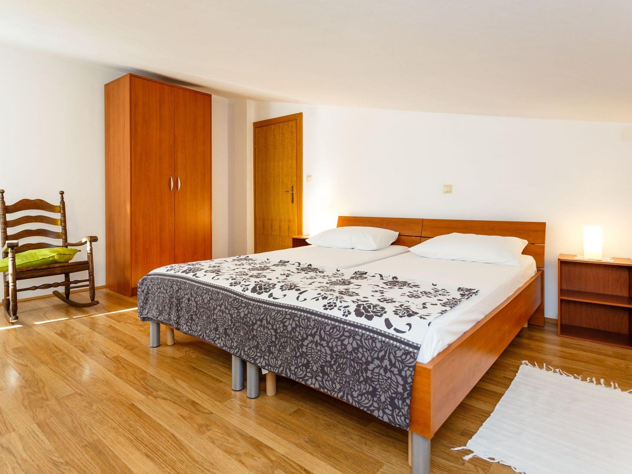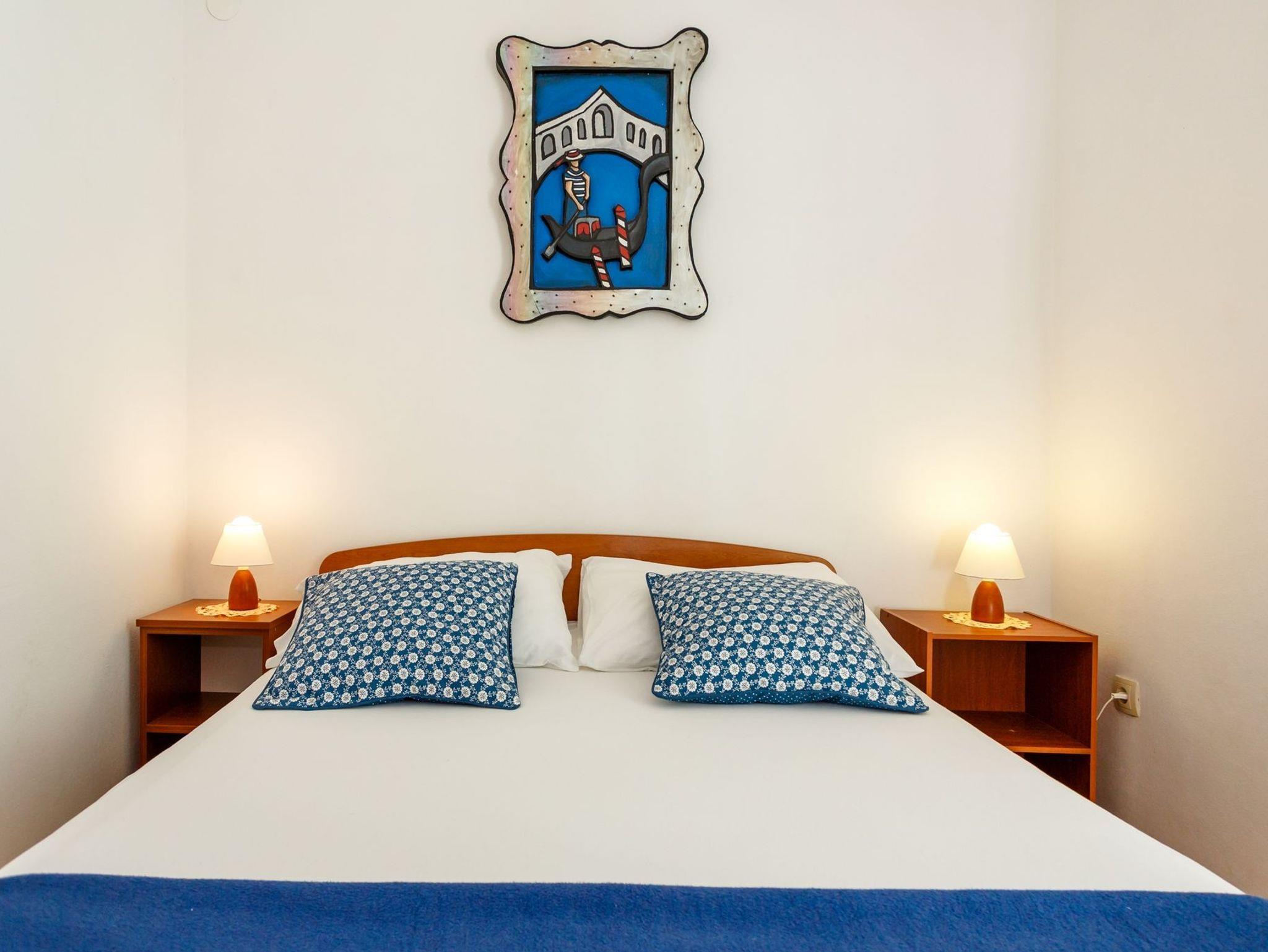 Ferienwohnung bietet Platz für 6 Gäste. Die Betten sind in Schlafzimmern, die es 3 gibt, innerhalb einer Gesamtfläche von 74m2, angeordnet. Die Gäste haben eine eigene Terrasse zur Verfügung, auf der sie in warmen Sommernächten genießen können. Das Apartment bietet Meerblick. Es ist erlaubt, Speisen auf dem Gemeinschafts-Grill vorzubereiten. IM PREIS INBEGRIFFEN: Kurtaxe, Endreinigung, Klimatisierung, Parkplatz, Internet. Die Verfügbarkeit zusätzlicher Dienstleistungen in Ihrem reservierten Termin und die Preise derselben (falls nicht aufgeführt) müssen im Voraus überprüft werden. Zusätzliche Dienstleistungen die in der Zahlungsaufforderung nicht aufgeführt sind werden direkt beim Vermieter bezahlt, angenommen der Gast nutzt auch diese.