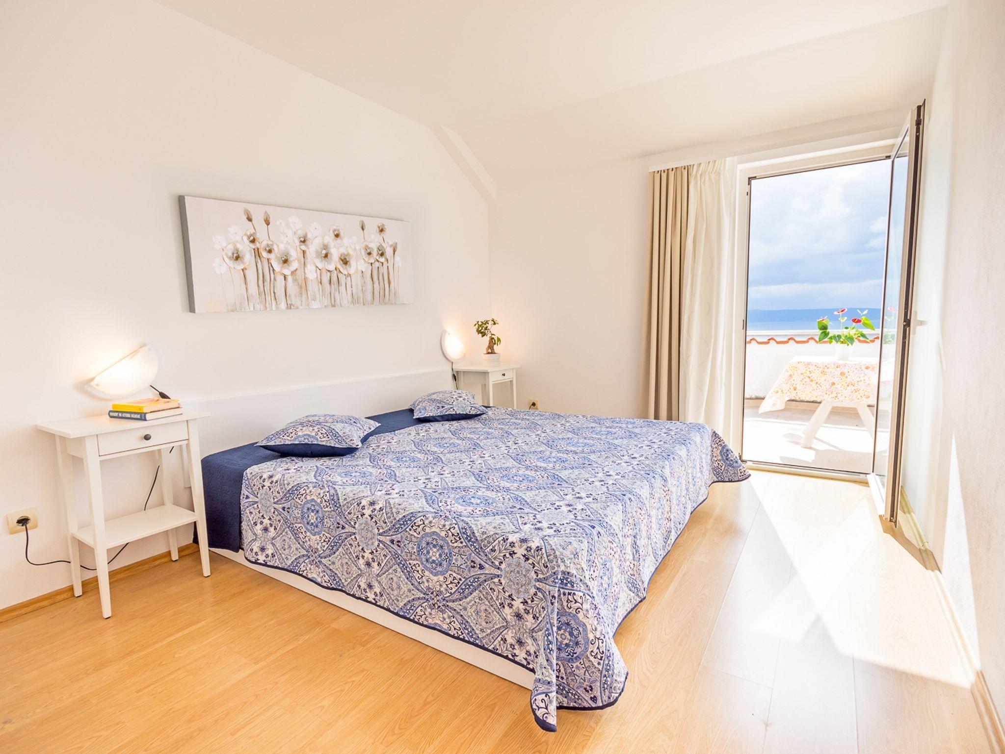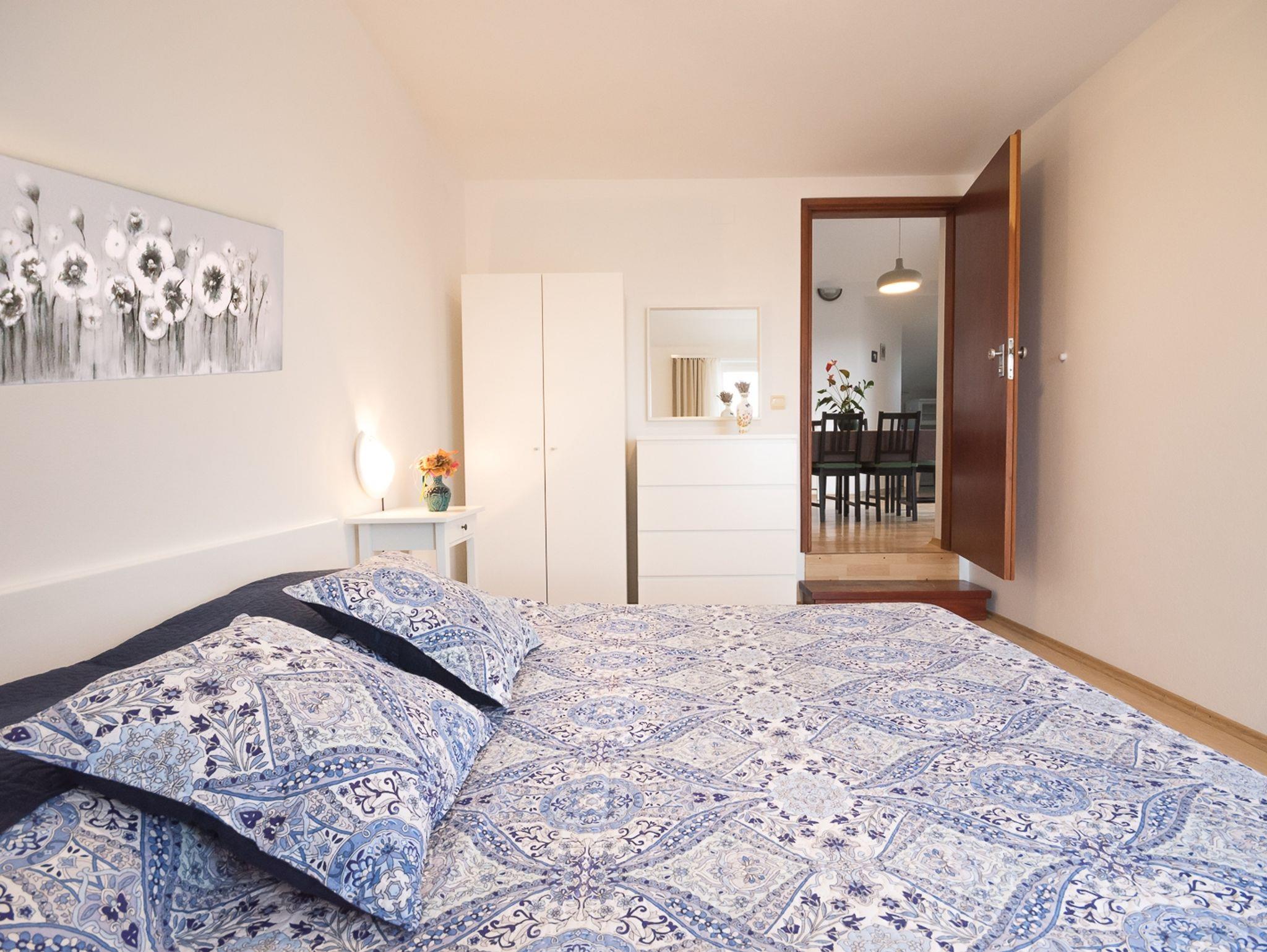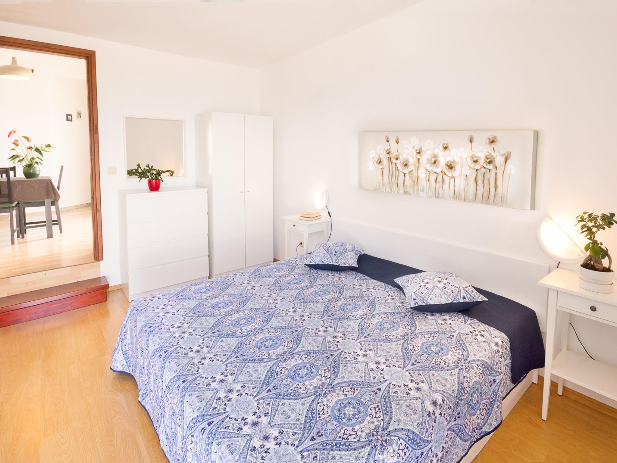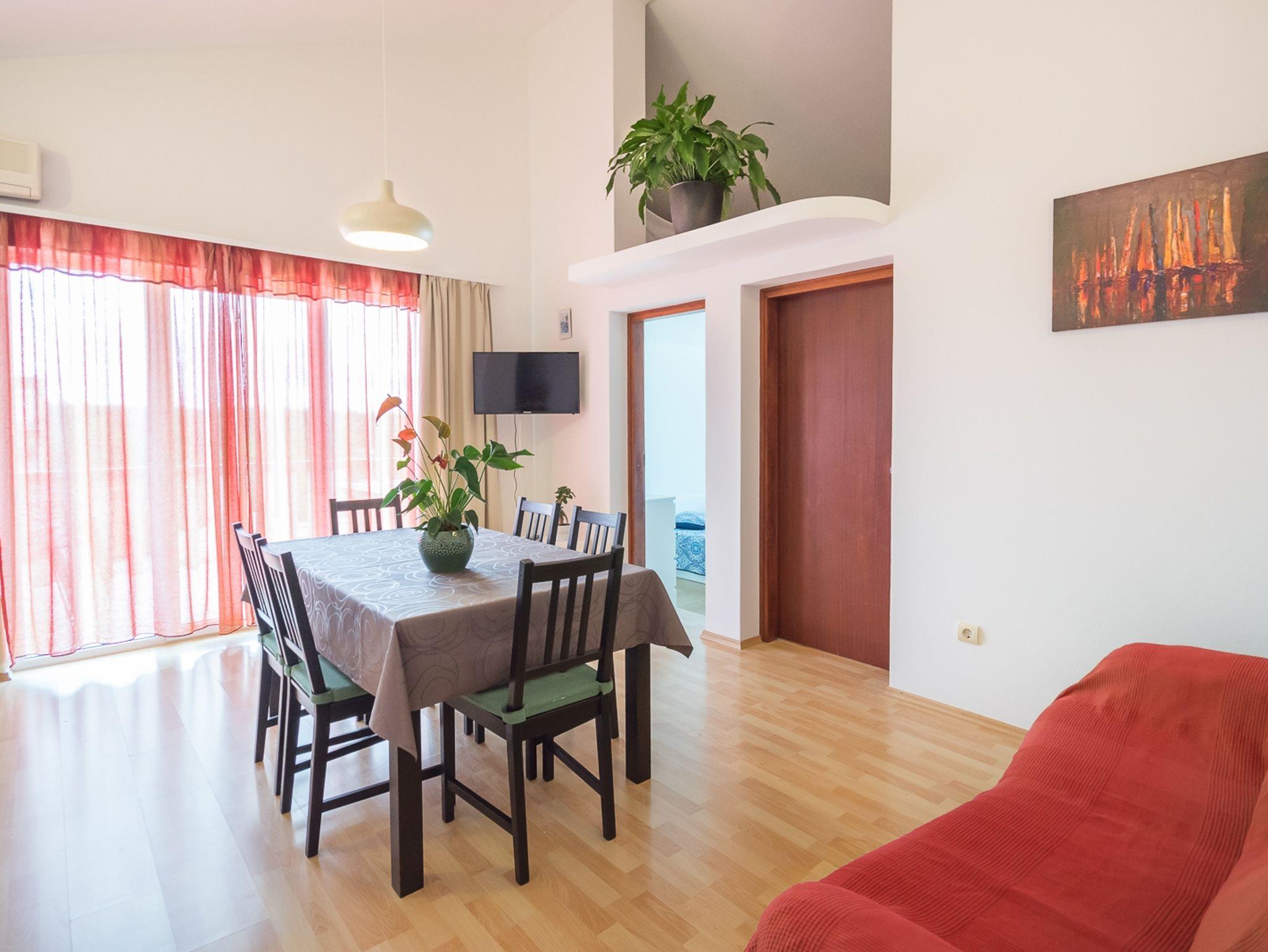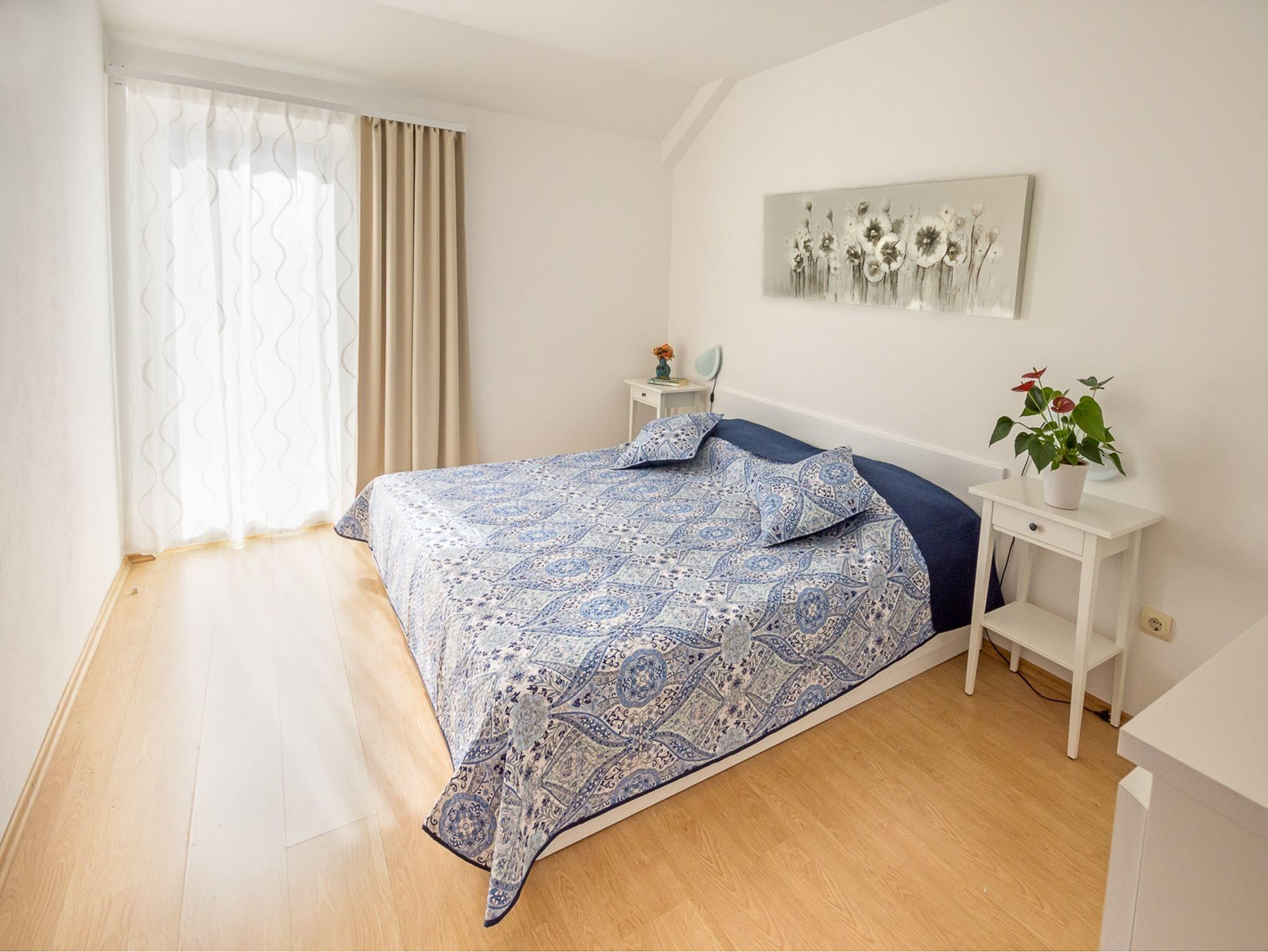 Ferienwohnung bietet Platz für 5 Gäste. Die Betten sind in Schlafzimmern, die es 2 gibt, und in Esszimmer, innerhalb einer Gesamtfläche von 59m2, angeordnet. Die Gäste haben eine eigene Terrasse zur Verfügung, auf der sie in warmen Sommernächten genießen können. Das Apartment bietet Meerblick. Es ist erlaubt, Speisen auf dem Gemeinschafts-Grill vorzubereiten. IM PREIS INBEGRIFFEN: Kurtaxe, Endreinigung, Klimatisierung, Parkplatz, Internet, Kinderbett, Bügeleisen, Föhn. VERBINDLICHE ZUSÄTZLICHE KOSTEN: Aufzahlung für Kurzaufenthalte (prozentualer Zuschlag pro Nächtigungsanzahl: 30% - 1, 20% - 2, 10% - 3). UNVERBINDLICHE ZUSÄTZLICHE KOSTEN: Wäschewaschen (5,00 € Waschen), Zusatzbett (5,00 € pro Nacht). Die Verfügbarkeit zusätzlicher Dienstleistungen in Ihrem reservierten Termin und die Preise derselben (falls nicht aufgeführt) müssen im Voraus überprüft werden. Zusätzliche Dienstleistungen die in der Zahlungsaufforderung nicht aufgeführt sind werden direkt beim Vermieter bezahlt, angenommen der Gast nutzt auch diese. Ermäßigung auf den Grundpreis: Gratistag 14=13 (bei einem Aufenthalt von 14 Tagen oder mehr erhalten Sie einen Gratistag für den Aufenthalt bis 31.12.26).
