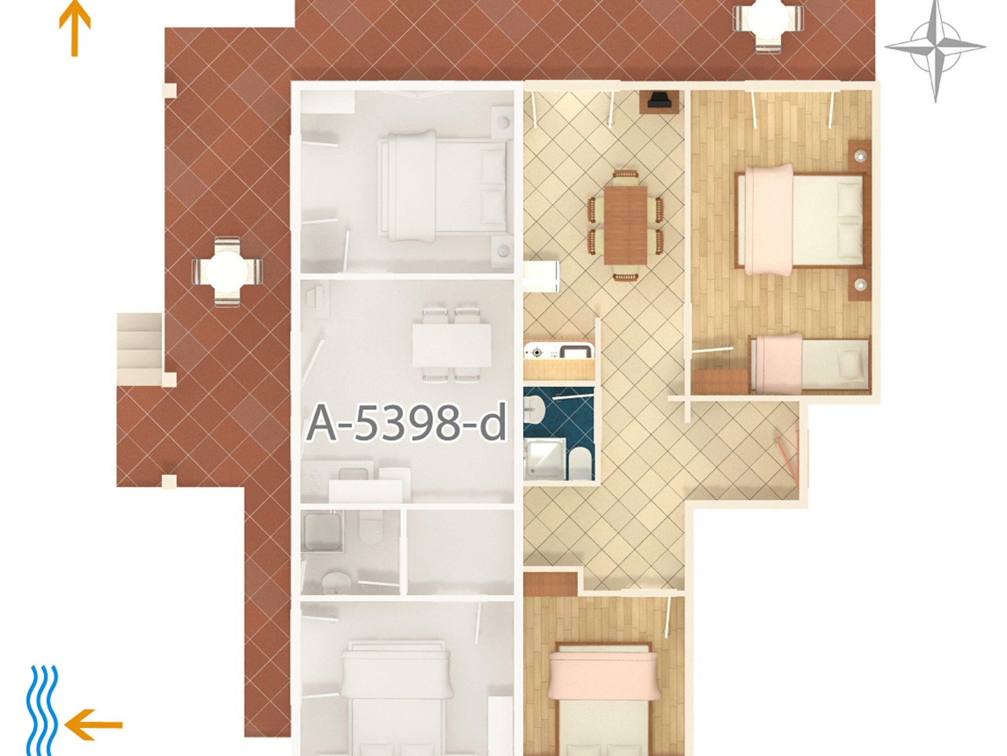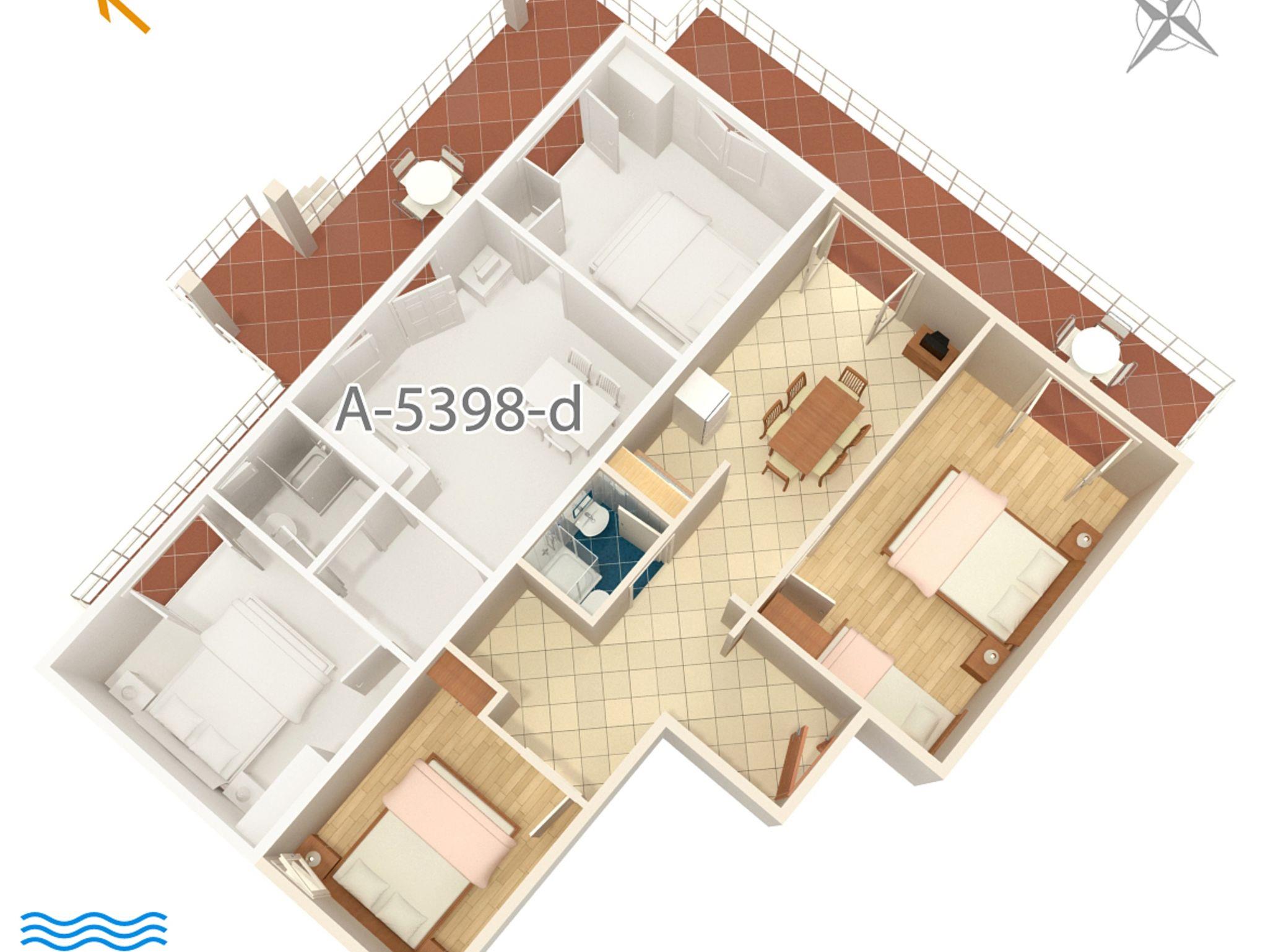 Ferienwohnung bietet Platz für 5 Gäste. Die Betten sind in Schlafzimmern, die es 2 gibt, innerhalb einer Gesamtfläche von 40m2, angeordnet. Die Gäste haben eine eigene Terrasse zur Verfügung, auf der sie in warmen Sommernächten genießen können. Das Apartment bietet Meerblick. Es ist erlaubt, Speisen auf dem Gemeinschafts-Grill vorzubereiten. IM PREIS INBEGRIFFEN: Kurtaxe, Endreinigung, Klimatisierung, Zentralheizung, Parkplatz, Internet. Die Verfügbarkeit zusätzlicher Dienstleistungen in Ihrem reservierten Termin und die Preise derselben (falls nicht aufgeführt) müssen im Voraus überprüft werden. Zusätzliche Dienstleistungen die in der Zahlungsaufforderung nicht aufgeführt sind werden direkt beim Vermieter bezahlt, angenommen der Gast nutzt auch diese.