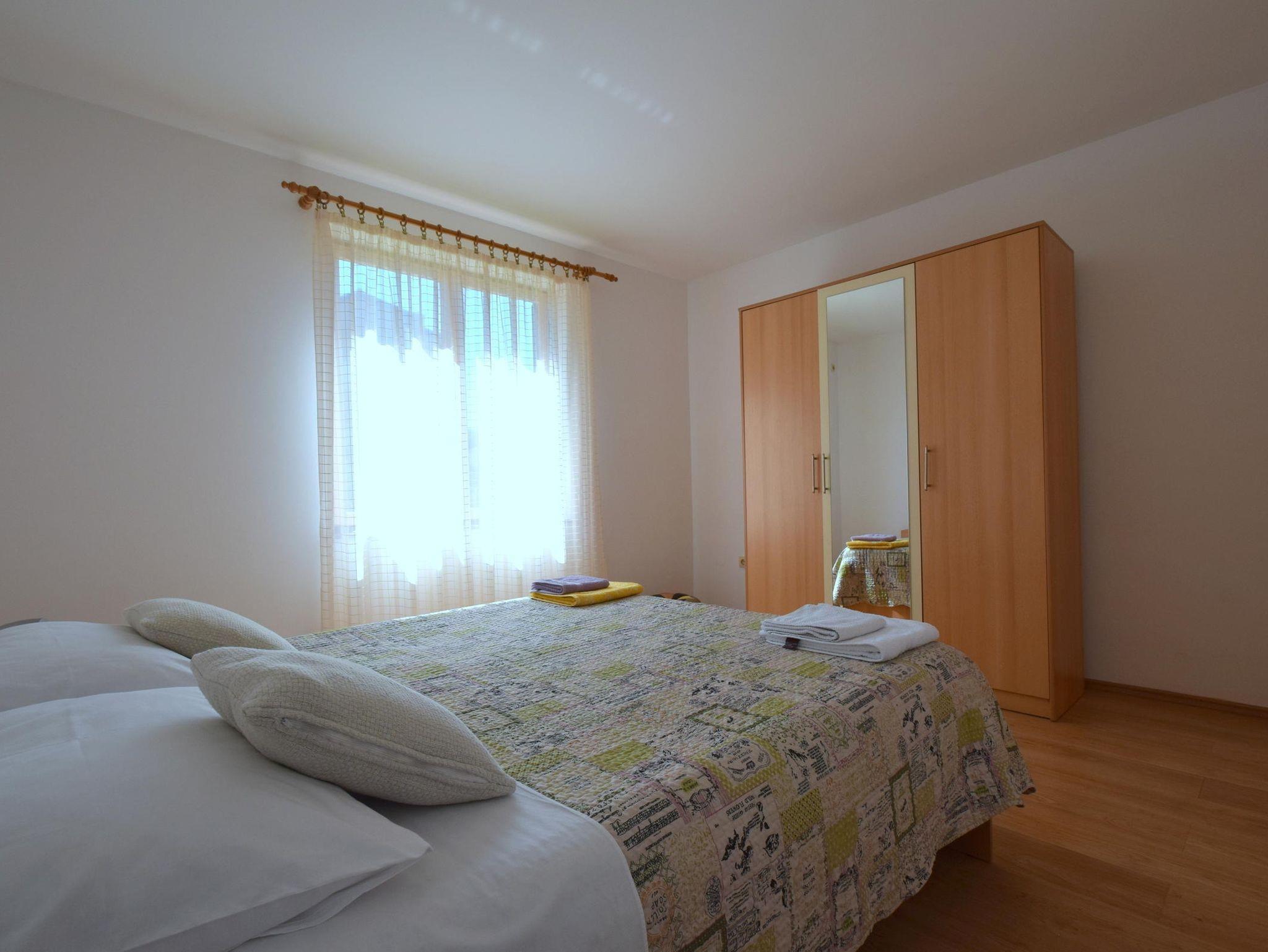 Ferienwohnung bietet Platz für 6 Gäste. Die Betten sind in Schlafzimmern, die es 3 gibt, innerhalb einer Gesamtfläche von 69m2, angeordnet. Die Gäste haben eine eigene Terrasse zur Verfügung, auf der sie in warmen Sommernächten genießen können. Es ist erlaubt, Speisen auf dem Gemeinschafts-Grill vorzubereiten. In der Unterkunftseinheit besteht die Möglichkeit des Mitbringens von Haustieren gegen Aufpreis. IM PREIS INBEGRIFFEN: Kurtaxe, Endreinigung, Klimatisierung, Parkplatz, Internet. VERBINDLICHE ZUSÄTZLICHE KOSTEN: Aufzahlung für Kurzaufenthalte (prozentualer Zuschlag pro Nächtigungsanzahl: 30% - 1, 20% - 2, 10% - 3). UNVERBINDLICHE ZUSÄTZLICHE KOSTEN: Haustiere (10,00 € pro Nacht). Die Verfügbarkeit zusätzlicher Dienstleistungen in Ihrem reservierten Termin und die Preise derselben (falls nicht aufgeführt) müssen im Voraus überprüft werden. Zusätzliche Dienstleistungen die in der Zahlungsaufforderung nicht aufgeführt sind werden direkt beim Vermieter bezahlt, angenommen der Gast nutzt auch diese.