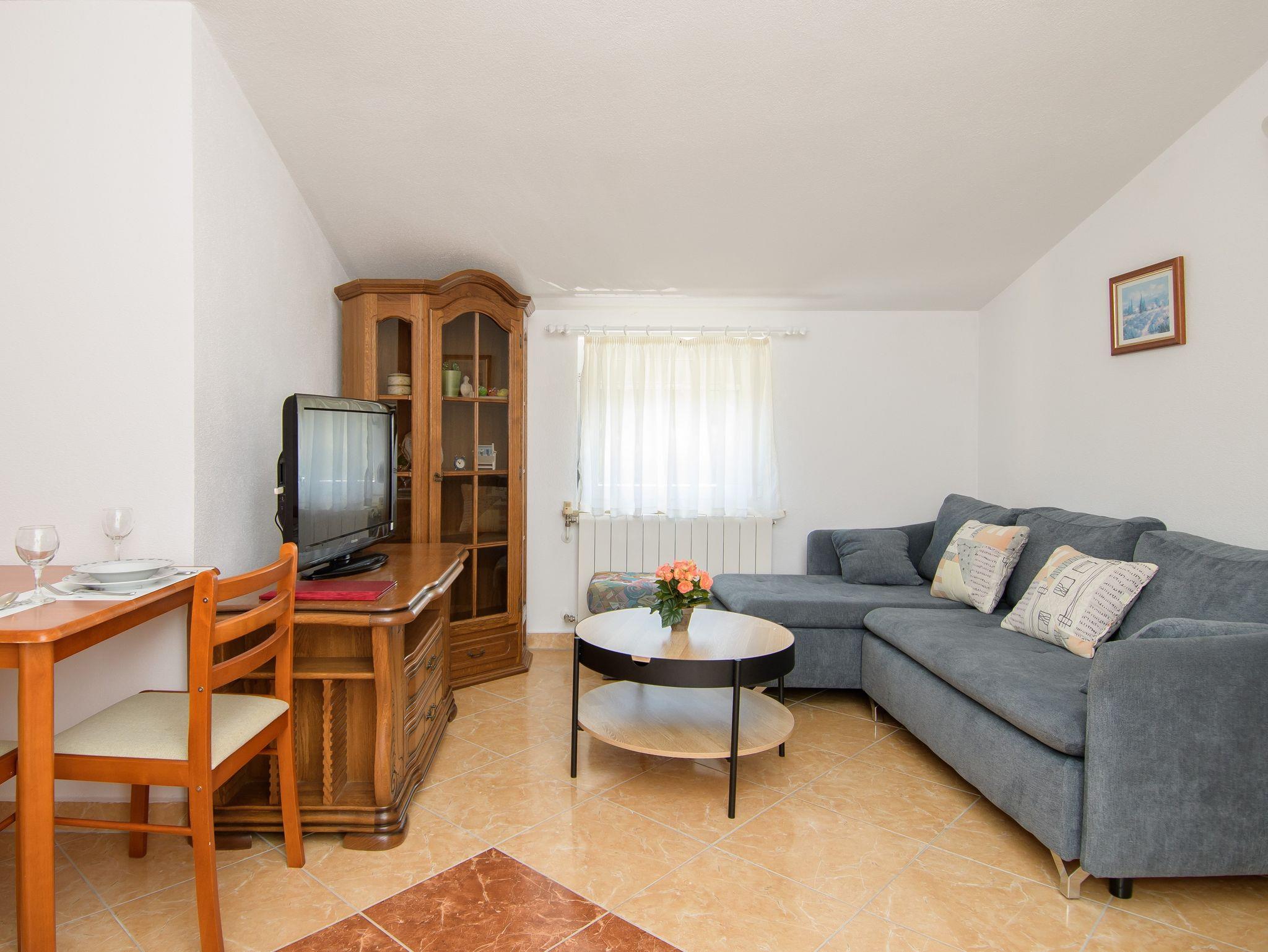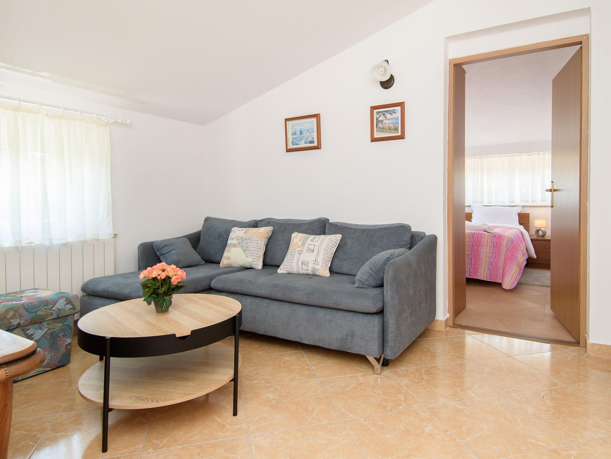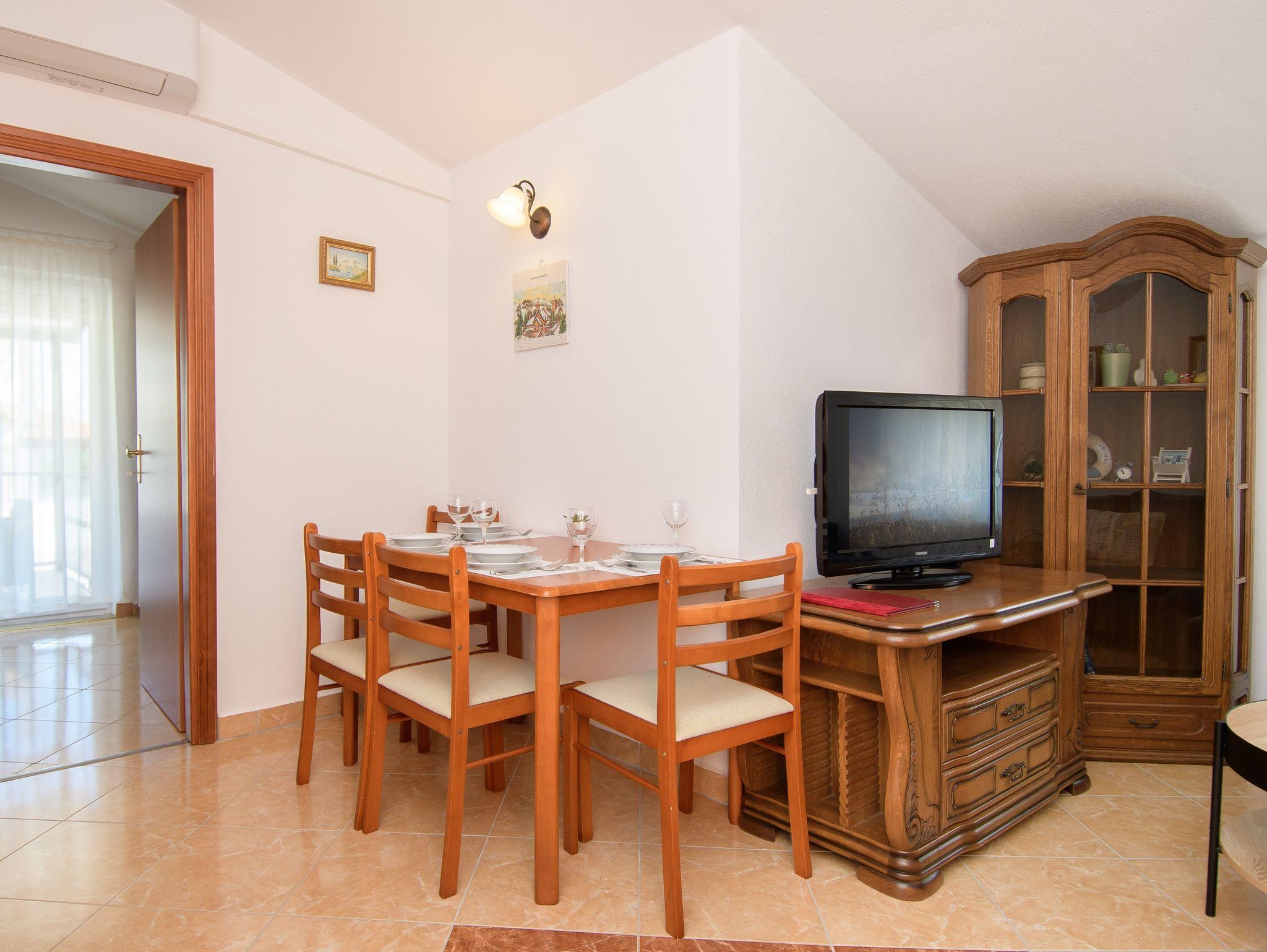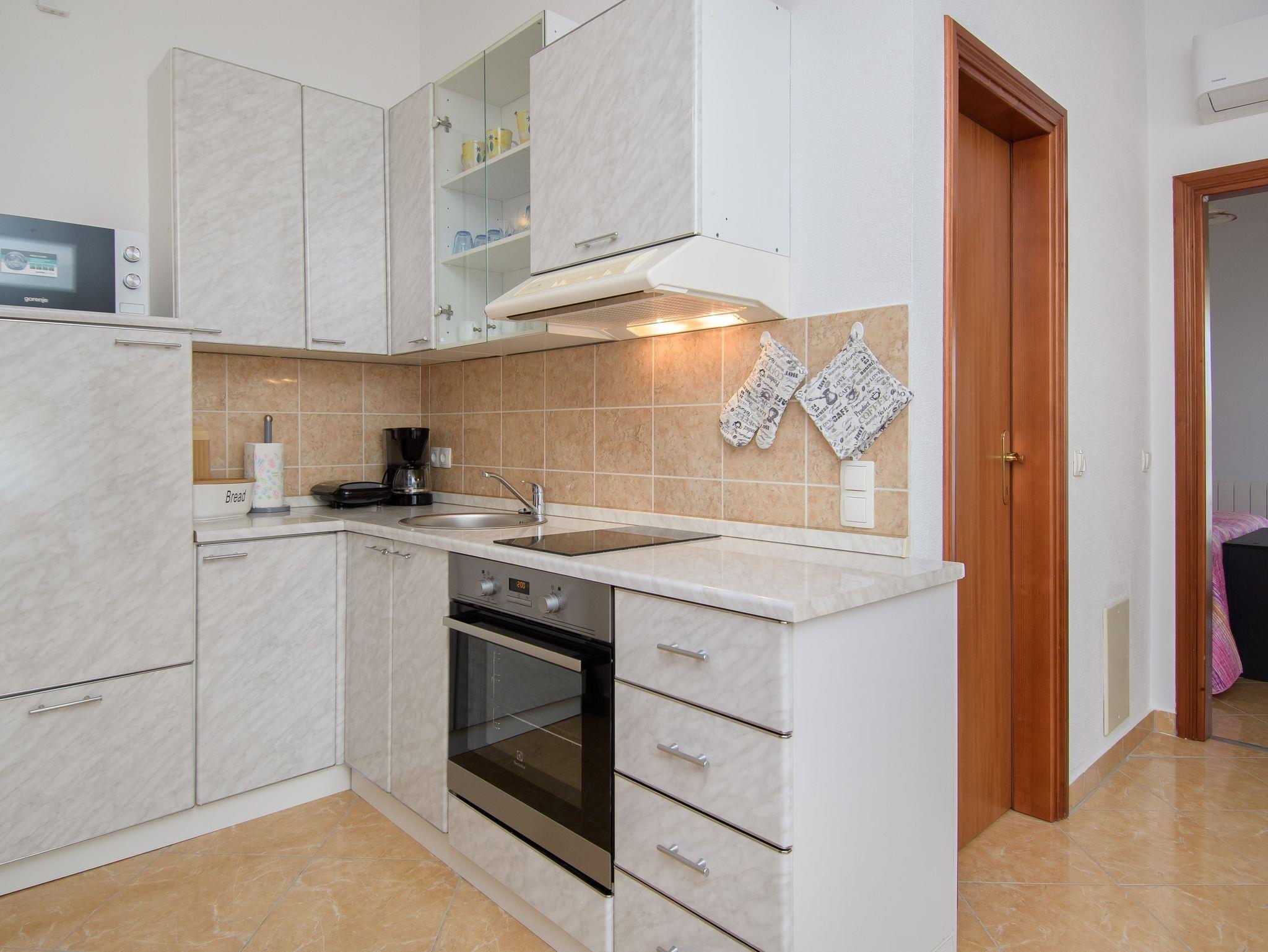Ferienwohnung bietet Platz für 5 Gäste. Die Betten sind in Schlafzimmern, die es 2 gibt, und in Wohnzimmer, innerhalb einer Gesamtfläche von 46m2, angeordnet. Die Gäste haben eine eigene Terrasse zur Verfügung, auf der sie in warmen Sommernächten genießen können. Das Apartment bietet Meerblick. Es ist erlaubt, Speisen auf dem Gemeinschafts-Grill vorzubereiten. Während ihres Aufenthalts können Gäste das gemeinsam zur Nutzung stehende Schwimmbad benutzen. IM PREIS INBEGRIFFEN: Kurtaxe, Endreinigung, Klimatisierung, Zentralheizung, Pool, Parkplatz, Internet, Kinderbett, Zusatzbett, Föhn, tragbarer Grill, Sonnenschirm, Liegestühle. UNVERBINDLICHE ZUSÄTZLICHE KOSTEN: Wäschewaschen (2,00 € Waschen). Die Verfügbarkeit zusätzlicher Dienstleistungen in Ihrem reservierten Termin und die Preise derselben (falls nicht aufgeführt) müssen im Voraus überprüft werden. Zusätzliche Dienstleistungen die in der Zahlungsaufforderung nicht aufgeführt sind werden direkt beim Vermieter bezahlt, angenommen der Gast nutzt auch diese.