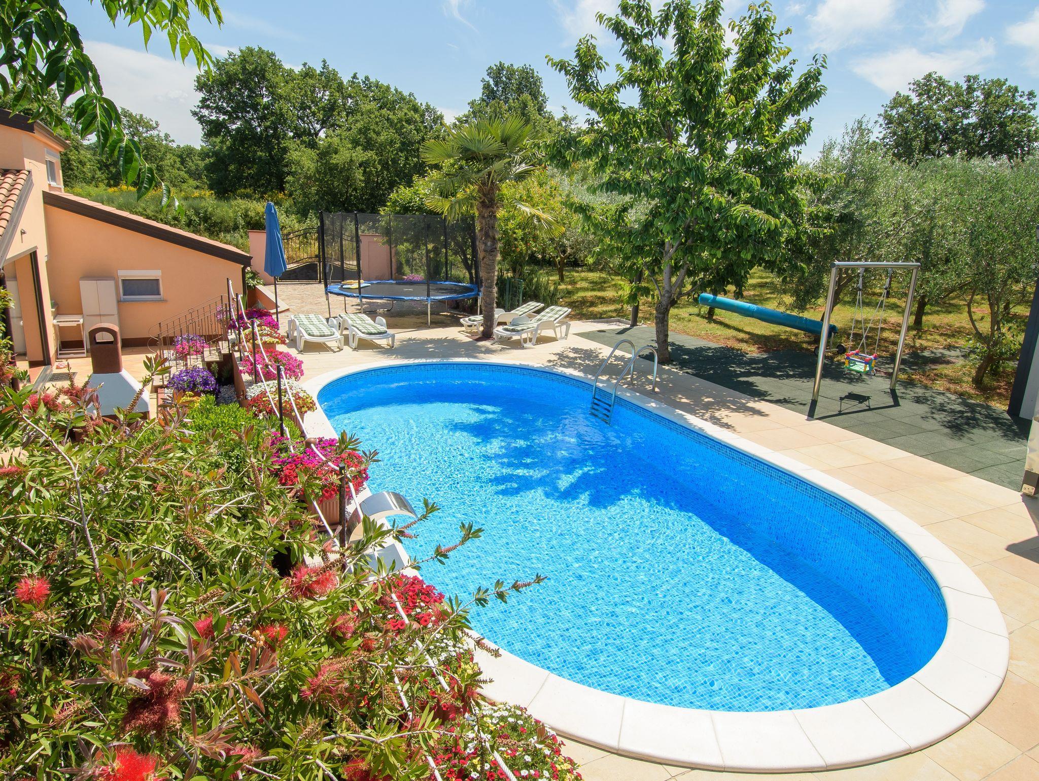 Umgebung des Objekts (Eingerichtet), Hof (1000m2, Kinderbereich, Sitzbereich), Parkplatz (Anzahl der Parkplätze: 2, Entfernung vom Objekt: im Hof), Pool: gemeinsam, Dimensionen: 8.5m x 4m x 1.5m, Wassertyp: Süßwasser, Heizung: Ja, WiFi Internet, Wäschewaschen, Föhn, Tragbarer Grill, Sonnenschirm, Liegestühle, Kinderbett