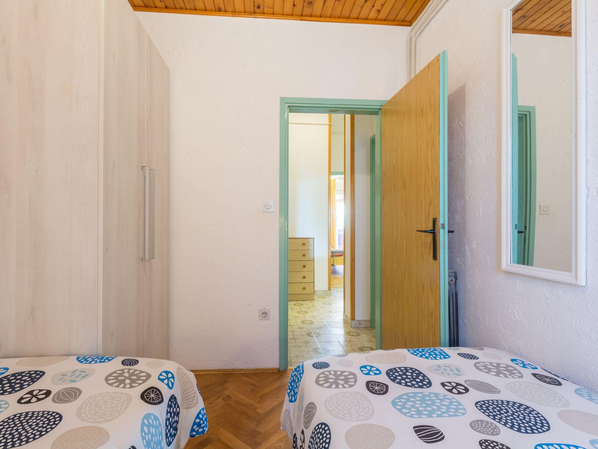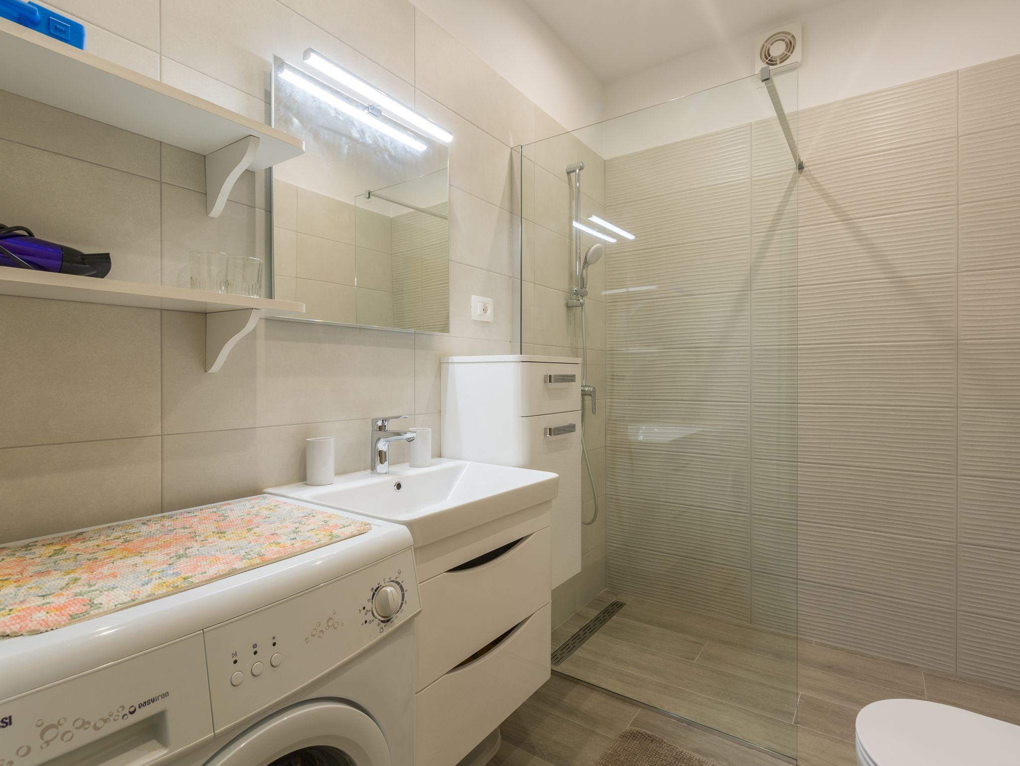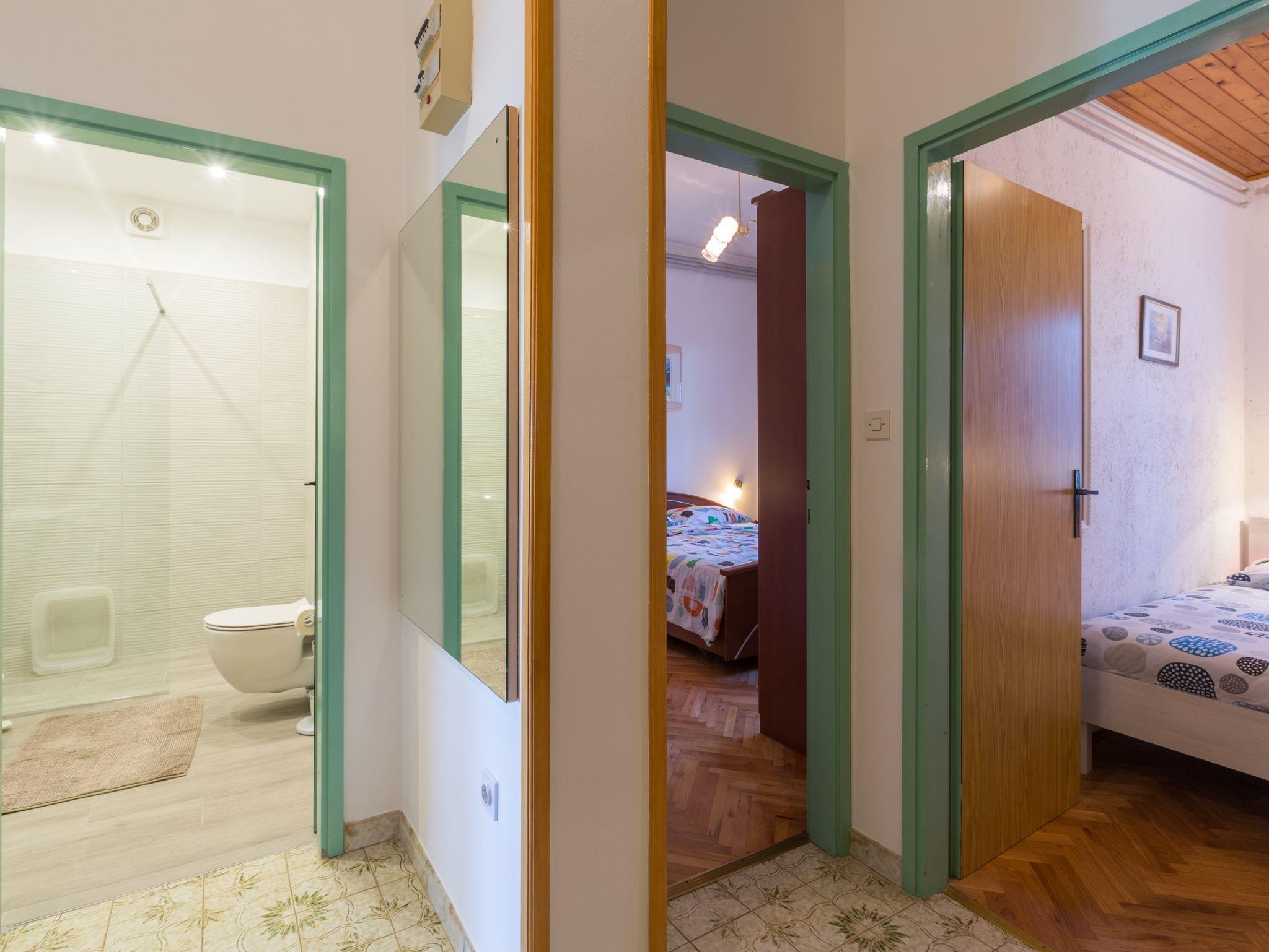 Ferienwohnung bietet Platz für 4 Gäste. Die Betten sind in Schlafzimmern, die es 2 gibt, innerhalb einer Gesamtfläche von 43m2, angeordnet. Die Gäste haben eine eigene Terrasse zur Verfügung, auf der sie in warmen Sommernächten genießen können. Es ist erlaubt, Speisen auf dem Gemeinschafts-Grill vorzubereiten. In der Unterkunftseinheit besteht die Möglichkeit des Mitbringens von Haustieren gegen Aufpreis. IM PREIS INBEGRIFFEN: Kurtaxe, Endreinigung, Klimatisierung, Parkplatz, Internet, Wäschewaschen, Kinderbett, Bügeleisen, Bügelbrett, Föhn. VERBINDLICHE ZUSÄTZLICHE KOSTEN: Aufzahlung für Kurzaufenthalte (prozentualer Zuschlag pro Nächtigungsanzahl: 30% - 1, 20% - 2, 10% - 3). UNVERBINDLICHE ZUSÄTZLICHE KOSTEN: Haustiere (8,00 € pro Nacht). Die Verfügbarkeit zusätzlicher Dienstleistungen in Ihrem reservierten Termin und die Preise derselben (falls nicht aufgeführt) müssen im Voraus überprüft werden. Zusätzliche Dienstleistungen die in der Zahlungsaufforderung nicht aufgeführt sind werden direkt beim Vermieter bezahlt, angenommen der Gast nutzt auch diese.
