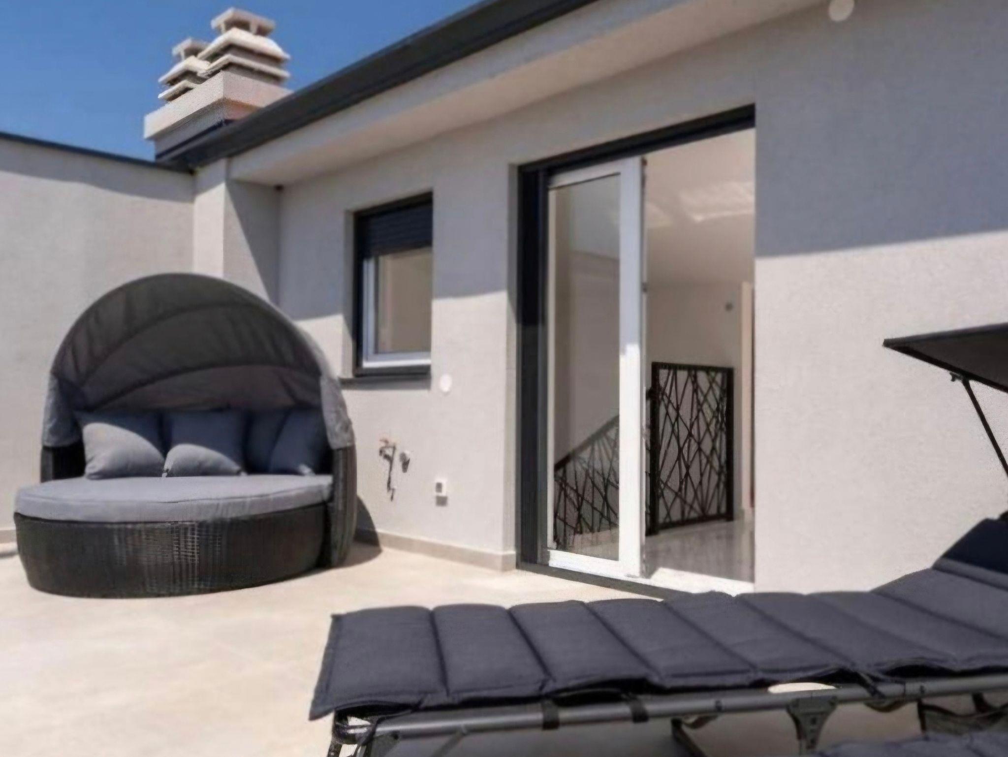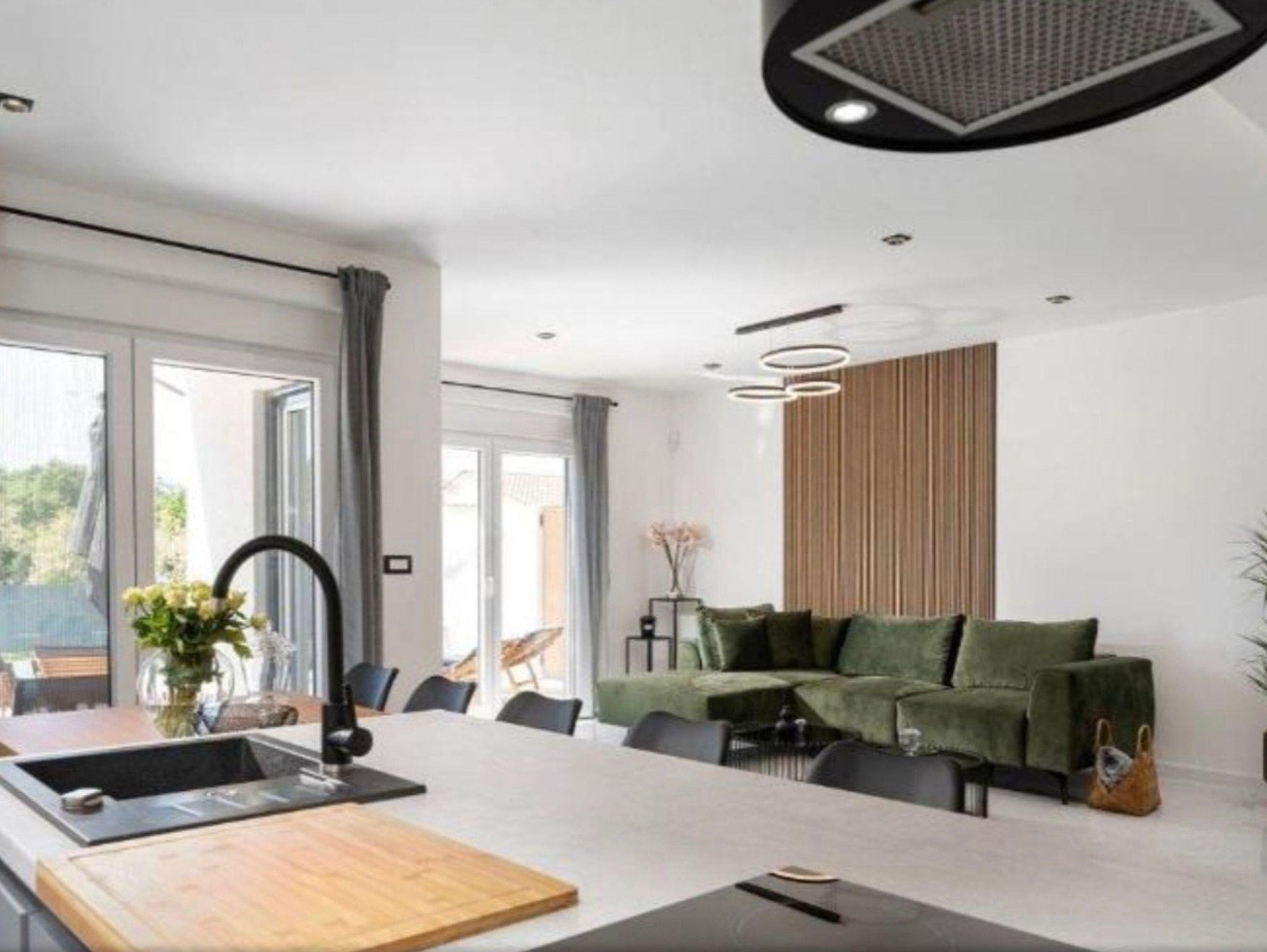 Haus bietet Platz für 6 Gäste. Die Betten sind in Schlafzimmern, die es 3 gibt, innerhalb einer Gesamtfläche von 123m2, angeordnet. Die Gäste haben eine eigene Terrasse zur Verfügung, auf der sie in warmen Sommernächten genießen können. Für vollen Genuss und Entspannung gibt es einen privaten Grill für Gäste dieser Unterkunft. Während ihres Aufenthalts können sich Gäste im privaten Schwimmbad entspannen. IM PREIS INBEGRIFFEN: Kurtaxe, Endreinigung, Klimatisierung, Zentralheizung, Pool, Parkplatz, Internet, Kinderbett, Bügeleisen, Bügelbrett, Föhn, tragbarer Grill, Sonnenschirm, Liegestühle. Die Verfügbarkeit zusätzlicher Dienstleistungen in Ihrem reservierten Termin und die Preise derselben (falls nicht aufgeführt) müssen im Voraus überprüft werden. Zusätzliche Dienstleistungen die in der Zahlungsaufforderung nicht aufgeführt sind werden direkt beim Vermieter bezahlt, angenommen der Gast nutzt auch diese.