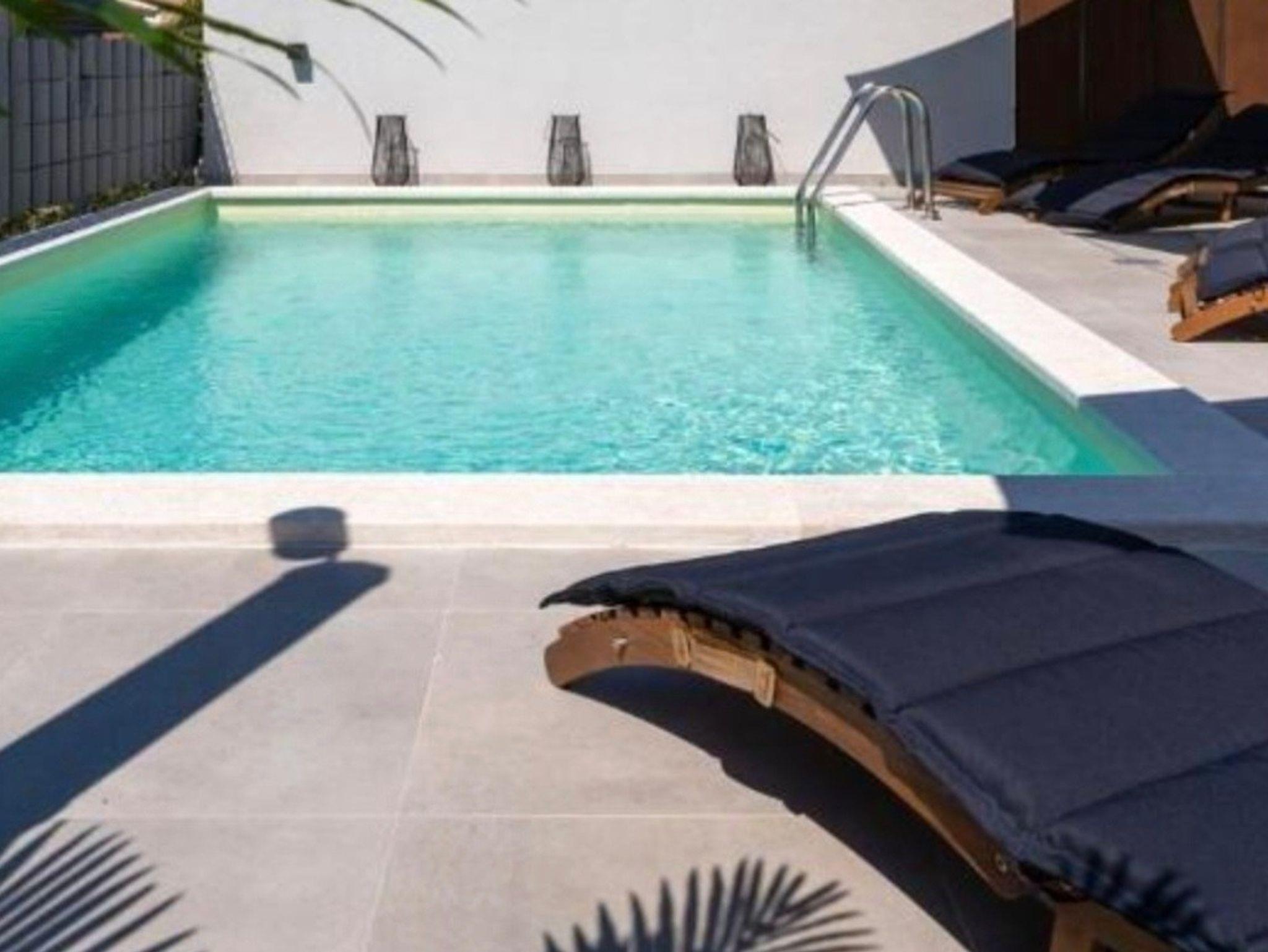Umgebung des Objekts (Ordentlich), Hof (50m2, Sitzbereich), Parkplatz (Anzahl der Parkplätze: 2, Entfernung vom Objekt: im Hof), Pool: privat, Dimensionen: 6m x 4m x 1.4m, Wassertyp: Süßwasser, Heizung: Ja, WiFi Internet, Föhn, Bügeleisen, Bügelbrett, Tragbarer Grill, Sonnenschirm, Liegestühle, Kinderbett