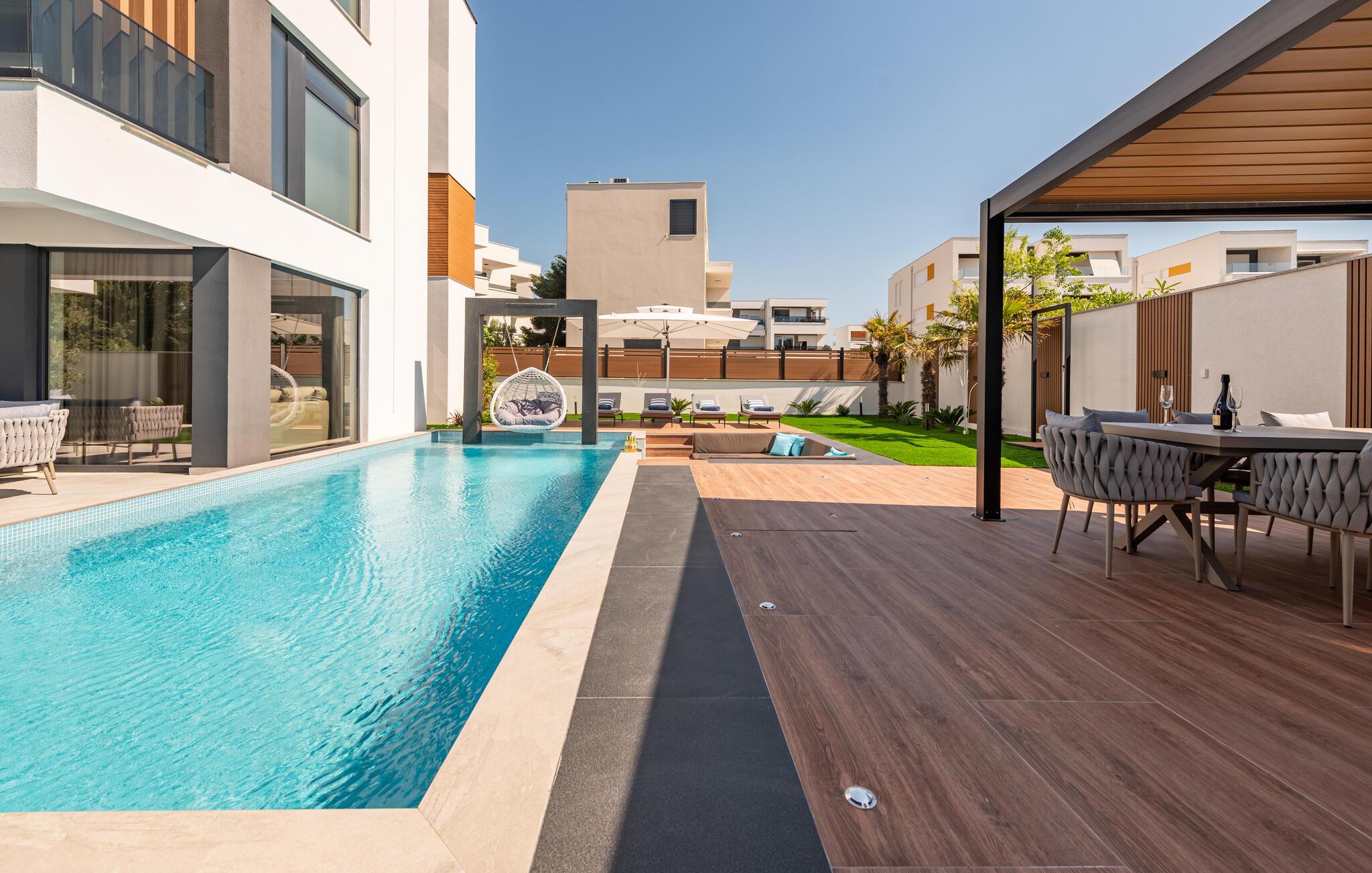 Nyd ferien i dette attraktive feriehus med pool i skøn beliggenhed ved havet.