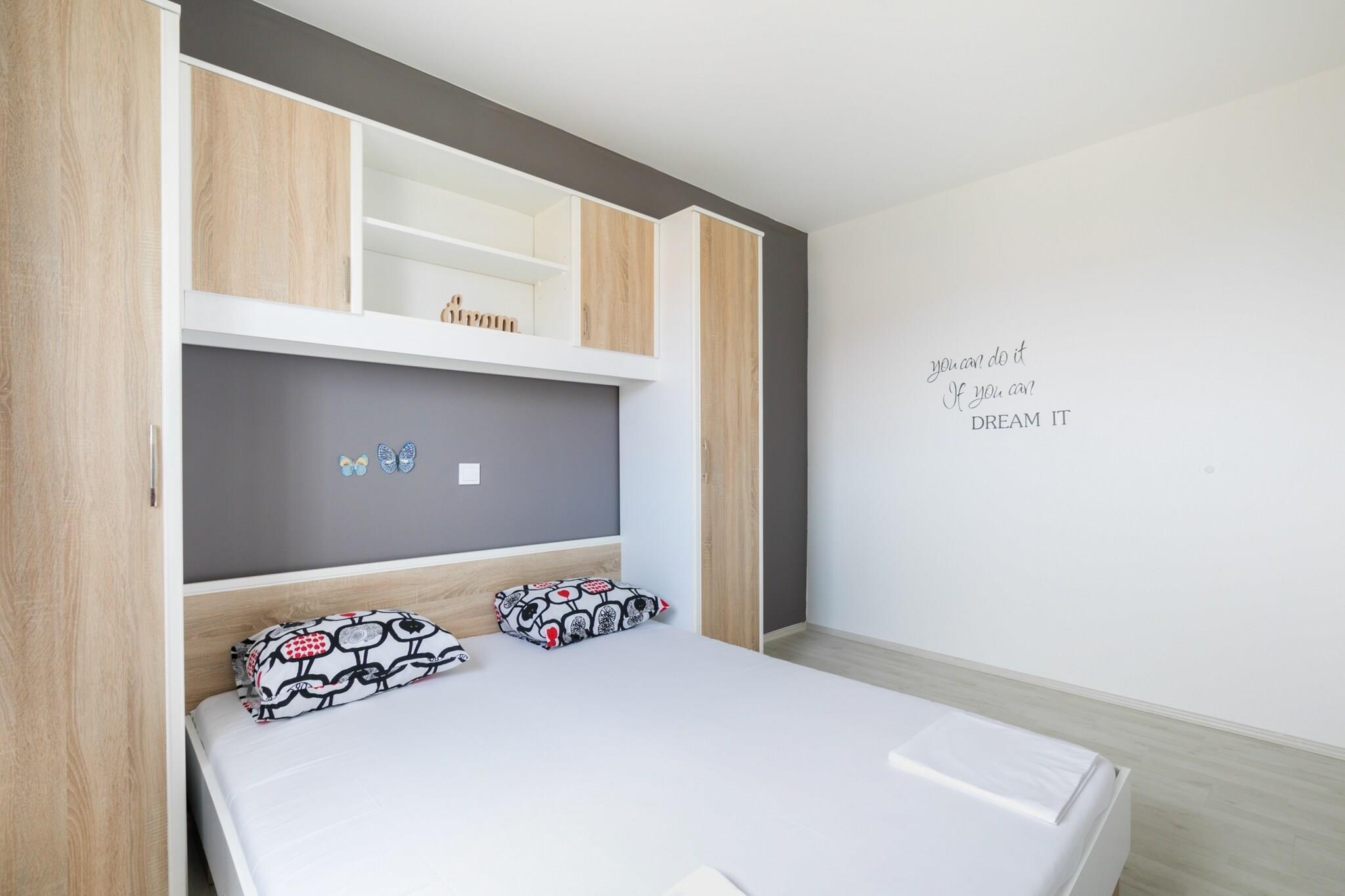 Denne smukke, moderne indrettede lejlighed ligger i byen Novalja på øen Pag. Denne lejlighed er en af otte lejligheder i samme hus. Tag dine venner eller familie med på ferie, der er plads til alle. byen novalja er kendt for sine smukke strande, og den mest berømte strand er stranden, et sted med god sjov og natteliv og et sted, hvor mange festivaler finder sted. på øen Pag kan du besøge mange seværdigheder, prøve lokal mad og lokal vin. Vi foreslår, at du besøger Pag-ostebutikker, Pag-saltbutik og køber Pag-blonder som en souvenir for at bringe hjem.