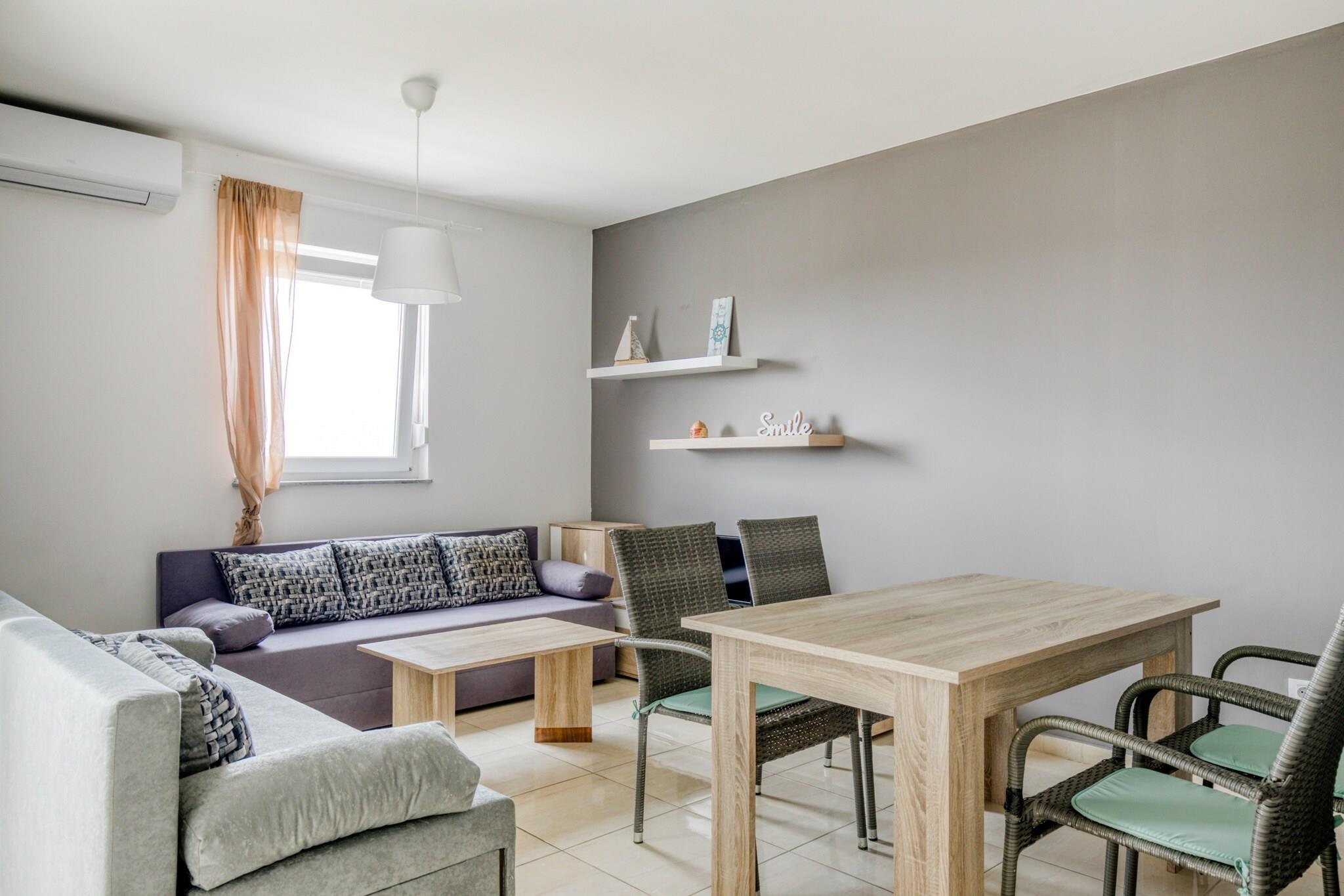 Denne smukke, moderne indrettede lejlighed ligger i byen Novalja på øen Pag. Denne lejlighed er en af otte lejligheder i samme hus. Tag dine venner eller familie med på ferie, der er plads til alle. byen novalja er kendt for sine smukke strande, og den mest berømte strand er stranden, et sted med god sjov og natteliv og et sted, hvor mange festivaler finder sted. på øen Pag kan du besøge mange seværdigheder, prøve lokal mad og lokal vin. Vi foreslår, at du besøger Pag-ostebutikker, Pag-saltbutik og køber Pag-blonder som en souvenir for at bringe hjem.