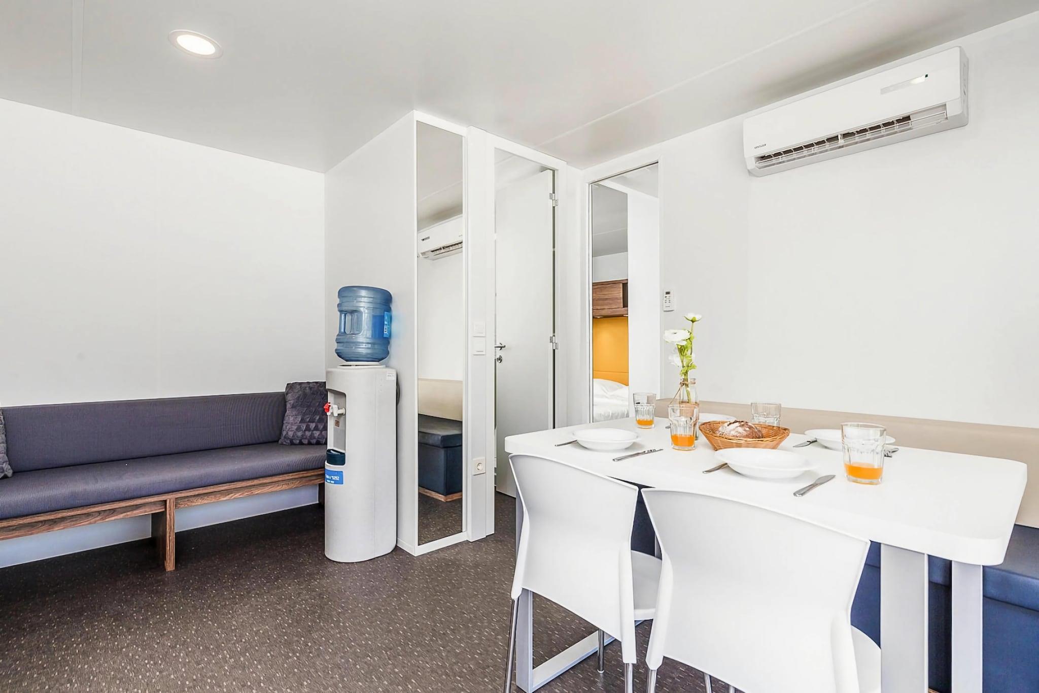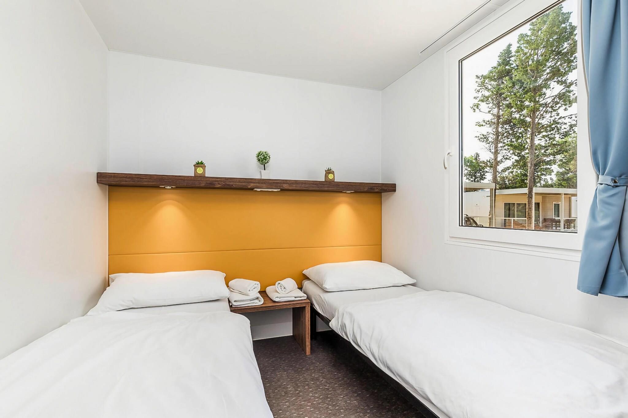 Rummeligt feriekompleks direkte på den let skrånende, smukke stenstrand med moderne og højkvalitets mobilhomes. Afhængigt af mobilhomets placering er der kun 20 til 200 meter til stranden, hvor der er to liggestole til rådighed pr. mobilhome. Campingpladsen er omgivet af en 57 hektar stor skov med dalmatiske ege og oliventræer. Udover sol og hav kan du her nyde en varieret ferie med et alsidigt underholdningsprogram og talrige aktiviteter. Der er seks ferskvandsbassiner alene, nogle med boblebade, og en række vandsportsaktiviteter og flere strandbarer langs stranden. For en sømløs solbrændthed har komplekset også en nudiststrand. Som den næststørste by på øen Pag har den tidligere fiskerby Novalja nu udviklet sig til et populært turistmål. Kyststrækningen mellem Novalja og Zr?E er nu kendt som Kroatiens Ibiza. Novalja selv lever mere end op til sit navn med alle sine hyggelige barer og moderne diskoteker. Få kilometer væk venter den mest populære feststrand på dig om aftenen - i Zr?E kan du feste ved havet indtil solopgang. Detaljer: Forbrugsbaserede energiomkostninger, sengelinned, håndklæder, slutrengøring, WiFi Aktiviteter i nærheden: I alt 6 ferskvandsswimmingpools med et samlet areal på cirka 600 kvadratmeter er tilgængelige til badning og plask. To af bassinerne har et spabad, der kan rumme op til 6 personer. Der er også 1 børnepool (86 m²). Udflugter fra Pag vil tage dig på fastlandet til de fascinerende kystbyer Zadar, Rijeka og Split eller ind i landet til Zagreb. Den vidunderlige ø-verden inviterer dig til at lave ture på egen hånd eller med turbåde. Disse ture til små og store øer kan også kombineres med interessante dykkerudflugter Ikke egnet til personer med nedsat mobilitet