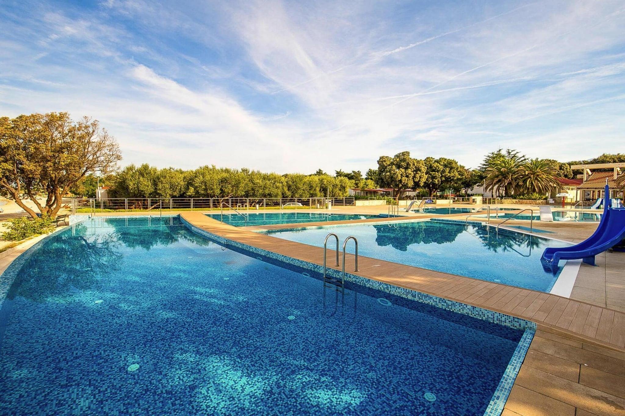 Rummeligt feriekompleks direkte på den let skrånende, smukke stenstrand med moderne og højkvalitets mobilhomes. Afhængigt af mobilhomets placering er der kun 20 til 200 meter til stranden, hvor der er to liggestole til rådighed pr. mobilhome. Campingpladsen er omgivet af en 57 hektar stor skov med dalmatiske ege og oliventræer. Udover sol og hav kan du her nyde en varieret ferie med et alsidigt underholdningsprogram og talrige aktiviteter. Der er seks ferskvandsbassiner alene, nogle med spabade, og langs stranden finder du en række forskellige vandsportsaktiviteter og flere strandbarer. For en sømløs solbrændthed har komplekset også en nudiststrand. Som den næststørste by på øen Pag har den tidligere fiskerby Novalja nu udviklet sig til et populært turistmål. Kyststrækningen mellem Novalja og Zr?E er nu kendt som Kroatiens Ibiza. Novalja selv lever mere end op til sit navn med alle sine hyggelige barer og moderne diskoteker. Få kilometer væk venter den mest populære feststrand på dig om aftenen - i Zr?E kan du feste ved havet indtil solopgang. Detaljer: Forbrugsbaserede energiomkostninger, sengelinned, håndklæder, slutrengøring, WiFi Aktiviteter i nærheden: I alt 6 ferskvandsswimmingpools med et samlet areal på cirka 600 kvadratmeter er til rådighed til badning og plask. To af bassinerne har et spabad, der kan rumme op til 6 personer. Der er også 1 børnepool (86 m²). Udflugter fra Pag tager dig på fastlandet til de fascinerende kystbyer Zadar, Rijeka og Split eller ind i landet til Zagreb. Den vidunderlige ø-verden inviterer dig til at lave ture på egen hånd eller med turbåde. Disse ture til små og store øer kan også kombineres med interessante dykkerudflugter Ikke egnet til personer med nedsat mobilitet