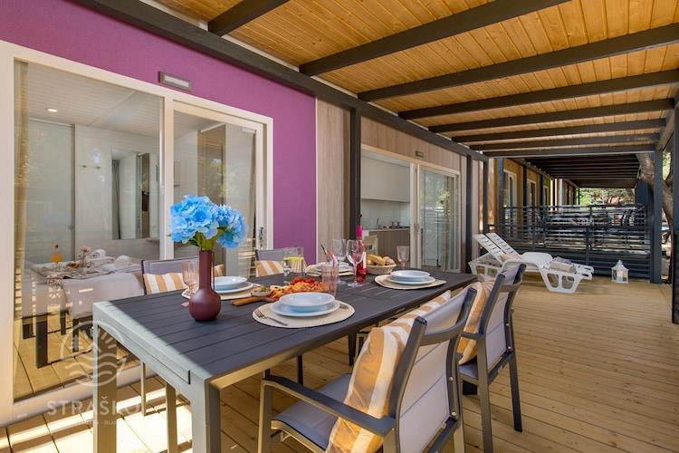 Rummeligt feriekompleks direkte på den let skrånende, smukke stenstrand med moderne og højkvalitets mobilhomes. Afhængigt af mobilhomets placering er der kun 20 til 200 meter til stranden, hvor der er to liggestole til rådighed pr. mobilhome. Campingpladsen er omgivet af en 57 hektar stor skov med dalmatiske ege og oliventræer. Udover sol og hav kan du her nyde en varieret ferie med et alsidigt underholdningsprogram og talrige aktiviteter. Der er seks ferskvandsbassiner alene, nogle med spabade, og langs stranden finder du en række forskellige vandsportsaktiviteter og flere strandbarer. For en sømløs solbrændthed har komplekset også en nudiststrand. Som den næststørste by på øen Pag har den tidligere fiskerby Novalja nu udviklet sig til et populært turistmål. Kyststrækningen mellem Novalja og Zr?E er nu kendt som Kroatiens Ibiza. Novalja selv lever mere end op til sit navn med alle sine hyggelige barer og moderne diskoteker. Få kilometer væk venter den mest populære feststrand på dig om aftenen - i Zr?E kan du feste ved havet indtil solopgang. Detaljer: Forbrugsbaserede energiomkostninger, sengelinned, håndklæder, slutrengøring, WiFi Aktiviteter i nærheden: I alt 6 ferskvandsswimmingpools med et samlet areal på cirka 600 kvadratmeter er tilgængelige til badning og plask. To af bassinerne har et spabad, der kan rumme op til 6 personer. Der er også 1 børnepool (86 m²). Udflugter fra Pag tager dig på fastlandet til de fascinerende kystbyer Zadar, Rijeka og Split eller ind i landet til Zagreb. Den vidunderlige ø-verden inviterer dig til at lave ture på egen hånd eller med turbåde. Disse ture til små og store øer kan også kombineres med interessante dykkerudflugter Ikke egnet til personer med nedsat mobilitet