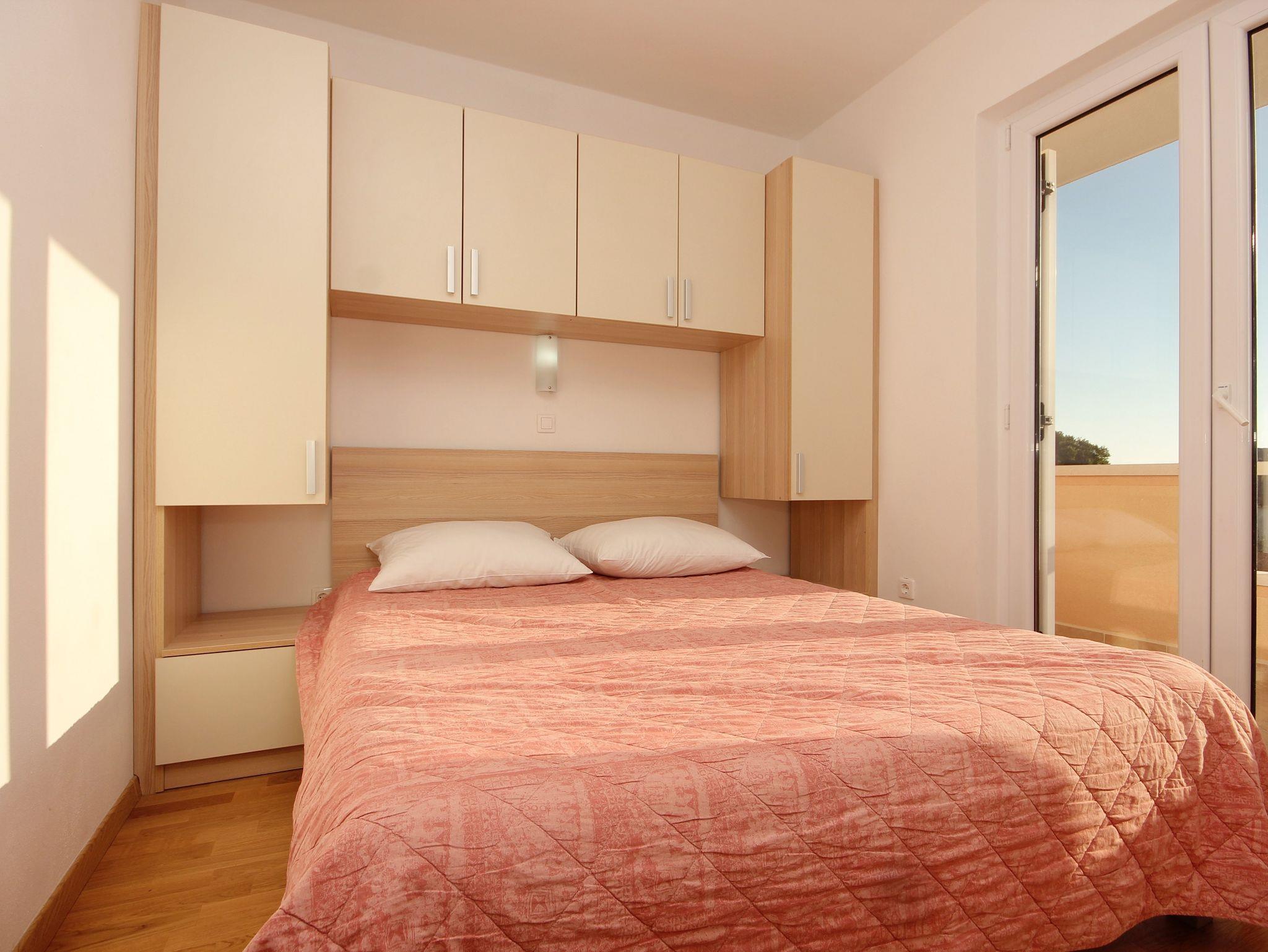 Ferienwohnung bietet Platz für 6 Gäste. Die Betten sind in Schlafzimmern, die es 2 gibt, und in Esszimmer, innerhalb einer Gesamtfläche von 47m2, angeordnet. Die Gäste haben eine eigene Terrasse zur Verfügung, auf der sie in warmen Sommernächten genießen können. Es ist erlaubt, Speisen auf dem Gemeinschafts-Grill vorzubereiten. IM PREIS INBEGRIFFEN: Kurtaxe, Endreinigung, Klimatisierung, Parkplatz, Internet, Kinderbett, Bügeleisen, Bügelbrett, Föhn. VERBINDLICHE ZUSÄTZLICHE KOSTEN: Aufzahlung für Kurzaufenthalte (prozentualer Zuschlag pro Nächtigungsanzahl: 30% - 1, 20% - 2, 10% - 3). UNVERBINDLICHE ZUSÄTZLICHE KOSTEN: Zusatzbett (12,00 € pro Nacht). Die Verfügbarkeit zusätzlicher Dienstleistungen in Ihrem reservierten Termin und die Preise derselben (falls nicht aufgeführt) müssen im Voraus überprüft werden. Zusätzliche Dienstleistungen die in der Zahlungsaufforderung nicht aufgeführt sind werden direkt beim Vermieter bezahlt, angenommen der Gast nutzt auch diese. Ermäßigung auf den Grundpreis: Gratistag 14=13 (bei einem Aufenthalt von 14 Tagen oder mehr erhalten Sie einen Gratistag für den Aufenthalt bis 31.12.26).
