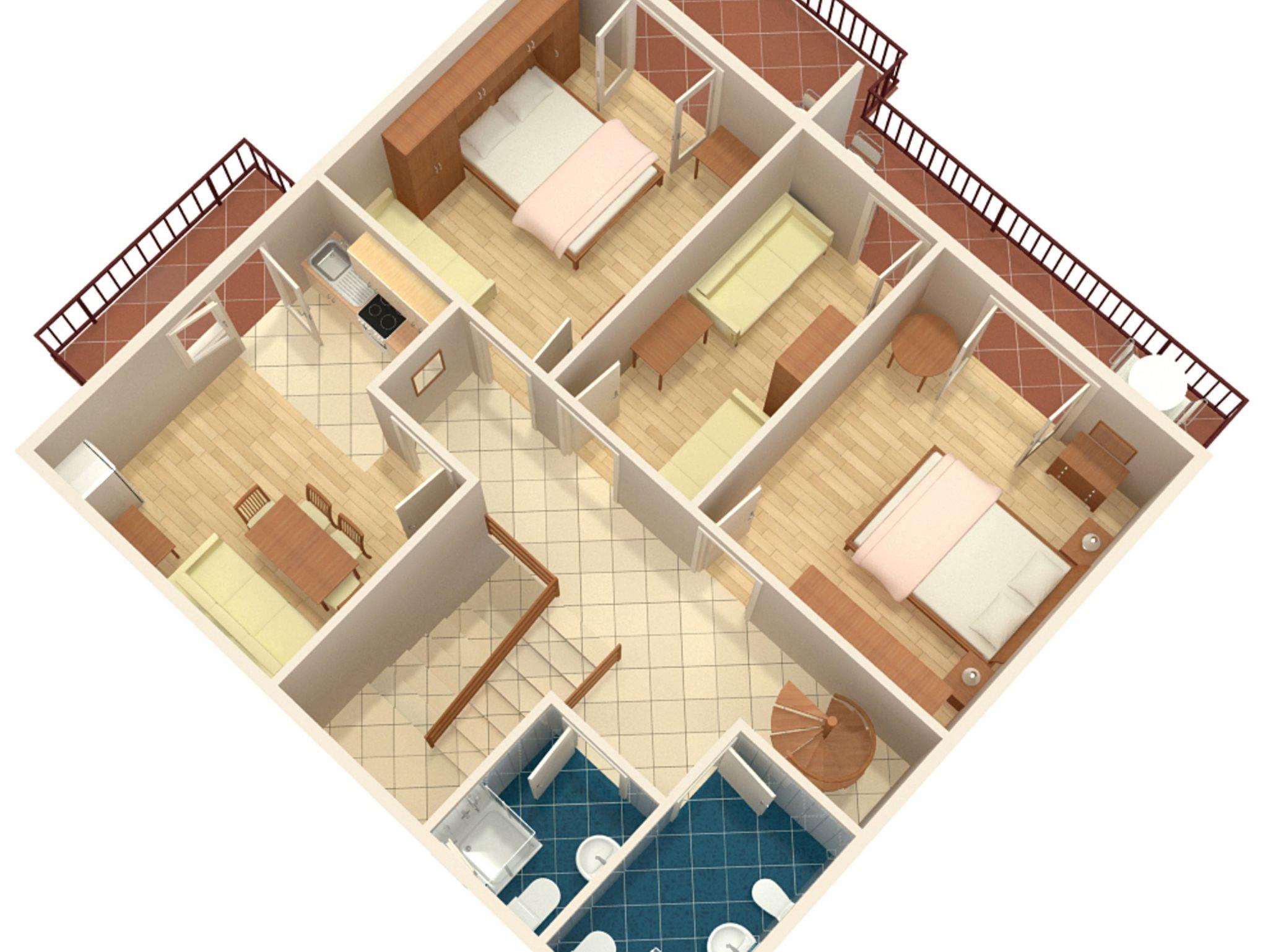 Ferienwohnung bietet Platz für 7 Gäste. Die Betten sind in Schlafzimmern, die es 3 gibt, und in Esszimmer, innerhalb einer Gesamtfläche von 67m2, angeordnet. Die Gäste haben einen eigenen Balkon zur Verfügung, auf der sie in warmen Sommernächten genießen können. Das Apartment bietet Meerblick. Es ist erlaubt, Speisen auf dem Gemeinschafts-Grill vorzubereiten. Durch den Flur der gebuchten Unterkunftseinheit gehen auch andere Gäste oder Vermieter. IM PREIS INBEGRIFFEN: Kurtaxe, Endreinigung, Klimatisierung, Parkplatz, Internet, Bootsanlegeplatz. Die Verfügbarkeit zusätzlicher Dienstleistungen in Ihrem reservierten Termin und die Preise derselben (falls nicht aufgeführt) müssen im Voraus überprüft werden. Zusätzliche Dienstleistungen die in der Zahlungsaufforderung nicht aufgeführt sind werden direkt beim Vermieter bezahlt, angenommen der Gast nutzt auch diese. Ermäßigung auf den Grundpreis: Gratistag 21=19 (bei einem Aufenthalt von 21 Tagen oder mehr erhalten Sie 2 Gratistage für den Aufenthalt bis 31.12.26).