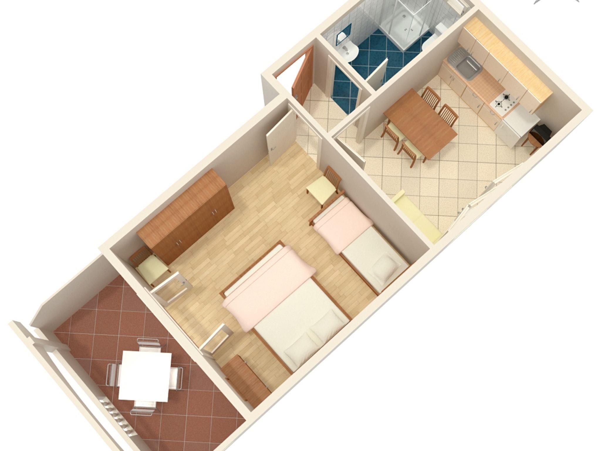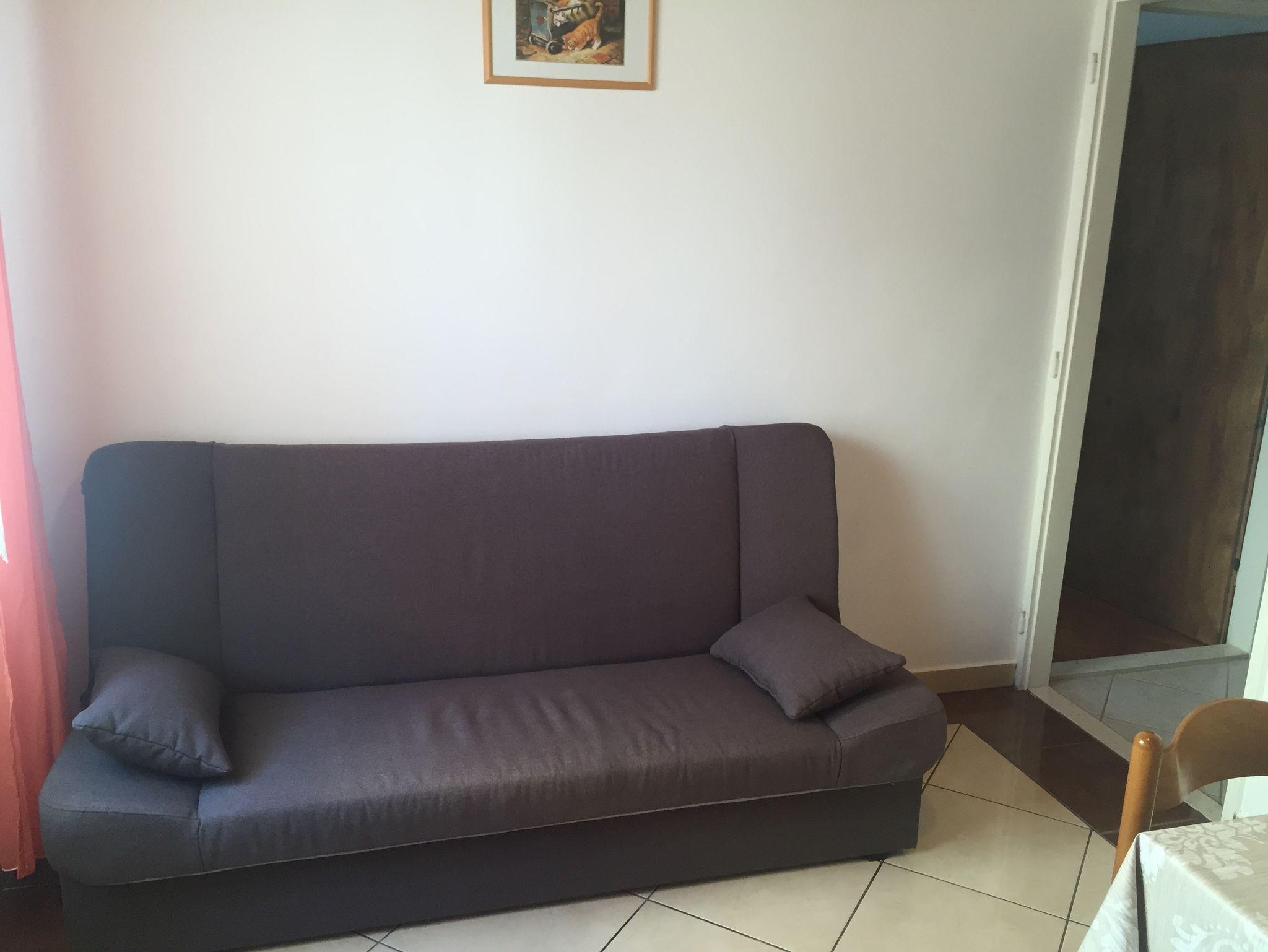 Ferienwohnung bietet Platz für 4 Gäste. Die Betten sind in Schlafzimmern, die es 1 gibt, und in Esszimmer, innerhalb einer Gesamtfläche von 35m2, angeordnet. Die Gäste haben eine eigene Terrasse zur Verfügung, auf der sie in warmen Sommernächten genießen können. Das Apartment bietet Meerblick. Es ist erlaubt, Speisen auf dem Gemeinschafts-Grill vorzubereiten. In der Unterkunftseinheit besteht die Möglichkeit des Mitbringens von Haustieren gegen Aufpreis. IM PREIS INBEGRIFFEN: Kurtaxe, Endreinigung, Parkplatz, Internet, Bootsanlegeplatz, Föhn, Sonnenschirm, Liegestühle. VERBINDLICHE ZUSÄTZLICHE KOSTEN: Aufzahlung für Kurzaufenthalte (prozentualer Zuschlag pro Nächtigungsanzahl: 30% - 1, 20% - 2, 10% - 3). UNVERBINDLICHE ZUSÄTZLICHE KOSTEN: Klimatisierung (5,00 € pro Nacht), Haustiere (5,00 € pro Nacht). Die Verfügbarkeit zusätzlicher Dienstleistungen in Ihrem reservierten Termin und die Preise derselben (falls nicht aufgeführt) müssen im Voraus überprüft werden. Zusätzliche Dienstleistungen die in der Zahlungsaufforderung nicht aufgeführt sind werden direkt beim Vermieter bezahlt, angenommen der Gast nutzt auch diese.