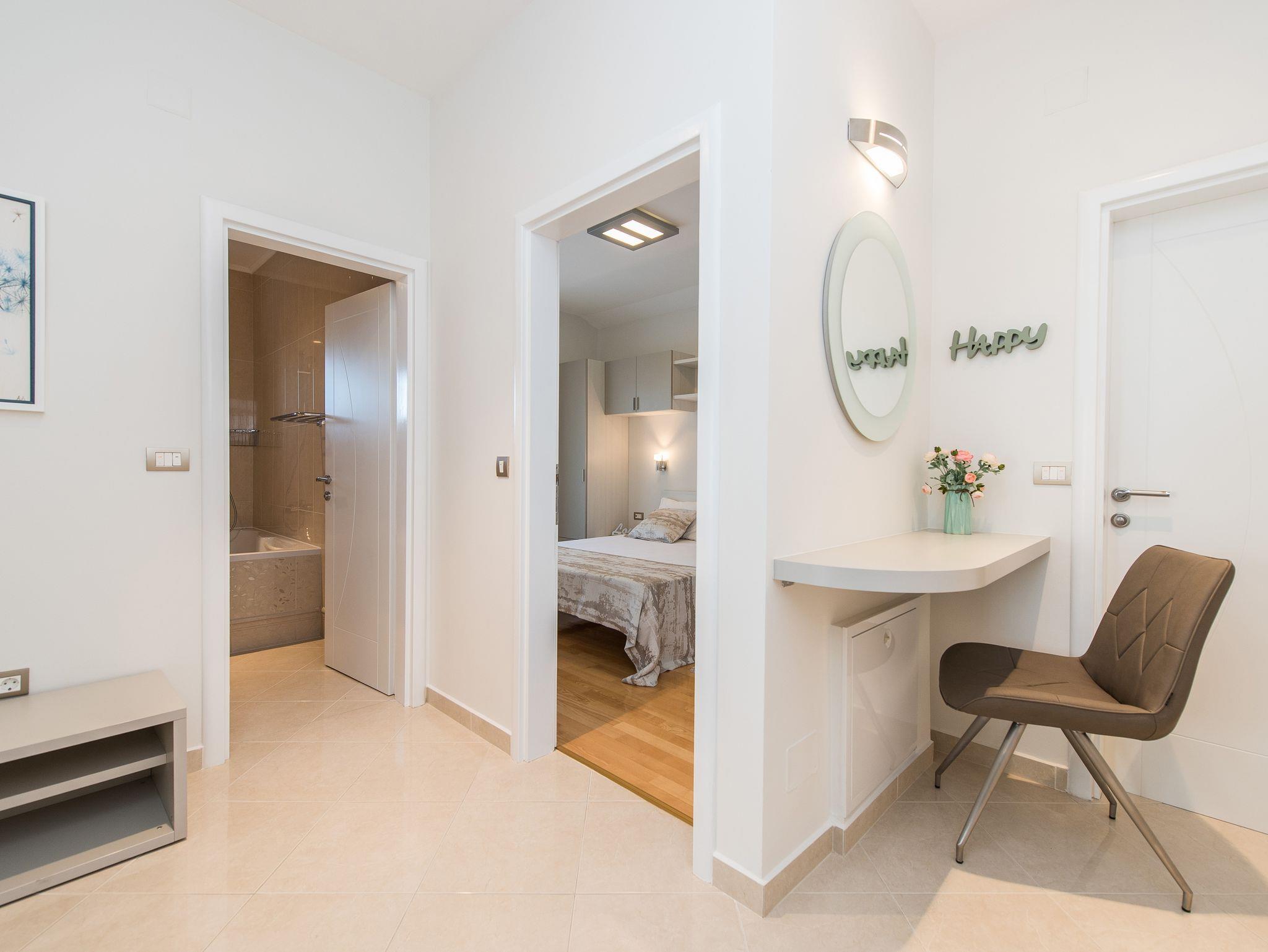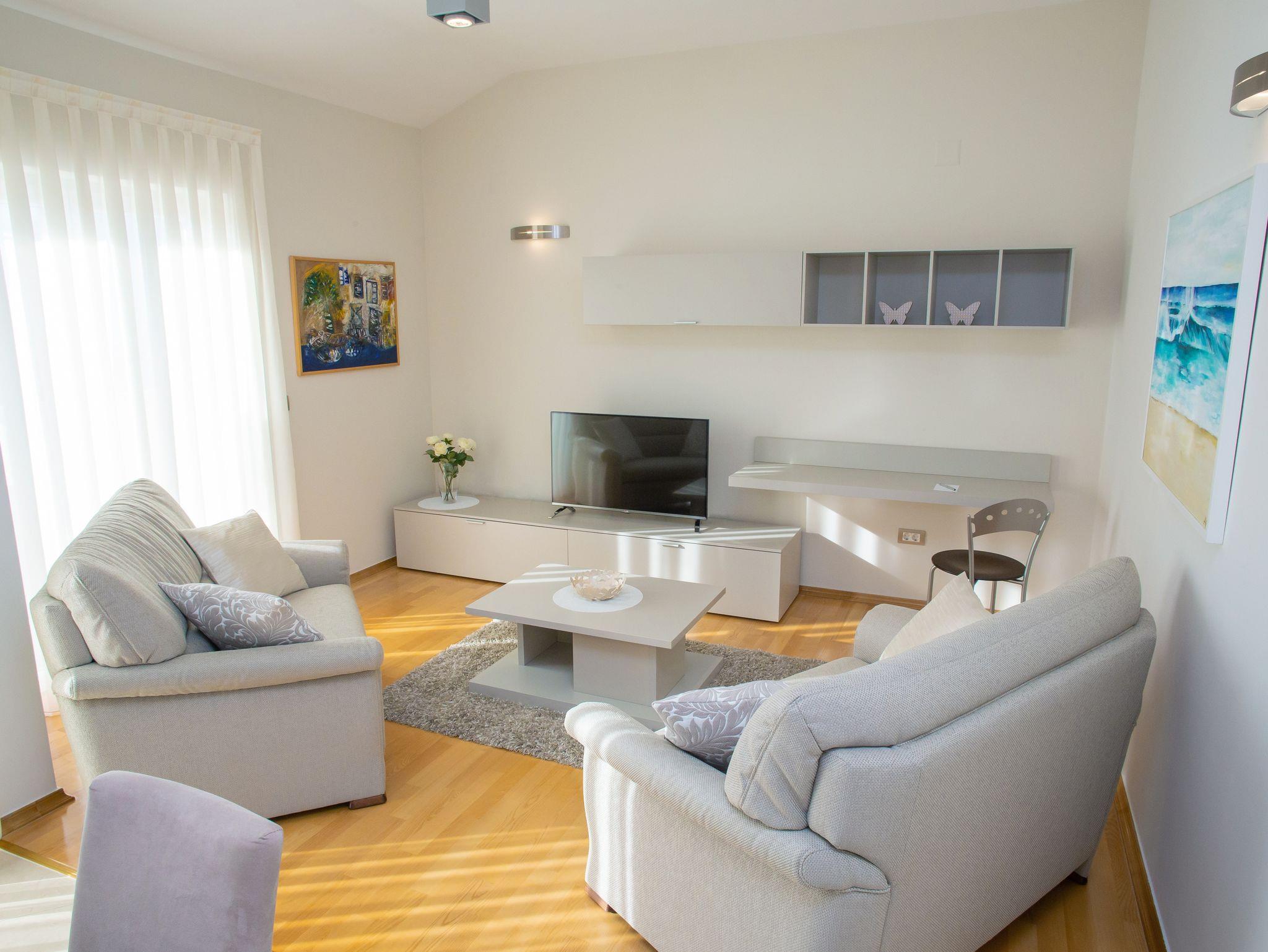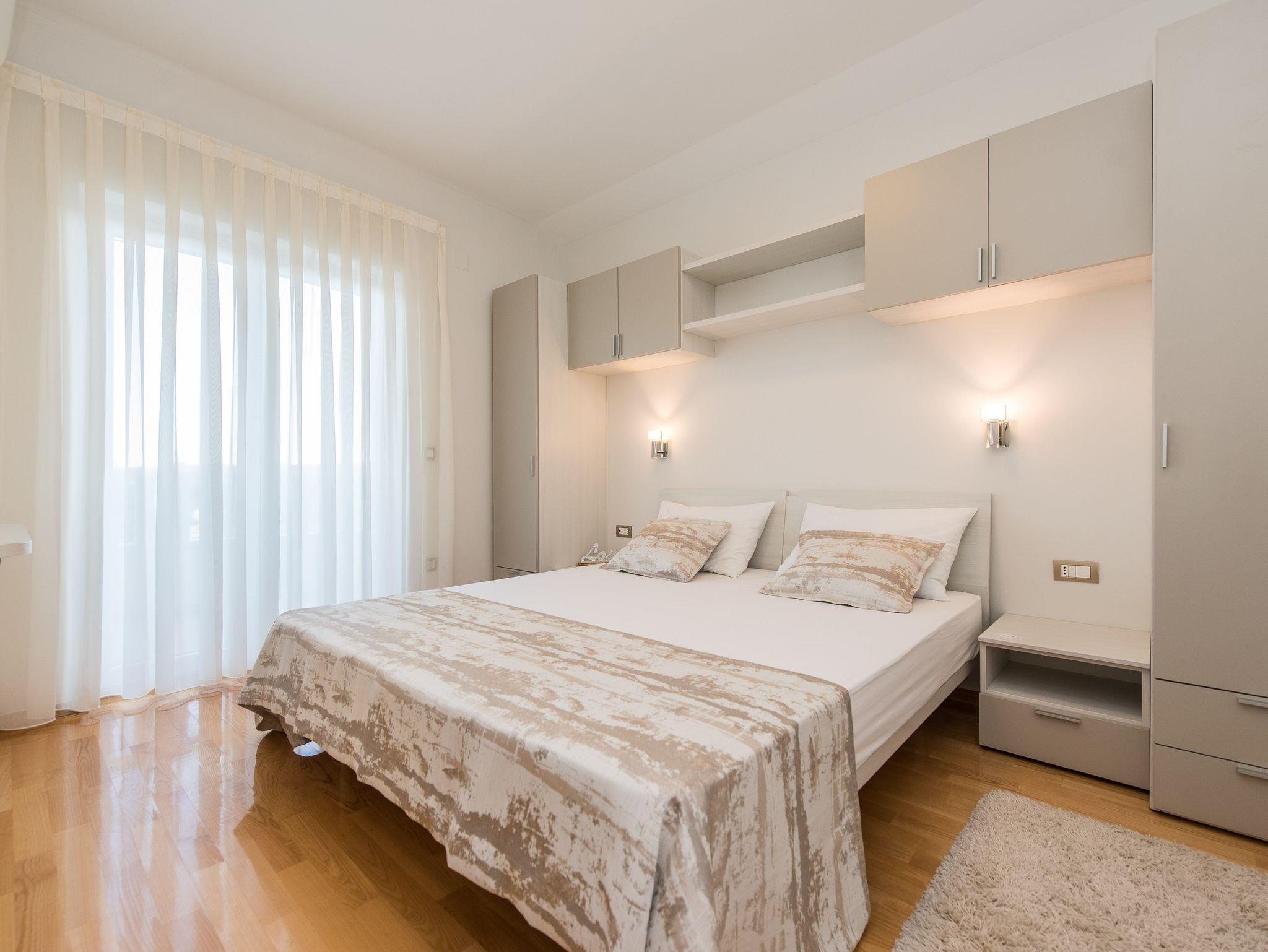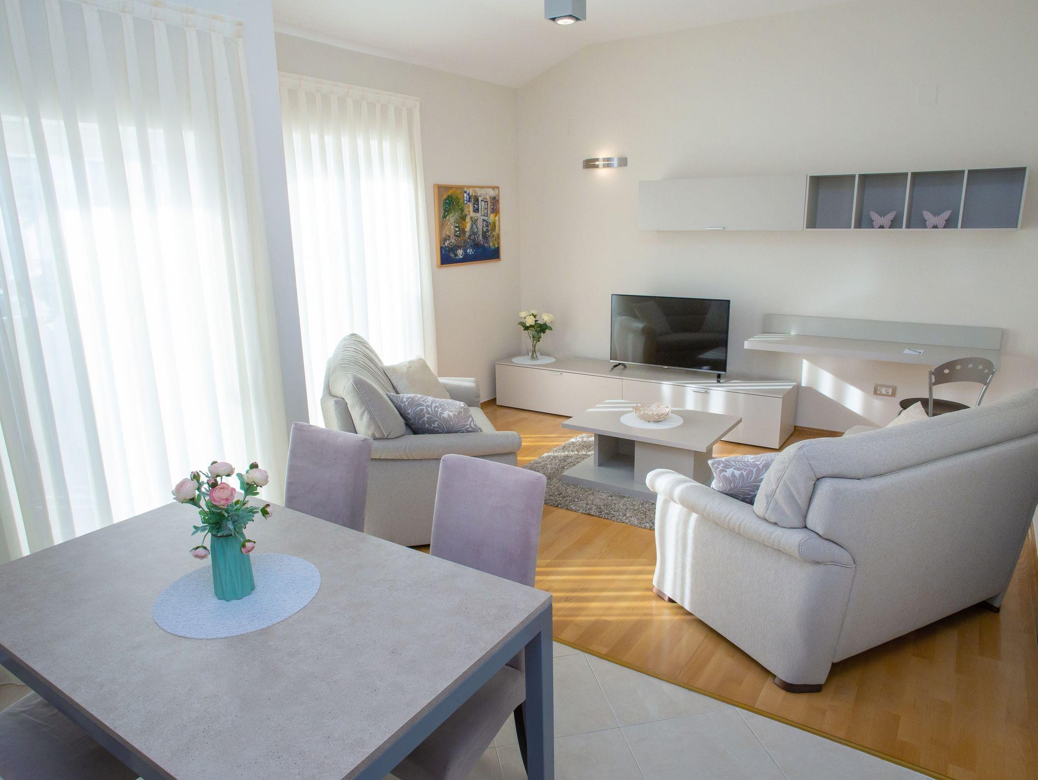 Ferienwohnung bietet Platz für 4 Gäste. Die Betten sind in Schlafzimmern, die es 1 gibt, und in Wohnzimmer, innerhalb einer Gesamtfläche von 55m2, angeordnet. Die Gäste haben eine eigene Terrasse zur Verfügung, auf der sie in warmen Sommernächten genießen können. Das Apartment bietet Meerblick. Es ist erlaubt, Speisen auf dem Gemeinschafts-Grill vorzubereiten. Während ihres Aufenthalts können Gäste das gemeinsam zur Nutzung stehende Schwimmbad benutzen. IM PREIS INBEGRIFFEN: Kurtaxe, Endreinigung, Klimatisierung, Pool, Parkplatz, Garage, Internet, Föhn. UNVERBINDLICHE ZUSÄTZLICHE KOSTEN: Wäschewaschen (10,00 € Waschen). Die Verfügbarkeit zusätzlicher Dienstleistungen in Ihrem reservierten Termin und die Preise derselben (falls nicht aufgeführt) müssen im Voraus überprüft werden. Zusätzliche Dienstleistungen die in der Zahlungsaufforderung nicht aufgeführt sind werden direkt beim Vermieter bezahlt, angenommen der Gast nutzt auch diese. Ermäßigung auf den Grundpreis: Gratistag 14=13 (bei einem Aufenthalt von 14 Tagen oder mehr erhalten Sie einen Gratistag für den Aufenthalt bis 31.12.26).