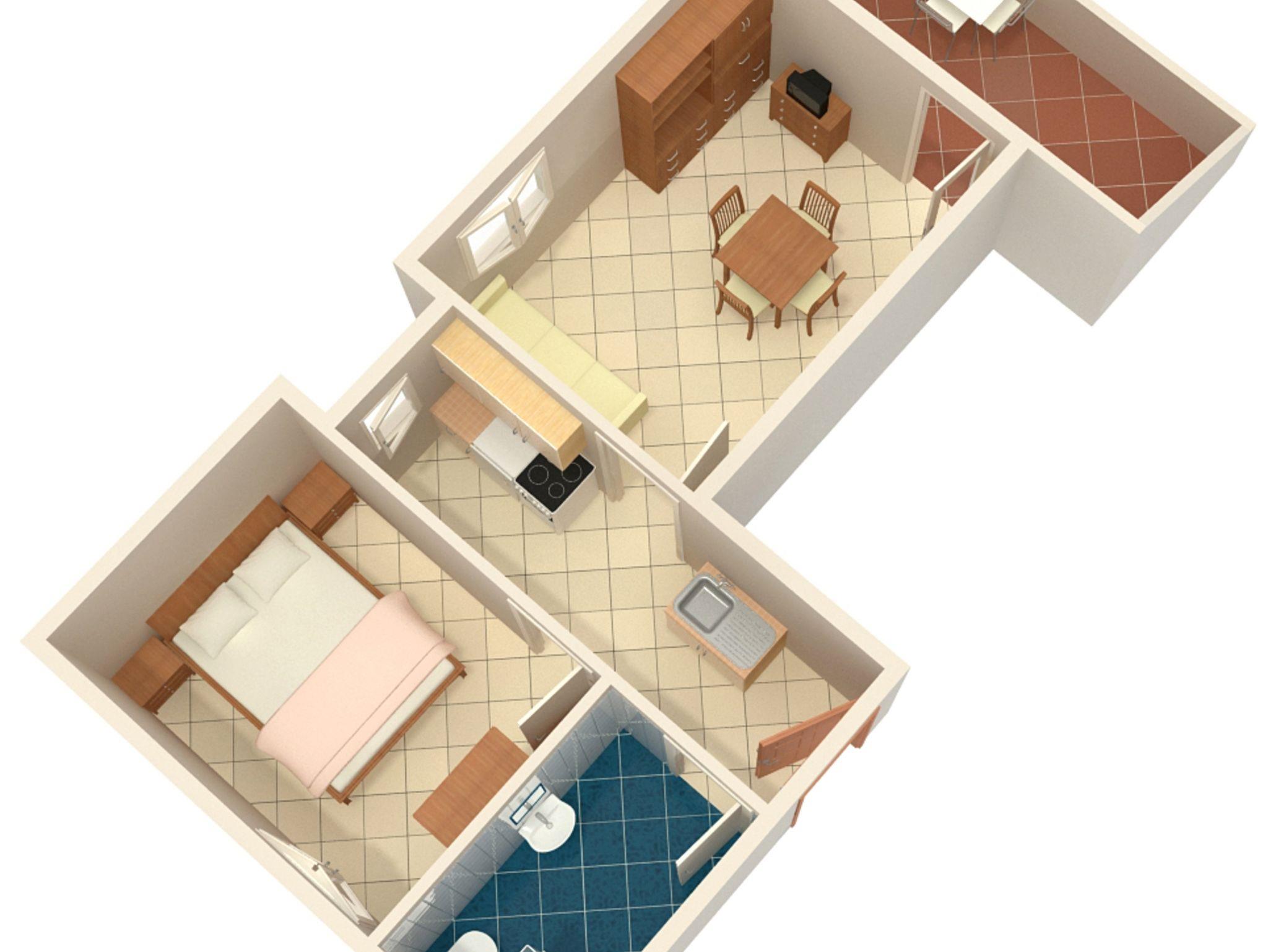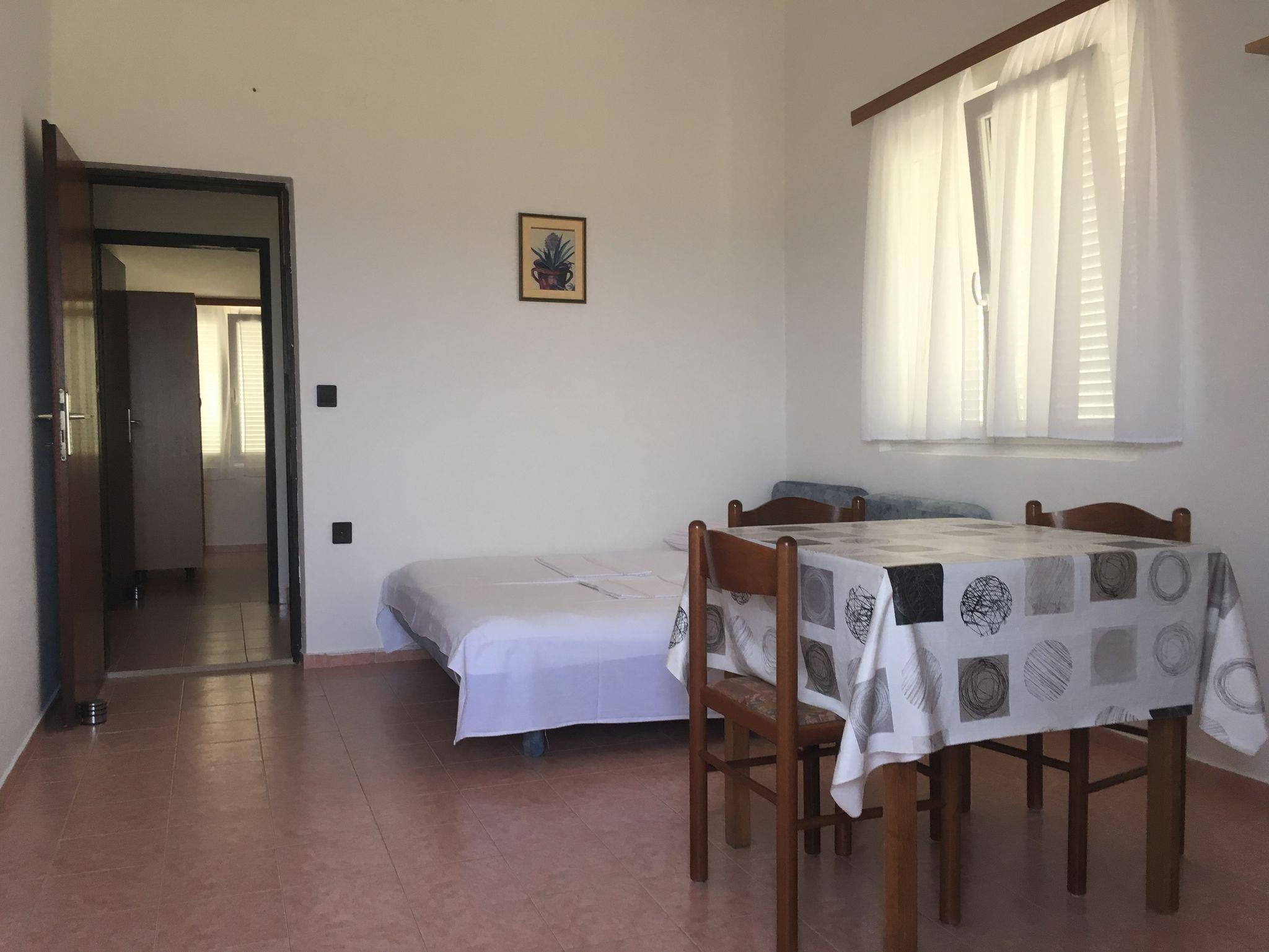 Ferienwohnung bietet Platz für 4 Gäste. Die Betten sind in Schlafzimmern, die es 1 gibt, und in Wohnzimmer, innerhalb einer Gesamtfläche von 37m2, angeordnet. Die Gäste haben eine eigene Terrasse zur Verfügung, auf der sie in warmen Sommernächten genießen können. Das Apartment bietet Meerblick. Es ist erlaubt, Speisen auf dem Gemeinschafts-Grill vorzubereiten. IM PREIS INBEGRIFFEN: Kurtaxe, Endreinigung, Parkplatz, Internet, Kinderbett, Zusatzbett, Bügeleisen, Bügelbrett, Föhn. VERBINDLICHE ZUSÄTZLICHE KOSTEN: Aufzahlung für Kurzaufenthalte (prozentualer Zuschlag pro Nächtigungsanzahl: 30% - 1, 20% - 2, 10% - 3). UNVERBINDLICHE ZUSÄTZLICHE KOSTEN: Klimatisierung (0,50 € pro Stunde). Die Verfügbarkeit zusätzlicher Dienstleistungen in Ihrem reservierten Termin und die Preise derselben (falls nicht aufgeführt) müssen im Voraus überprüft werden. Zusätzliche Dienstleistungen die in der Zahlungsaufforderung nicht aufgeführt sind werden direkt beim Vermieter bezahlt, angenommen der Gast nutzt auch diese.