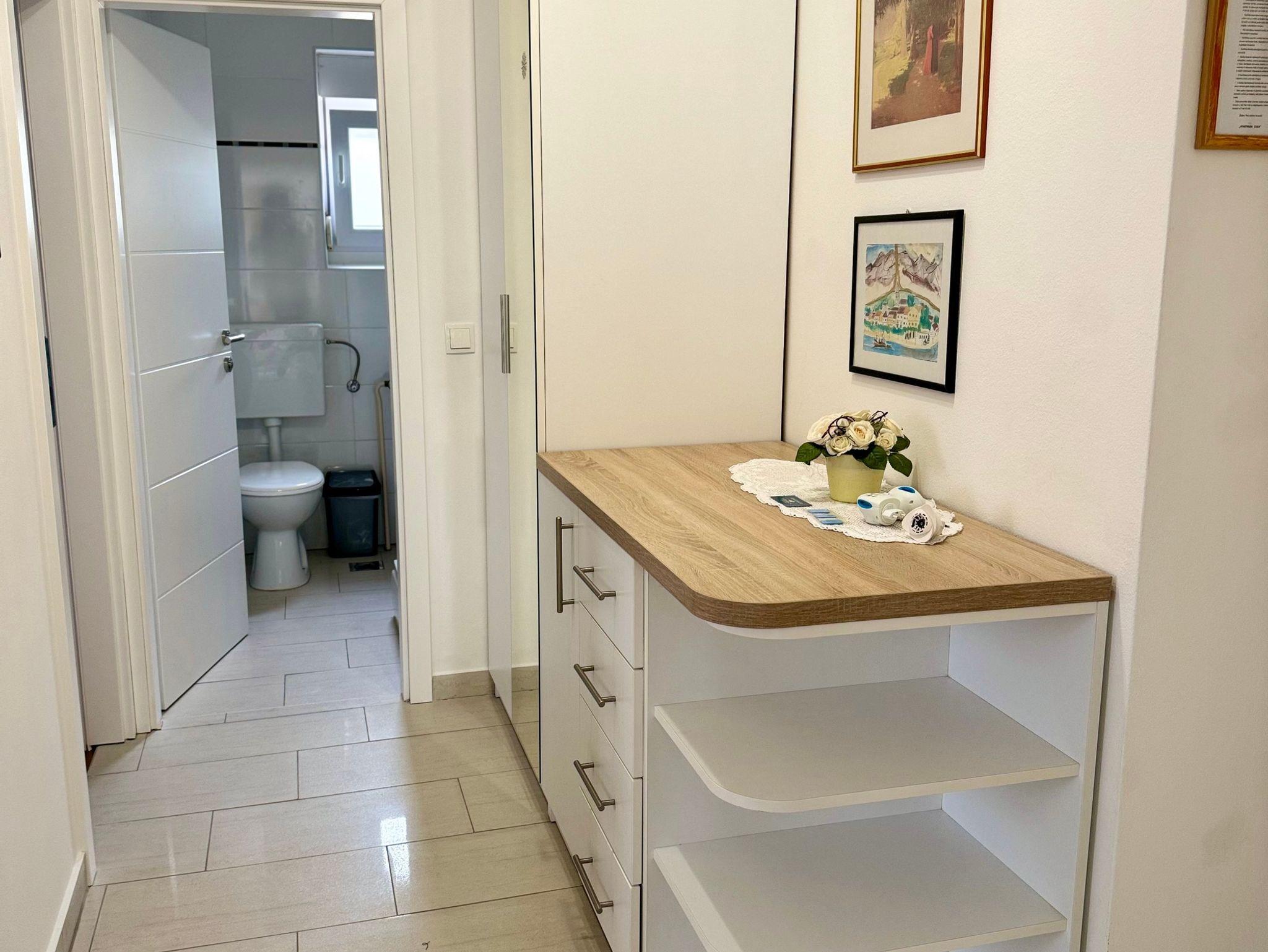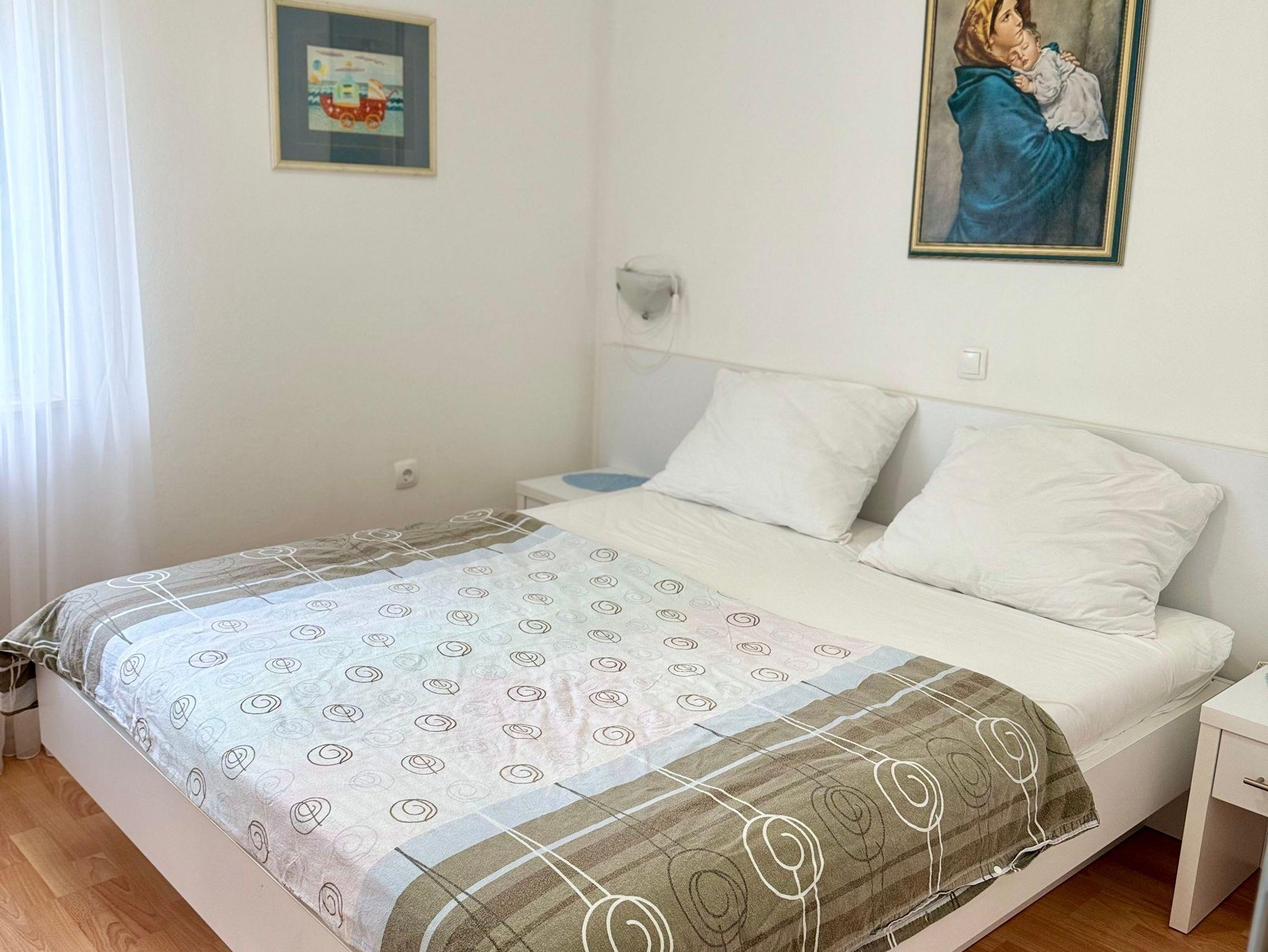 Ferienwohnung bietet Platz für 4 Gäste. Die Betten sind in Schlafzimmern, die es 2 gibt, innerhalb einer Gesamtfläche von 46m2, angeordnet. Die Gäste haben eine eigene Terrasse zur Verfügung, auf der sie in warmen Sommernächten genießen können. Es ist erlaubt, Speisen auf dem Gemeinschafts-Grill vorzubereiten. In der Unterkunftseinheit besteht die Möglichkeit des Mitbringens von Haustieren gegen Aufpreis. In der gebuchten Unterkunftseinheit zahlt man am Ort ein Depositum ( der Preis ist an der Internetseite angeführt ). IM PREIS INBEGRIFFEN: Kurtaxe, Endreinigung, Klimatisierung, Zentralheizung, Parkplatz, Internet, Bügeleisen, Bügelbrett, Föhn, tragbarer Grill. VERBINDLICHE ZUSÄTZLICHE KOSTEN: Kaution (200,00 € Einmalzahlung), Aufzahlung für Kurzaufenthalte (prozentualer Zuschlag pro Nächtigungsanzahl: 30% - 1, 20% - 2, 10% - 3). UNVERBINDLICHE ZUSÄTZLICHE KOSTEN: Frühstück (10,00 €, 50% Nachlass für Kinder zwischen 4 und 12 Jahren, Kinder bis 4 Jahre sind frei.), Wäschewaschen (5,00 € Waschen), Haustiere (20,00 € pro Nacht), Zusatzbett (15,00 € pro Nacht). Die Verfügbarkeit zusätzlicher Dienstleistungen in Ihrem reservierten Termin und die Preise derselben (falls nicht aufgeführt) müssen im Voraus überprüft werden. Zusätzliche Dienstleistungen die in der Zahlungsaufforderung nicht aufgeführt sind werden direkt beim Vermieter bezahlt, angenommen der Gast nutzt auch diese. Ermäßigung auf den Grundpreis: Gratistag 14=13 (bei einem Aufenthalt von 14 Tagen oder mehr erhalten Sie einen Gratistag für den Aufenthalt bis 31.12.26).
