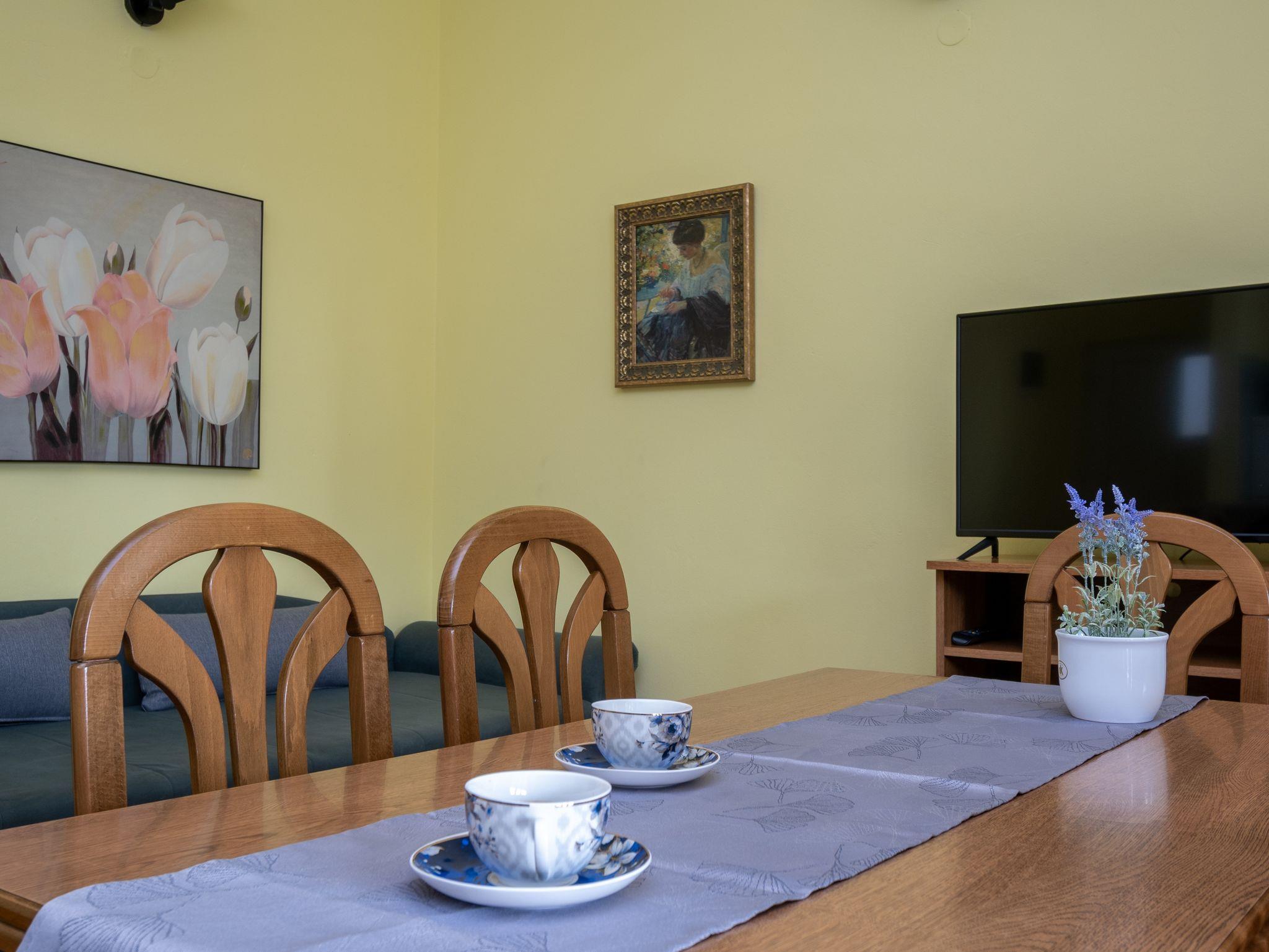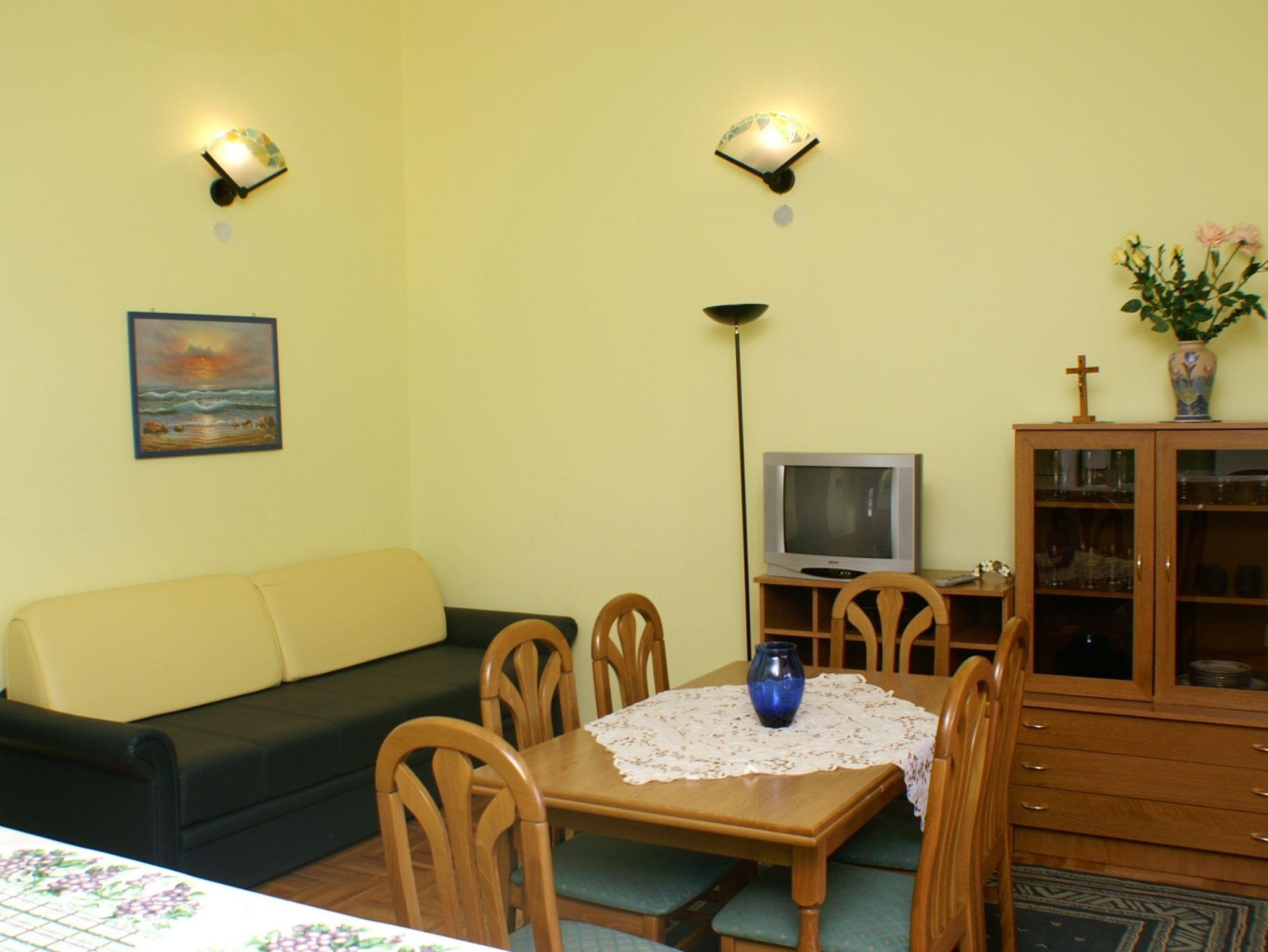 Ferienwohnung bietet Platz für 6 Gäste. Die Betten sind in Schlafzimmern, die es 2 gibt, und in Wohnzimmer, innerhalb einer Gesamtfläche von 49m2, angeordnet. Die Gäste haben eine eigene Terrasse zur Verfügung, auf der sie in warmen Sommernächten genießen können. Für vollen Genuss und Entspannung gibt es einen privaten Grill für Gäste dieser Unterkunft. In der gebuchten Unterkunftseinheit zahlt man am Ort ein Depositum ( der Preis ist an der Internetseite angeführt ). IM PREIS INBEGRIFFEN: Kurtaxe, Endreinigung, Klimatisierung, Parkplatz, Internet, Bügeleisen, Bügelbrett, Föhn. VERBINDLICHE ZUSÄTZLICHE KOSTEN: Kaution (200,00 € Einmalzahlung). Die Verfügbarkeit zusätzlicher Dienstleistungen in Ihrem reservierten Termin und die Preise derselben (falls nicht aufgeführt) müssen im Voraus überprüft werden. Zusätzliche Dienstleistungen die in der Zahlungsaufforderung nicht aufgeführt sind werden direkt beim Vermieter bezahlt, angenommen der Gast nutzt auch diese.