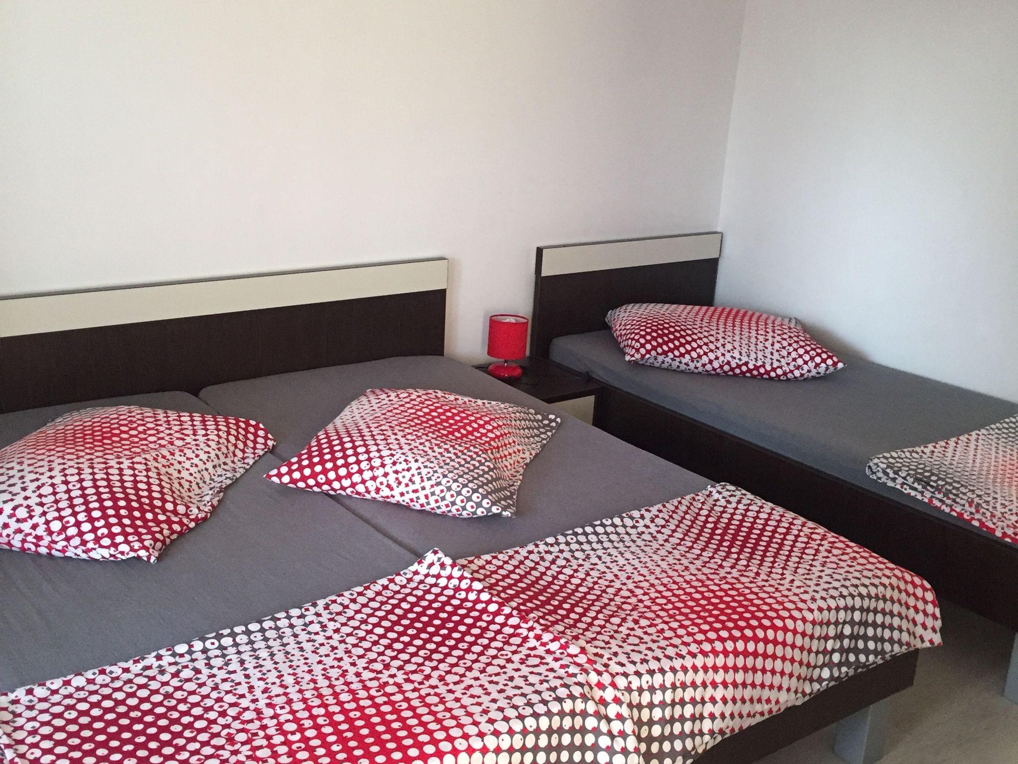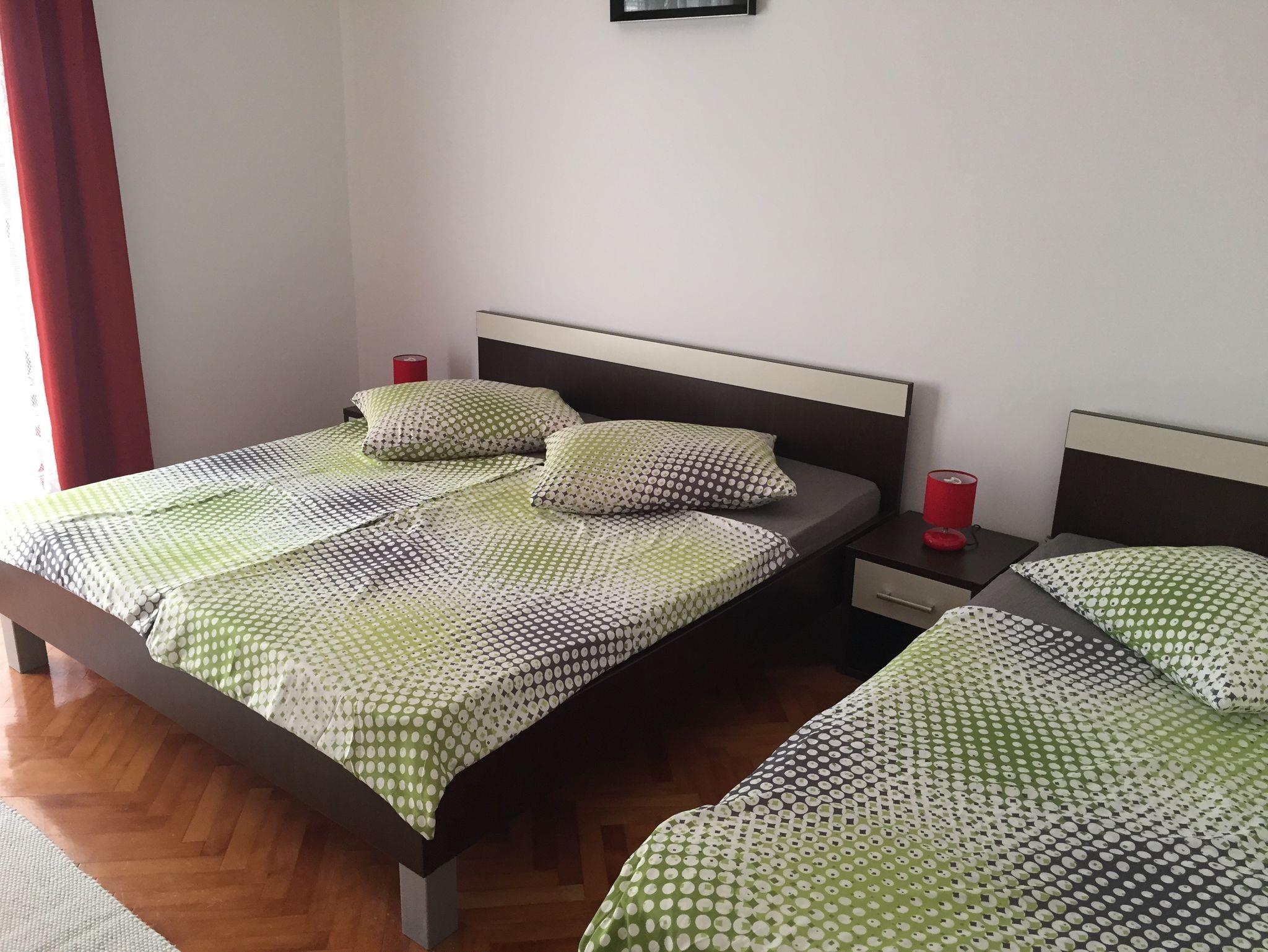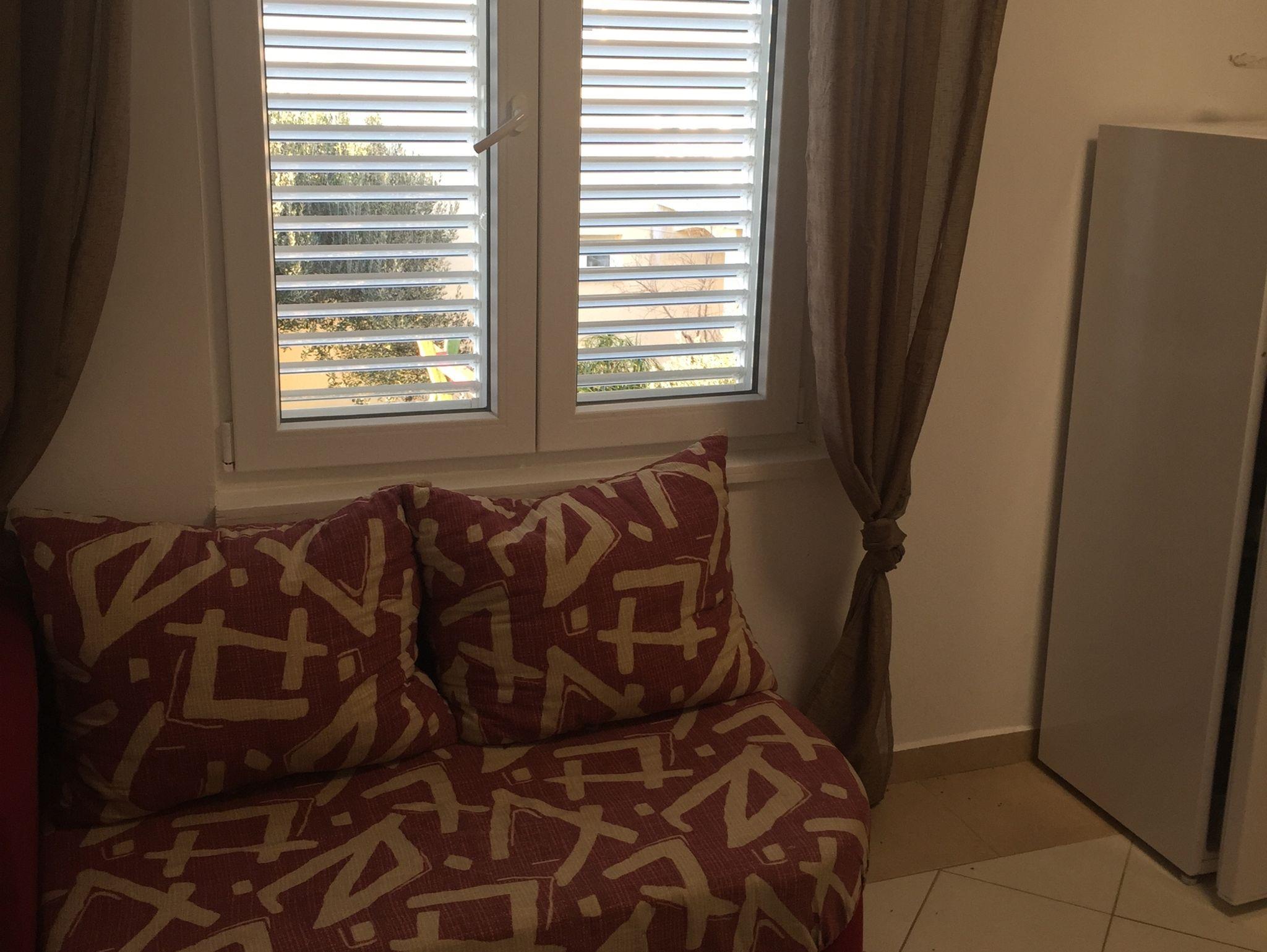 Ferienwohnung bietet Platz für 6 Gäste. Die Betten sind in Schlafzimmern, die es 2 gibt, und in Esszimmer, innerhalb einer Gesamtfläche von 42m2, angeordnet. Die Gäste haben eine eigene Terrasse zur Verfügung, auf der sie in warmen Sommernächten genießen können. Das Apartment bietet Meerblick. Es ist erlaubt, Speisen auf dem Gemeinschafts-Grill vorzubereiten. In der Unterkunftseinheit besteht die Möglichkeit des Mitbringens von Haustieren gegen Aufpreis. Unterkunftseinheit hat Räume, die von dem Rest der Einheit abgetrennt werden. IM PREIS INBEGRIFFEN: Kurtaxe, Endreinigung, Parkplatz, Internet, Bootsanlegeplatz, Föhn, Sonnenschirm, Liegestühle. VERBINDLICHE ZUSÄTZLICHE KOSTEN: Aufzahlung für Kurzaufenthalte (prozentualer Zuschlag pro Nächtigungsanzahl: 30% - 1, 20% - 2, 10% - 3). UNVERBINDLICHE ZUSÄTZLICHE KOSTEN: Klimatisierung (5,00 € pro Nacht), Haustiere (5,00 € pro Nacht). Die Verfügbarkeit zusätzlicher Dienstleistungen in Ihrem reservierten Termin und die Preise derselben (falls nicht aufgeführt) müssen im Voraus überprüft werden. Zusätzliche Dienstleistungen die in der Zahlungsaufforderung nicht aufgeführt sind werden direkt beim Vermieter bezahlt, angenommen der Gast nutzt auch diese.