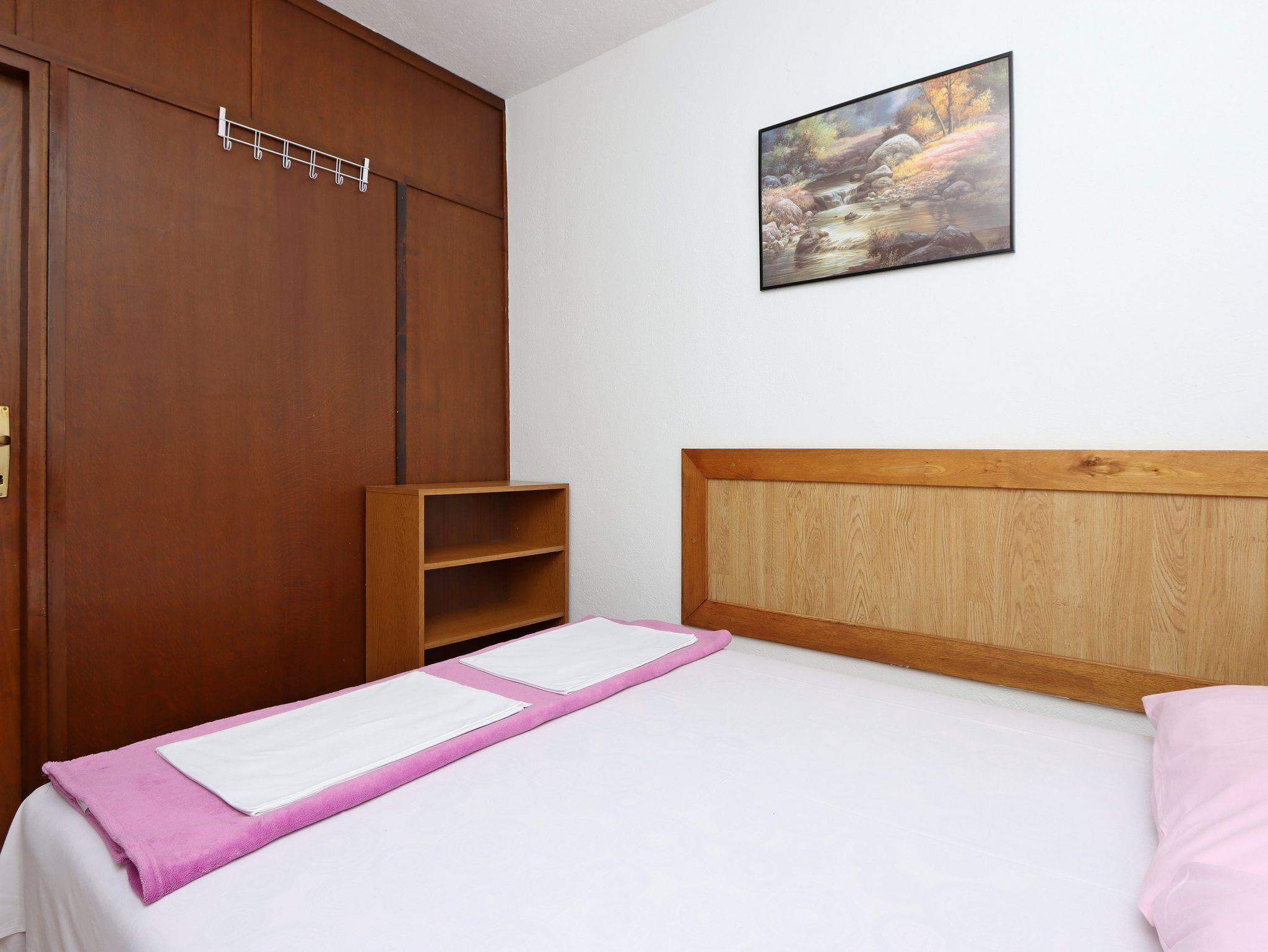 Ferienwohnung bietet Platz für 6 Gäste. Die Betten sind in Schlafzimmern, die es 2 gibt, und in Esszimmer, innerhalb einer Gesamtfläche von 45m2, angeordnet. Die Gäste haben eine eigene Terrasse zur Verfügung, auf der sie in warmen Sommernächten genießen können. Es ist erlaubt, Speisen auf dem Gemeinschafts-Grill vorzubereiten. IM PREIS INBEGRIFFEN: Kurtaxe, Endreinigung, Klimatisierung, Parkplatz, Internet, Fahrrad, Kinderbett, Bügeleisen, Bügelbrett, Föhn. VERBINDLICHE ZUSÄTZLICHE KOSTEN: Aufzahlung für Kurzaufenthalte (prozentualer Zuschlag pro Nächtigungsanzahl: 30% - 1, 20% - 2, 10% - 3). Die Verfügbarkeit zusätzlicher Dienstleistungen in Ihrem reservierten Termin und die Preise derselben (falls nicht aufgeführt) müssen im Voraus überprüft werden. Zusätzliche Dienstleistungen die in der Zahlungsaufforderung nicht aufgeführt sind werden direkt beim Vermieter bezahlt, angenommen der Gast nutzt auch diese. Ermäßigung auf den Grundpreis: Gratistag 21=19 (bei einem Aufenthalt von 21 Tagen oder mehr erhalten Sie 2 Gratistage für den Aufenthalt bis 31.12.26).