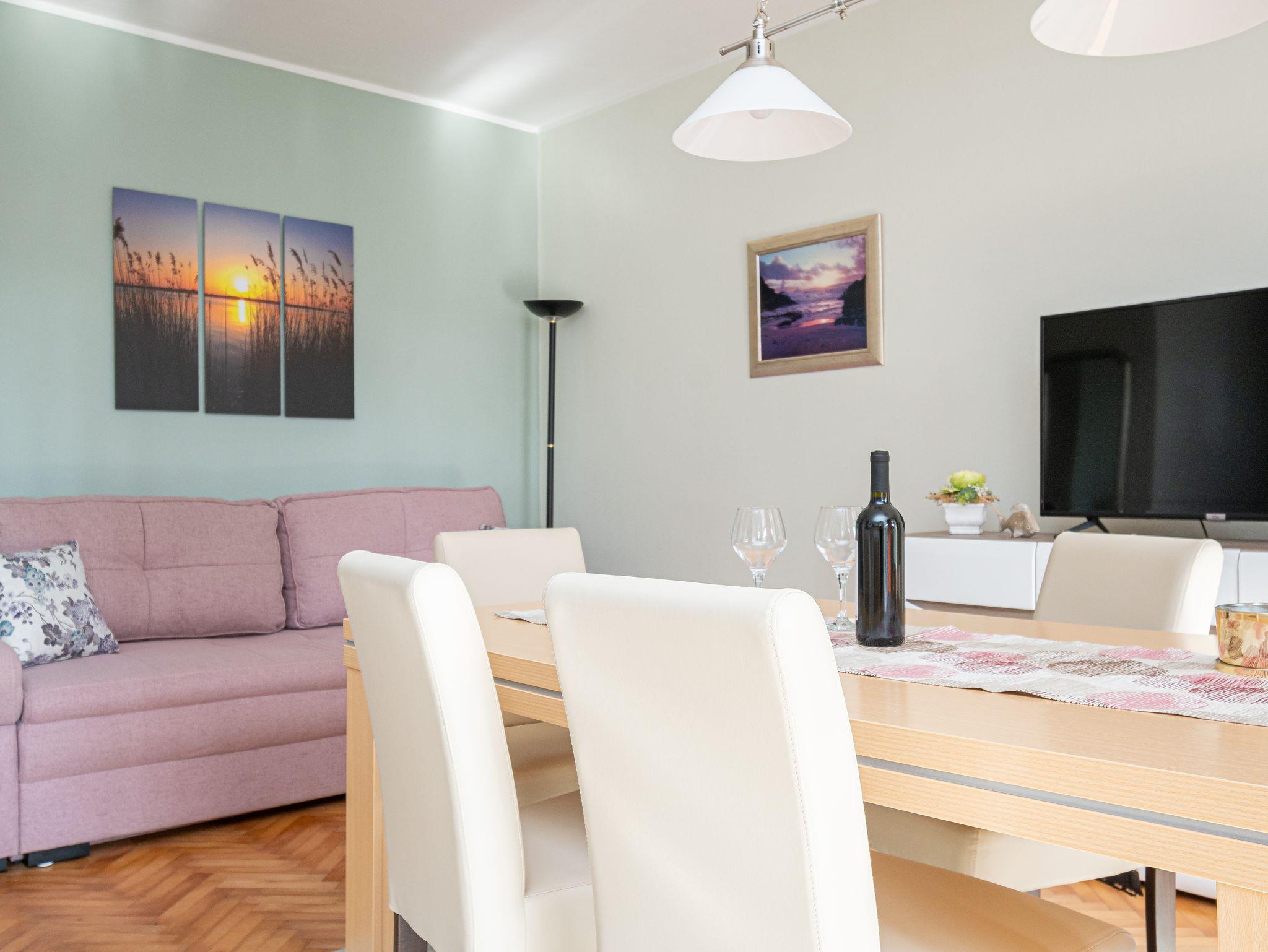 Ferienwohnung bietet Platz für 6 Gäste. Die Betten sind in Schlafzimmern, die es 2 gibt, und in Wohnzimmer, innerhalb einer Gesamtfläche von 49m2, angeordnet. Die Gäste haben eine eigene Terrasse zur Verfügung, auf der sie in warmen Sommernächten genießen können. Für vollen Genuss und Entspannung gibt es einen privaten Grill für Gäste dieser Unterkunft. In der gebuchten Unterkunftseinheit zahlt man am Ort ein Depositum ( der Preis ist an der Internetseite angeführt ). IM PREIS INBEGRIFFEN: Kurtaxe, Endreinigung, Klimatisierung, Parkplatz, Internet, Bügeleisen, Bügelbrett, Föhn. VERBINDLICHE ZUSÄTZLICHE KOSTEN: Kaution (200,00 € Einmalzahlung). Die Verfügbarkeit zusätzlicher Dienstleistungen in Ihrem reservierten Termin und die Preise derselben (falls nicht aufgeführt) müssen im Voraus überprüft werden. Zusätzliche Dienstleistungen die in der Zahlungsaufforderung nicht aufgeführt sind werden direkt beim Vermieter bezahlt, angenommen der Gast nutzt auch diese.