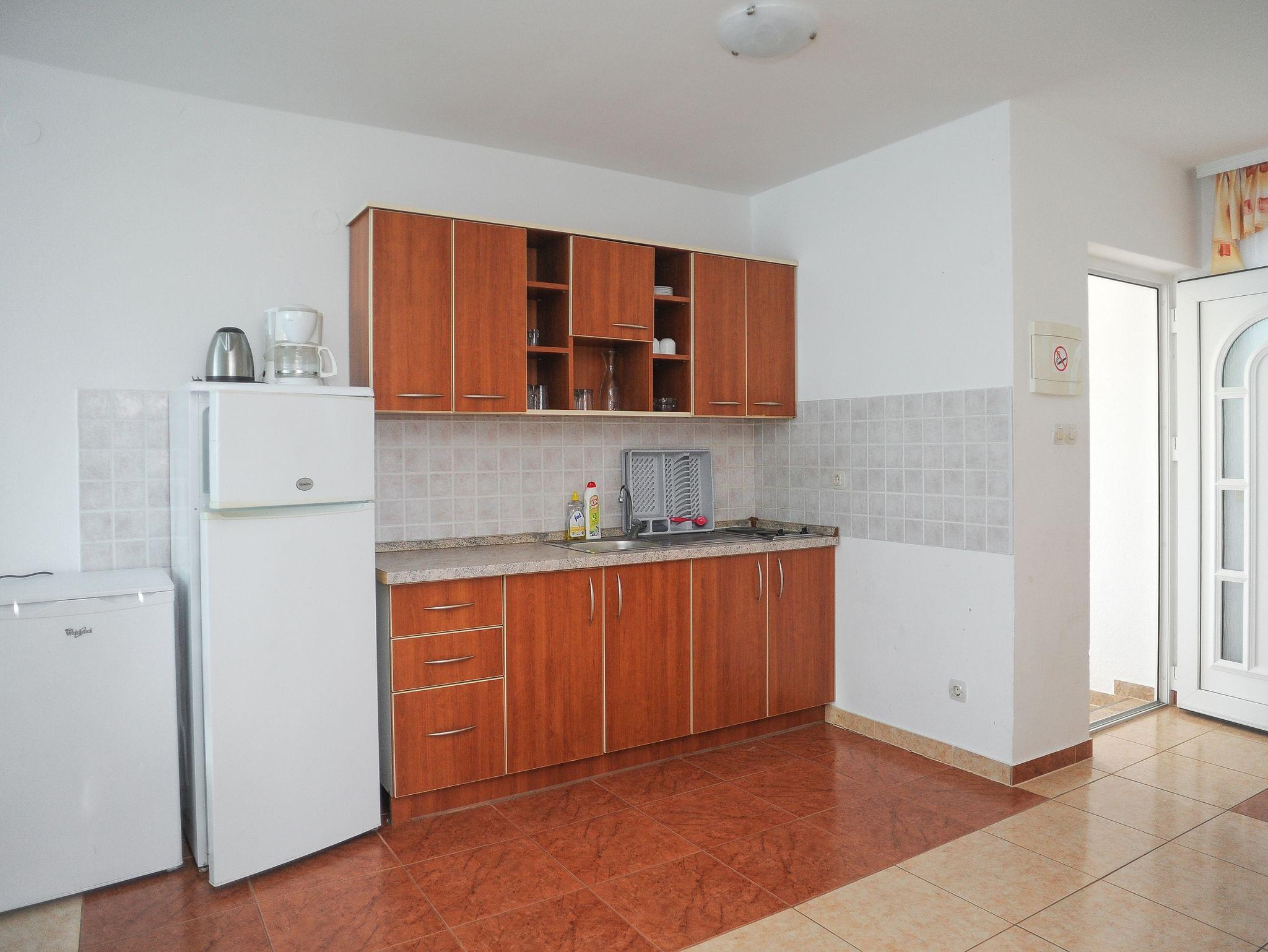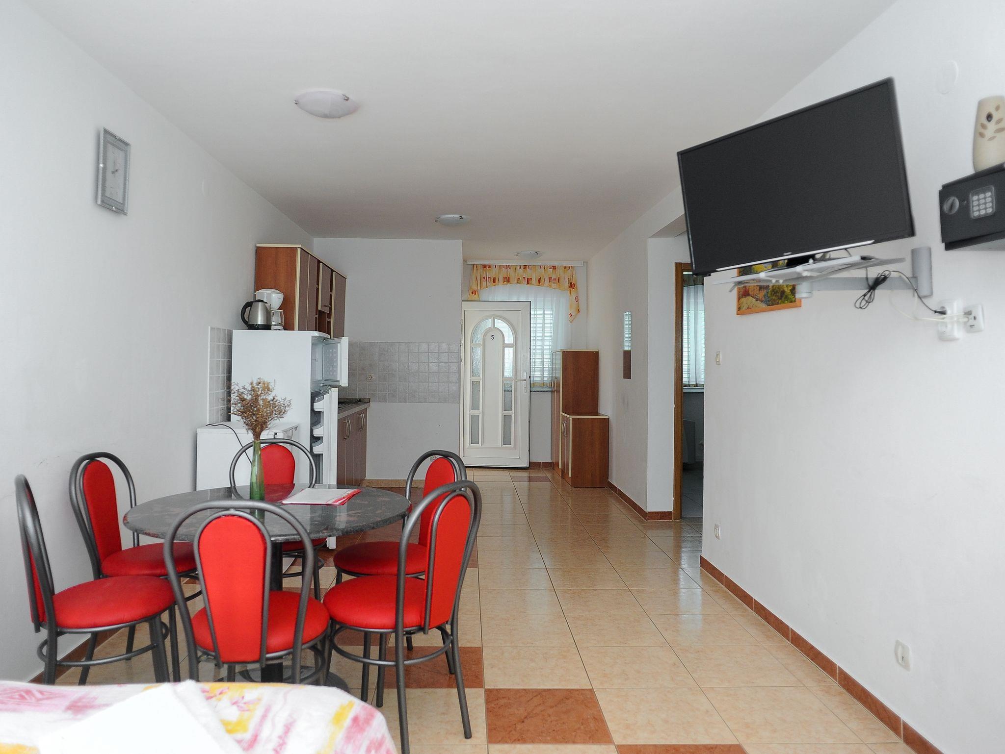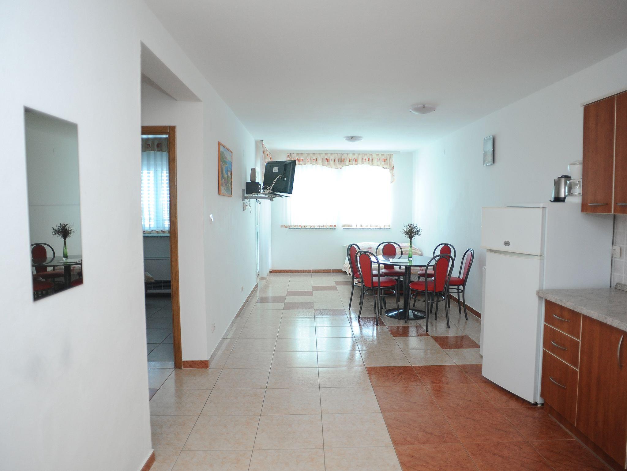Ferienwohnung bietet Platz für 6 Gäste. Die Betten sind in Schlafzimmern, die es 2 gibt, und in Esszimmer, innerhalb einer Gesamtfläche von 51m2, angeordnet. Die Gäste haben eine eigene Terrasse zur Verfügung, auf der sie in warmen Sommernächten genießen können. Das Apartment bietet Meerblick. Während ihres Aufenthalts können Gäste das gemeinsam zur Nutzung stehende Schwimmbad benutzen. IM PREIS INBEGRIFFEN: Endreinigung, Klimatisierung, Pool, Parkplatz, Internet, Föhn. VERBINDLICHE ZUSÄTZLICHE KOSTEN: Kurtaxe (Erwachsene 0,93 € - 1,60 € Nacht/Person, Kinderermäßigung 12 - 17 Jahre), Aufzahlung für Kurzaufenthalte (prozentualer Zuschlag pro Nächtigungsanzahl: 30% - 1, 20% - 2, 10% - 3). UNVERBINDLICHE ZUSÄTZLICHE KOSTEN: Frühstück (10,00 €, 50% Nachlass für Kinder zwischen 4 und 12 Jahren, Kinder bis 4 Jahre sind frei.), Halbpension (30,00 €, 50% Nachlass für Kinder zwischen 4 und 12 Jahren, Kinder bis 4 Jahre sind frei.), Wäschewaschen (20,00 € Waschen), Zusatzbett (15,00 € pro Nacht). Die Verfügbarkeit zusätzlicher Dienstleistungen in Ihrem reservierten Termin und die Preise derselben (falls nicht aufgeführt) müssen im Voraus überprüft werden. Zusätzliche Dienstleistungen die in der Zahlungsaufforderung nicht aufgeführt sind werden direkt beim Vermieter bezahlt, angenommen der Gast nutzt auch diese. Ermäßigung auf den Grundpreis: Gratistag 28=25 (bei einem Aufenthalt von 28 oder mehr Tagen erhalten Sie 3 kostenlose Tage für den Aufenthalt bis 31.12.26).