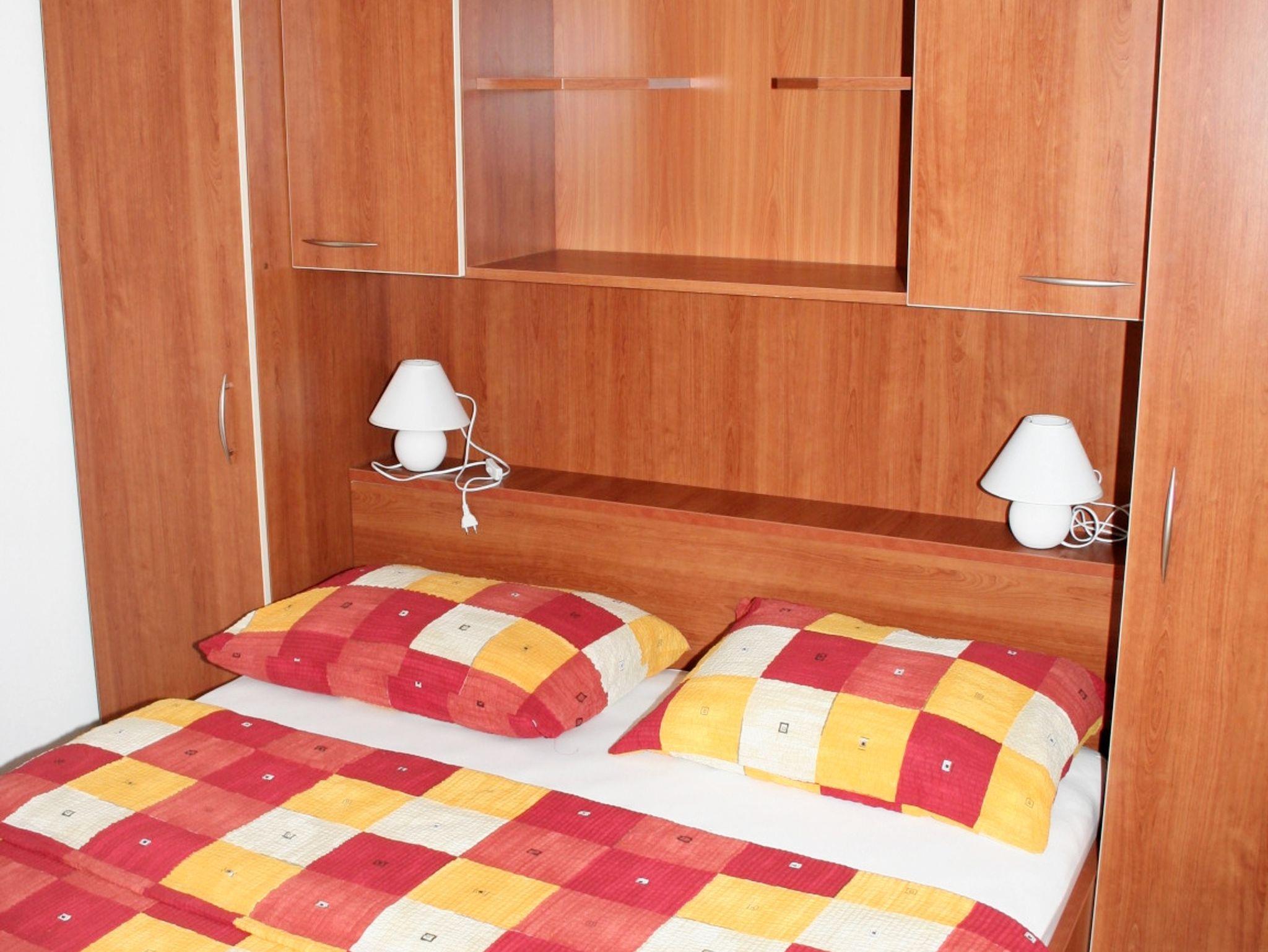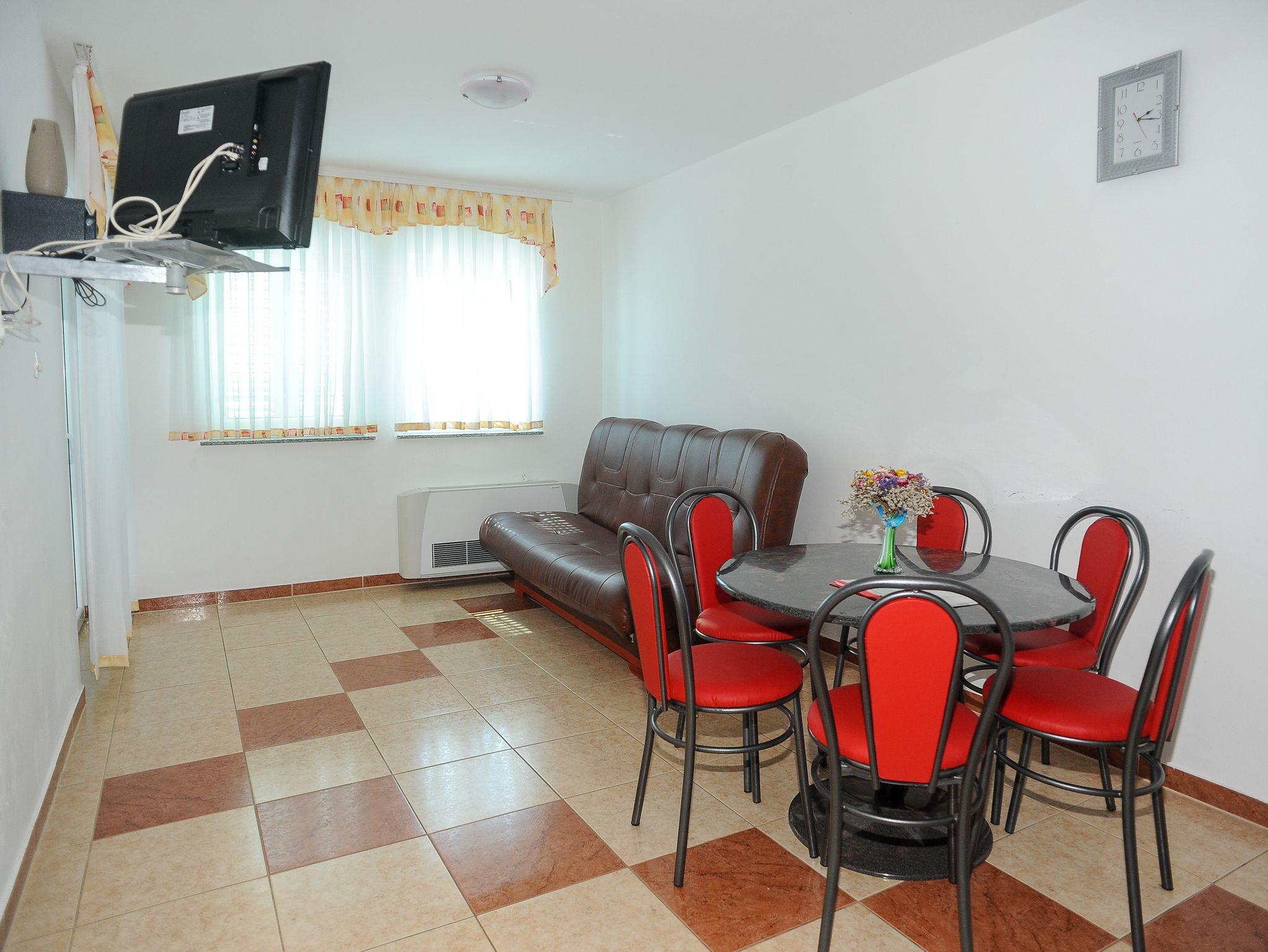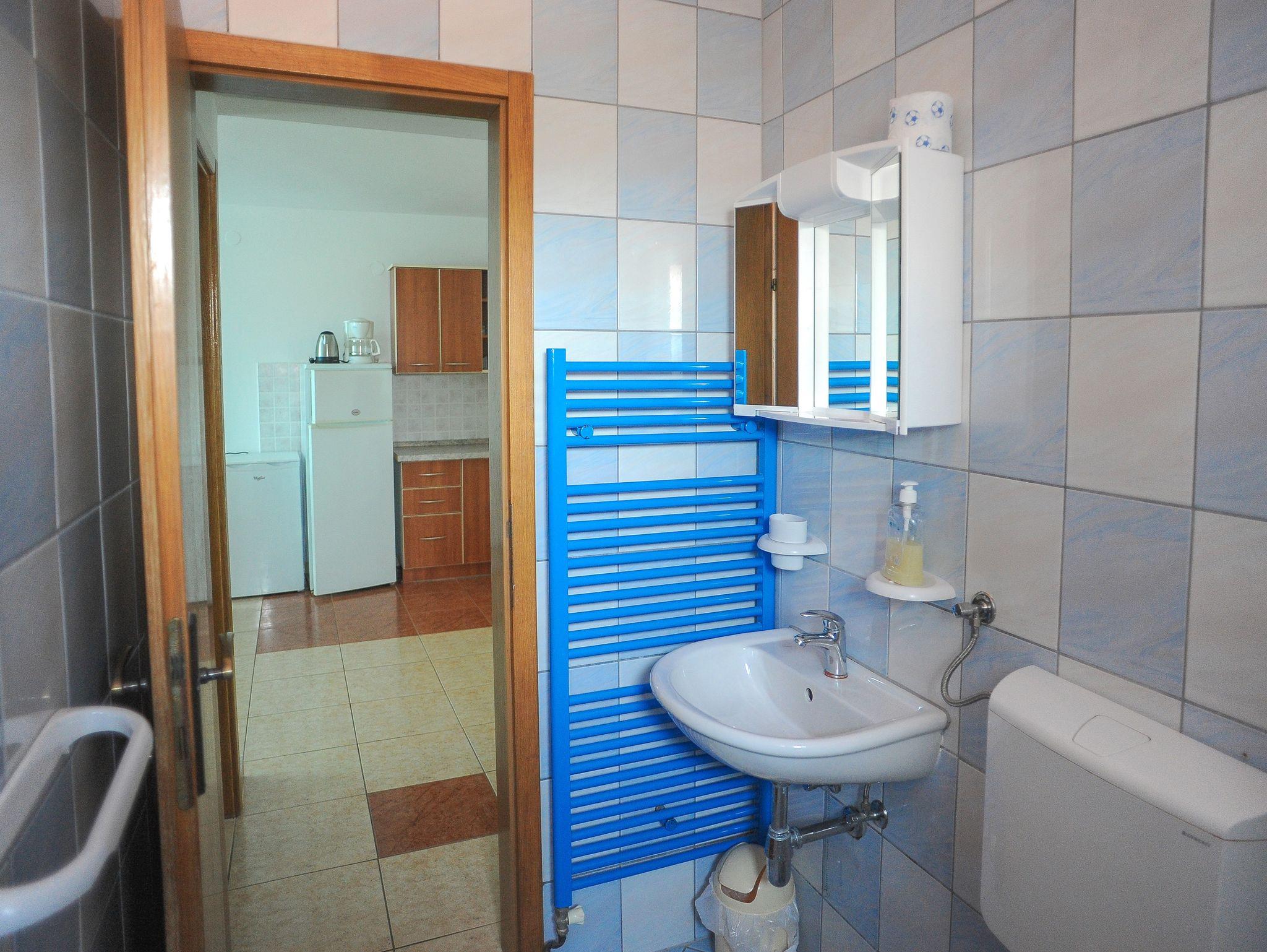 Ferienwohnung bietet Platz für 6 Gäste. Die Betten sind in Schlafzimmern, die es 2 gibt, und in Esszimmer, innerhalb einer Gesamtfläche von 51m2, angeordnet. Die Gäste haben eine eigene Terrasse zur Verfügung, auf der sie in warmen Sommernächten genießen können. Das Apartment bietet Meerblick. Während ihres Aufenthalts können Gäste das gemeinsam zur Nutzung stehende Schwimmbad benutzen. IM PREIS INBEGRIFFEN: Endreinigung, Klimatisierung, Pool, Parkplatz, Internet, Föhn. VERBINDLICHE ZUSÄTZLICHE KOSTEN: Kurtaxe (Erwachsene 0,93 € - 1,60 € Nacht/Person, Kinderermäßigung 12 - 17 Jahre), Aufzahlung für Kurzaufenthalte (prozentualer Zuschlag pro Nächtigungsanzahl: 30% - 1, 20% - 2, 10% - 3). UNVERBINDLICHE ZUSÄTZLICHE KOSTEN: Frühstück (10,00 €, 50% Nachlass für Kinder zwischen 4 und 12 Jahren, Kinder bis 4 Jahre sind frei.), Halbpension (30,00 €, 50% Nachlass für Kinder zwischen 4 und 12 Jahren, Kinder bis 4 Jahre sind frei.), Wäschewaschen (20,00 € Waschen), Zusatzbett (15,00 € pro Nacht). Die Verfügbarkeit zusätzlicher Dienstleistungen in Ihrem reservierten Termin und die Preise derselben (falls nicht aufgeführt) müssen im Voraus überprüft werden. Zusätzliche Dienstleistungen die in der Zahlungsaufforderung nicht aufgeführt sind werden direkt beim Vermieter bezahlt, angenommen der Gast nutzt auch diese. Ermäßigung auf den Grundpreis: Gratistag 28=25 (bei einem Aufenthalt von 28 oder mehr Tagen erhalten Sie 3 kostenlose Tage für den Aufenthalt bis 31.12.26).