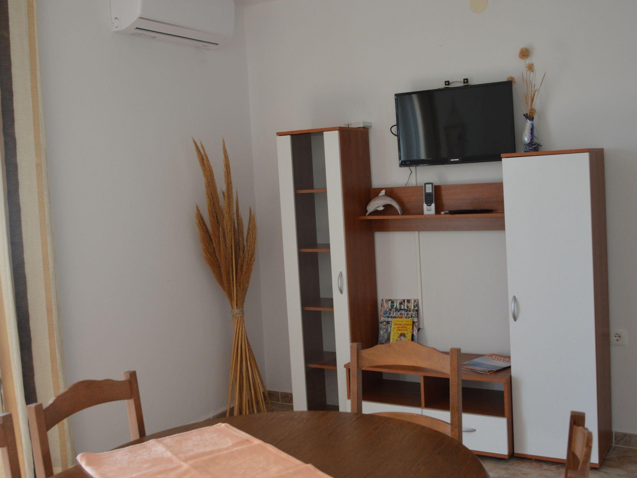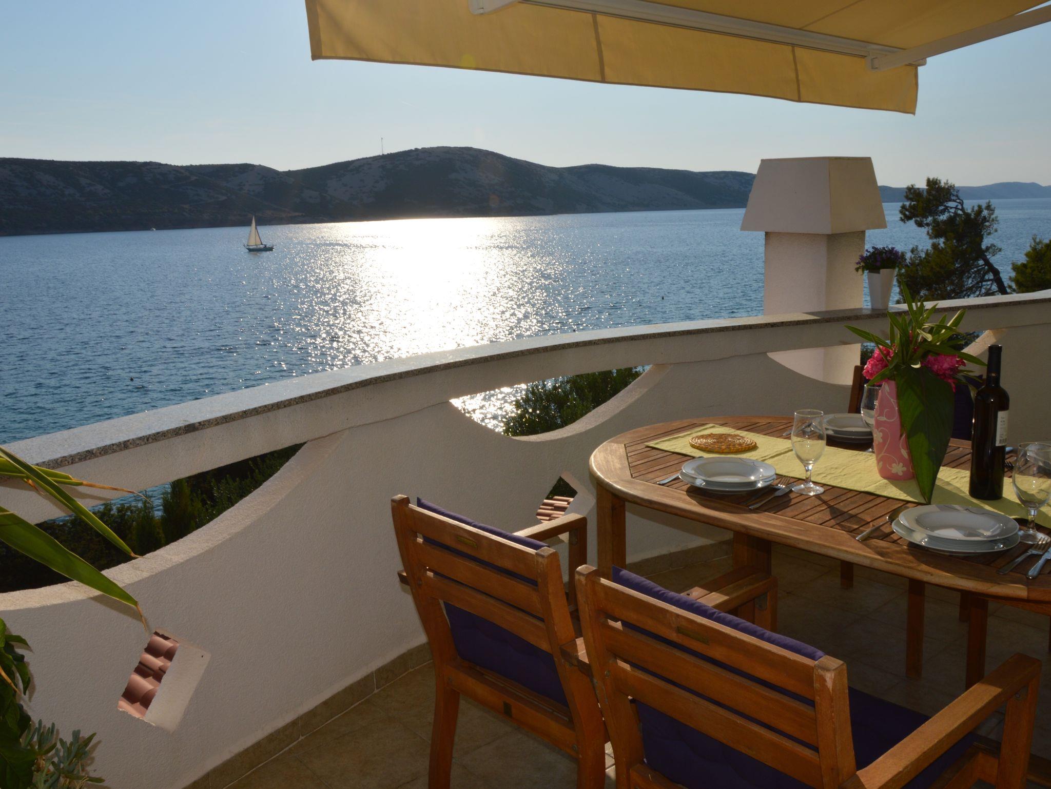 Ferienwohnung bietet Platz für 6 Gäste. Die Betten sind in Schlafzimmern, die es 2 gibt, und in Esszimmer, innerhalb einer Gesamtfläche von 51m2, angeordnet. Die Gäste haben eine eigene Terrasse zur Verfügung, auf der sie in warmen Sommernächten genießen können. Das Apartment bietet Meerblick. Es ist erlaubt, Speisen auf dem Gemeinschafts-Grill vorzubereiten. In der Unterkunftseinheit besteht die Möglichkeit des Mitbringens von Haustieren gegen Aufpreis. In der gebuchten Unterkunftseinheit zahlt man am Ort ein Depositum ( der Preis ist an der Internetseite angeführt ). IM PREIS INBEGRIFFEN: Kurtaxe, Endreinigung, Klimatisierung, Parkplatz, Internet, Bootsanlegeplatz, Bügeleisen, Bügelbrett, Föhn, Sonnenschirm, Liegestühle. VERBINDLICHE ZUSÄTZLICHE KOSTEN: Kaution (150,00 € Einmalzahlung), Aufzahlung für Kurzaufenthalte (prozentualer Zuschlag pro Nächtigungsanzahl: 30% - 1, 20% - 2, 10% - 3). UNVERBINDLICHE ZUSÄTZLICHE KOSTEN: Haustiere (5,00 € pro Nacht). Die Verfügbarkeit zusätzlicher Dienstleistungen in Ihrem reservierten Termin und die Preise derselben (falls nicht aufgeführt) müssen im Voraus überprüft werden. Zusätzliche Dienstleistungen die in der Zahlungsaufforderung nicht aufgeführt sind werden direkt beim Vermieter bezahlt, angenommen der Gast nutzt auch diese. Ermäßigung auf den Grundpreis: Gratistag 21=19 (bei einem Aufenthalt von 21 Tagen oder mehr erhalten Sie 2 Gratistage für den Aufenthalt bis 31.12.26).