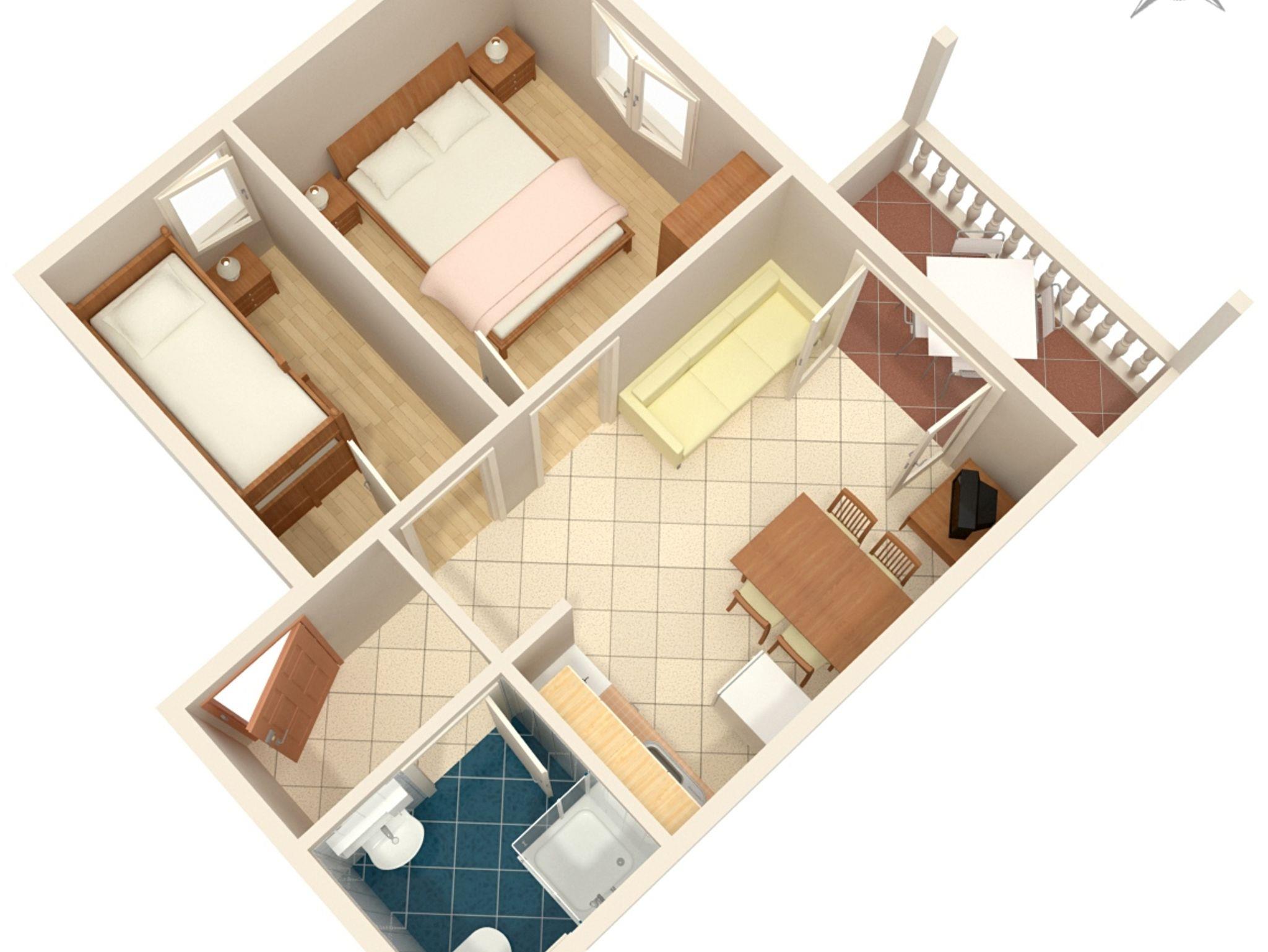 Ferienwohnung bietet Platz für 5 Gäste. Die Betten sind in Schlafzimmern, die es 2 gibt, und in Esszimmer, innerhalb einer Gesamtfläche von 35m2, angeordnet. Die Gäste haben eine eigene Terrasse zur Verfügung, auf der sie in warmen Sommernächten genießen können. Es ist erlaubt, Speisen auf dem Gemeinschafts-Grill vorzubereiten. In der Unterkunftseinheit besteht die Möglichkeit des Mitbringens von Haustieren gegen Aufpreis. IM PREIS INBEGRIFFEN: Kurtaxe, Endreinigung, Parkplatz, Internet, Bootsanlegeplatz, Föhn, Sonnenschirm, Liegestühle. VERBINDLICHE ZUSÄTZLICHE KOSTEN: Aufzahlung für Kurzaufenthalte (prozentualer Zuschlag pro Nächtigungsanzahl: 30% - 1, 20% - 2, 10% - 3). UNVERBINDLICHE ZUSÄTZLICHE KOSTEN: Klimatisierung (5,00 € pro Nacht), Haustiere (5,00 € pro Nacht). Die Verfügbarkeit zusätzlicher Dienstleistungen in Ihrem reservierten Termin und die Preise derselben (falls nicht aufgeführt) müssen im Voraus überprüft werden. Zusätzliche Dienstleistungen die in der Zahlungsaufforderung nicht aufgeführt sind werden direkt beim Vermieter bezahlt, angenommen der Gast nutzt auch diese.