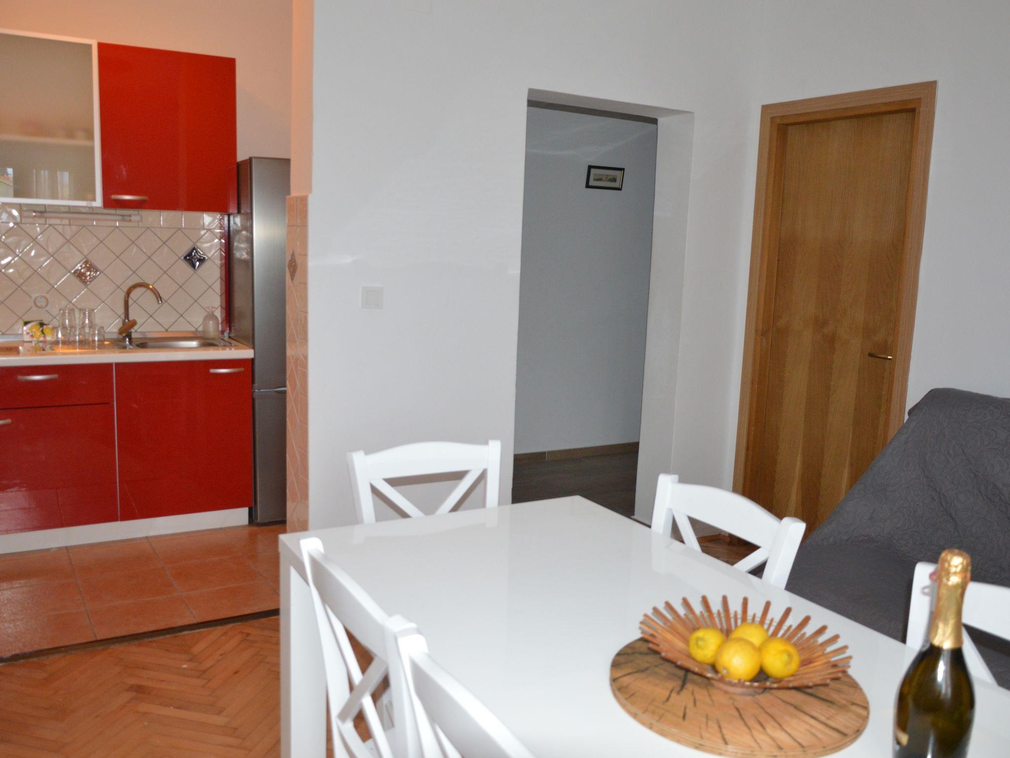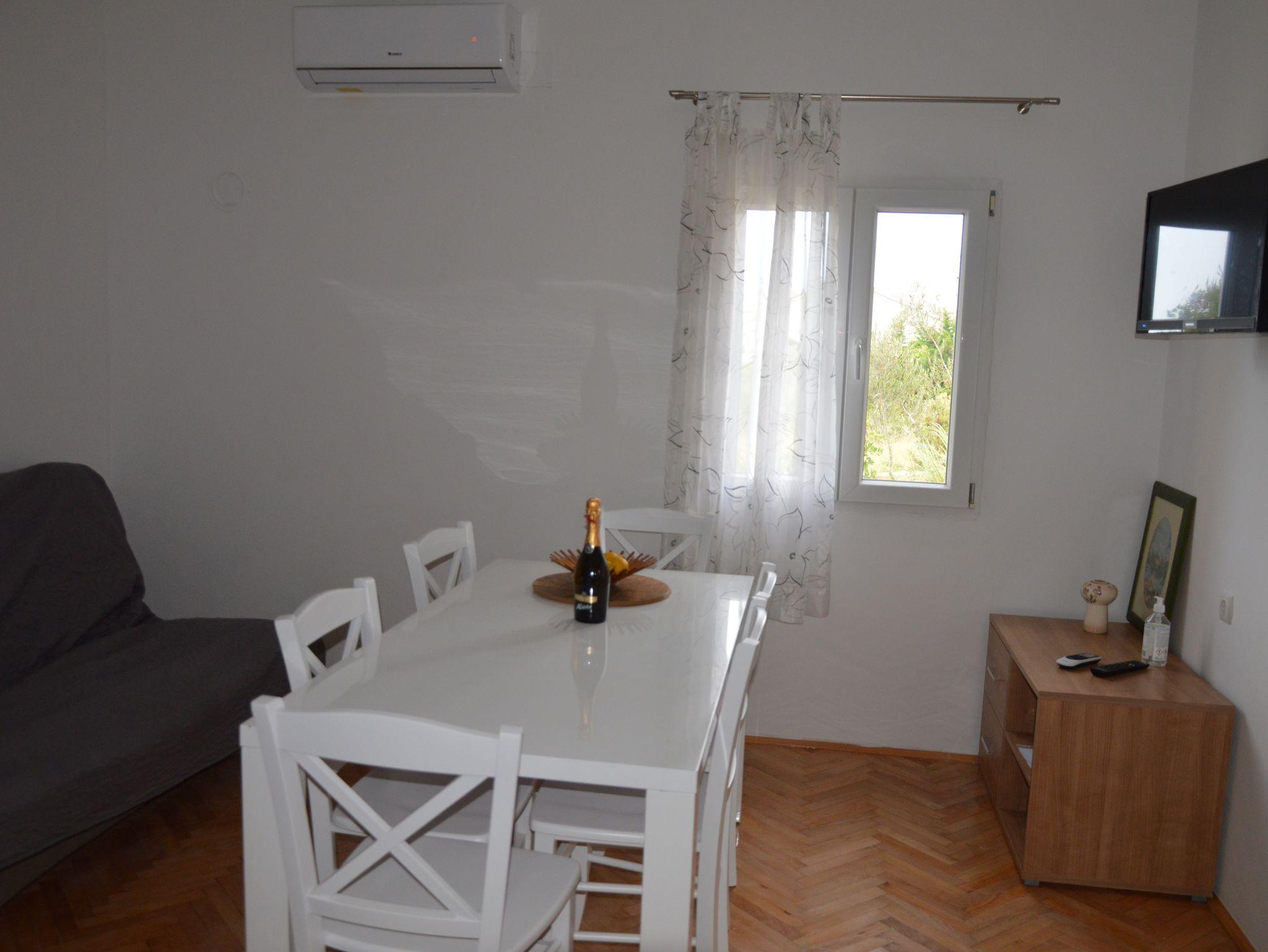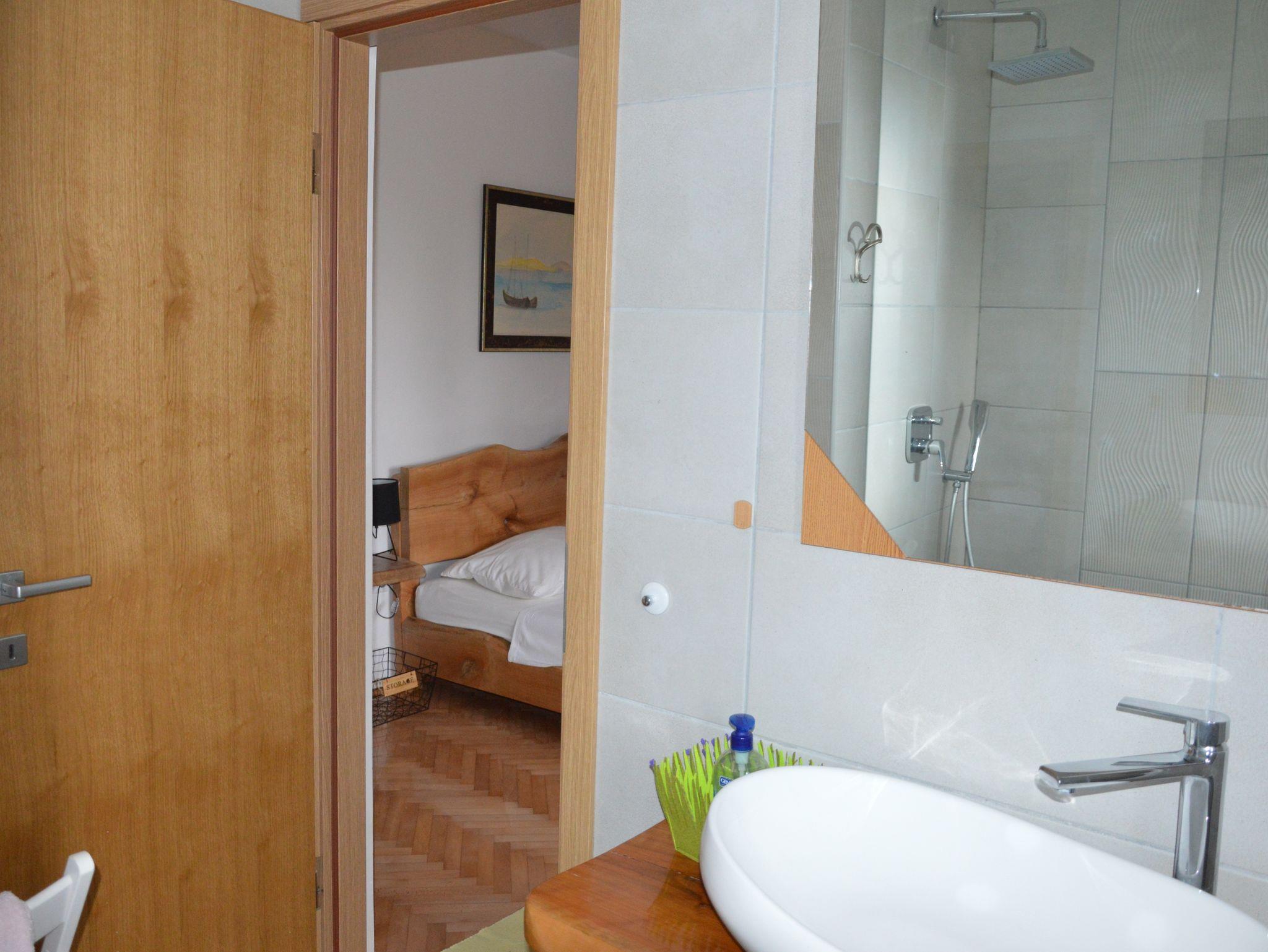 Ferienwohnung bietet Platz für 6 Gäste. Die Betten sind in Schlafzimmern, die es 2 gibt, innerhalb einer Gesamtfläche von 63m2, angeordnet. Die Gäste haben eine eigene Terrasse zur Verfügung, auf der sie in warmen Sommernächten genießen können. Das Apartment bietet Meerblick. Es ist erlaubt, Speisen auf dem Gemeinschafts-Grill vorzubereiten. In der Unterkunftseinheit besteht die Möglichkeit des Mitbringens von Haustieren gegen Aufpreis. In der gebuchten Unterkunftseinheit zahlt man am Ort ein Depositum ( der Preis ist an der Internetseite angeführt ). IM PREIS INBEGRIFFEN: Kurtaxe, Endreinigung, Klimatisierung, Parkplatz, Internet, Bootsanlegeplatz, Bügeleisen, Bügelbrett, Föhn, Sonnenschirm, Liegestühle. VERBINDLICHE ZUSÄTZLICHE KOSTEN: Kaution (300,00 € Einmalzahlung), Aufzahlung für Kurzaufenthalte (prozentualer Zuschlag pro Nächtigungsanzahl: 30% - 1, 20% - 2, 10% - 3). UNVERBINDLICHE ZUSÄTZLICHE KOSTEN: Haustiere (5,00 € pro Nacht). Die Verfügbarkeit zusätzlicher Dienstleistungen in Ihrem reservierten Termin und die Preise derselben (falls nicht aufgeführt) müssen im Voraus überprüft werden. Zusätzliche Dienstleistungen die in der Zahlungsaufforderung nicht aufgeführt sind werden direkt beim Vermieter bezahlt, angenommen der Gast nutzt auch diese. Ermäßigung auf den Grundpreis: Gratistag 21=19 (bei einem Aufenthalt von 21 Tagen oder mehr erhalten Sie 2 Gratistage für den Aufenthalt bis 31.12.26).