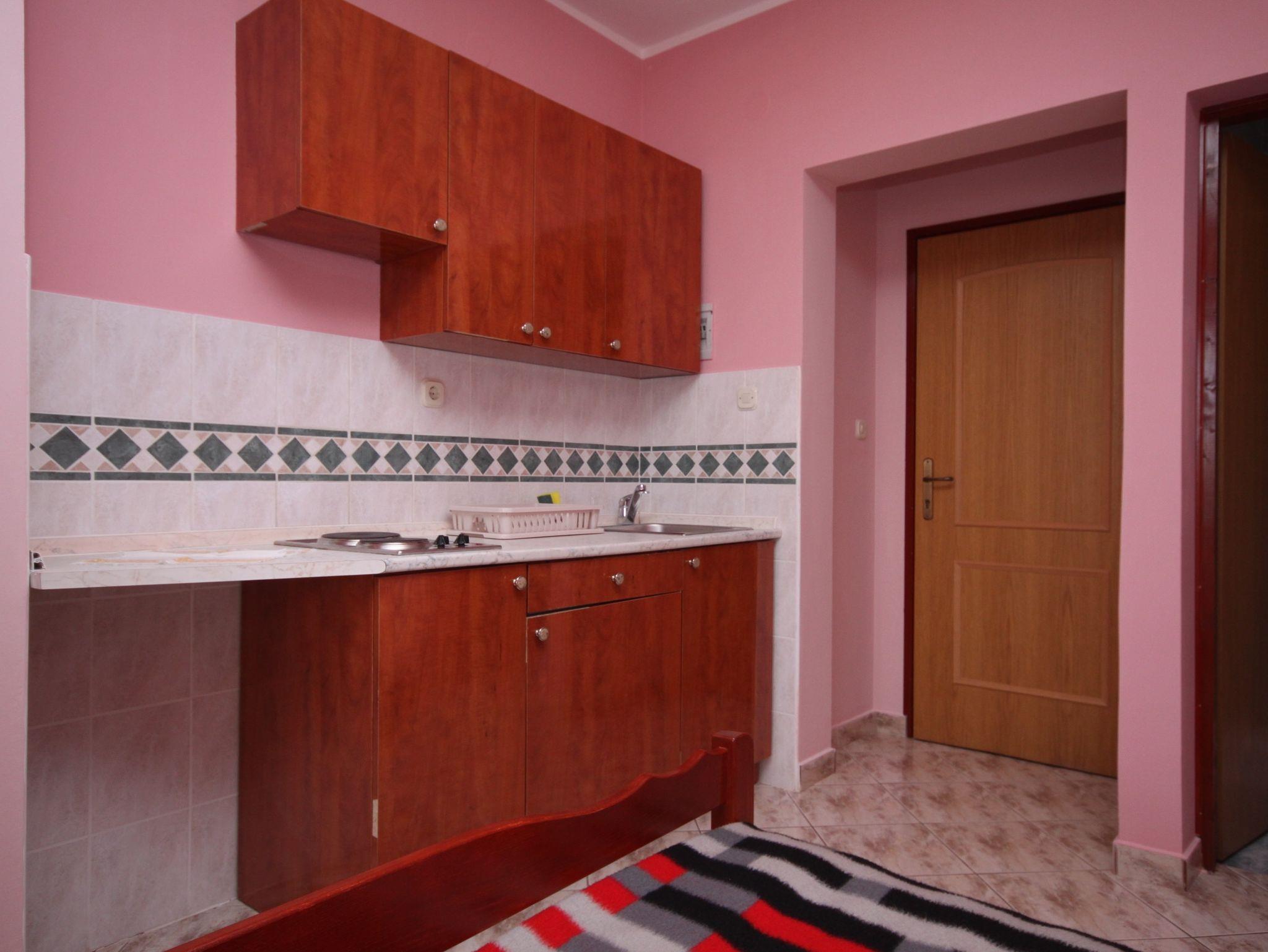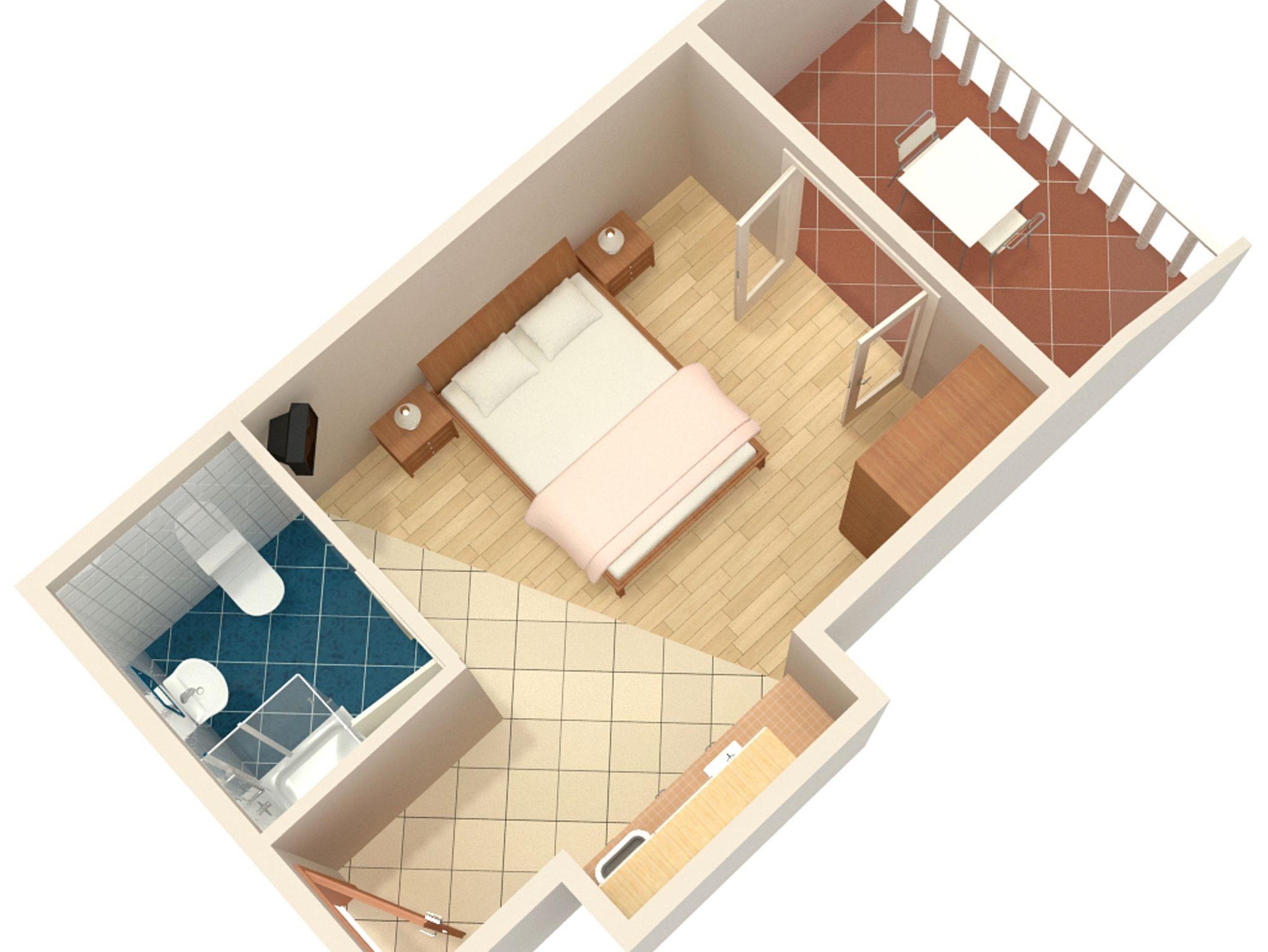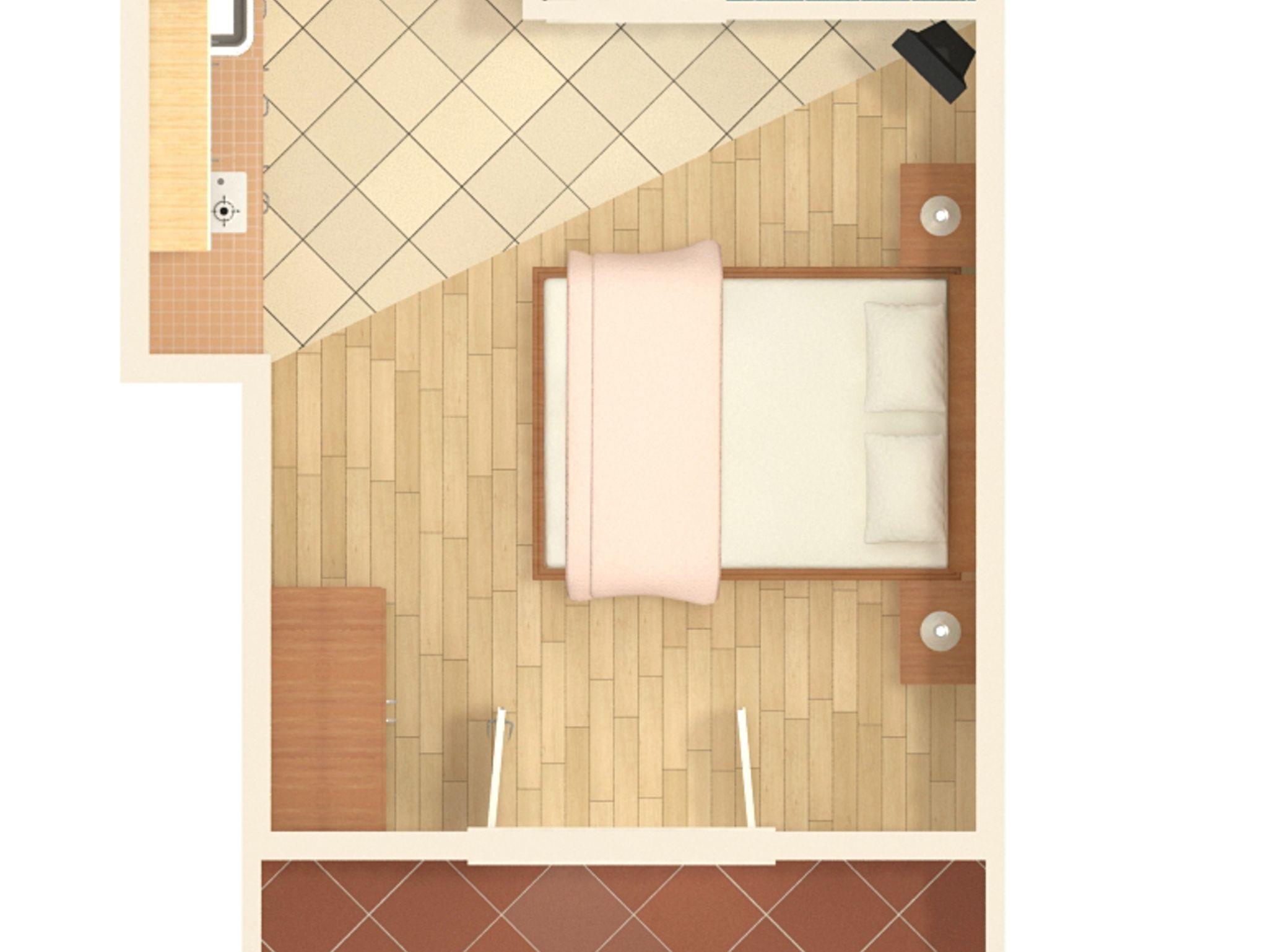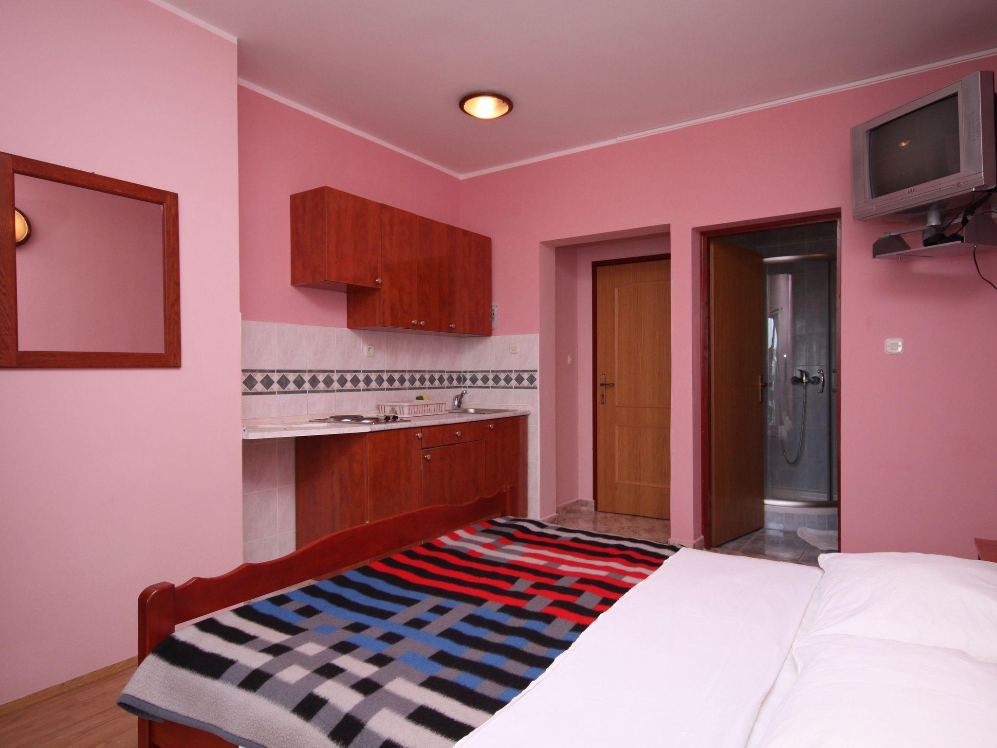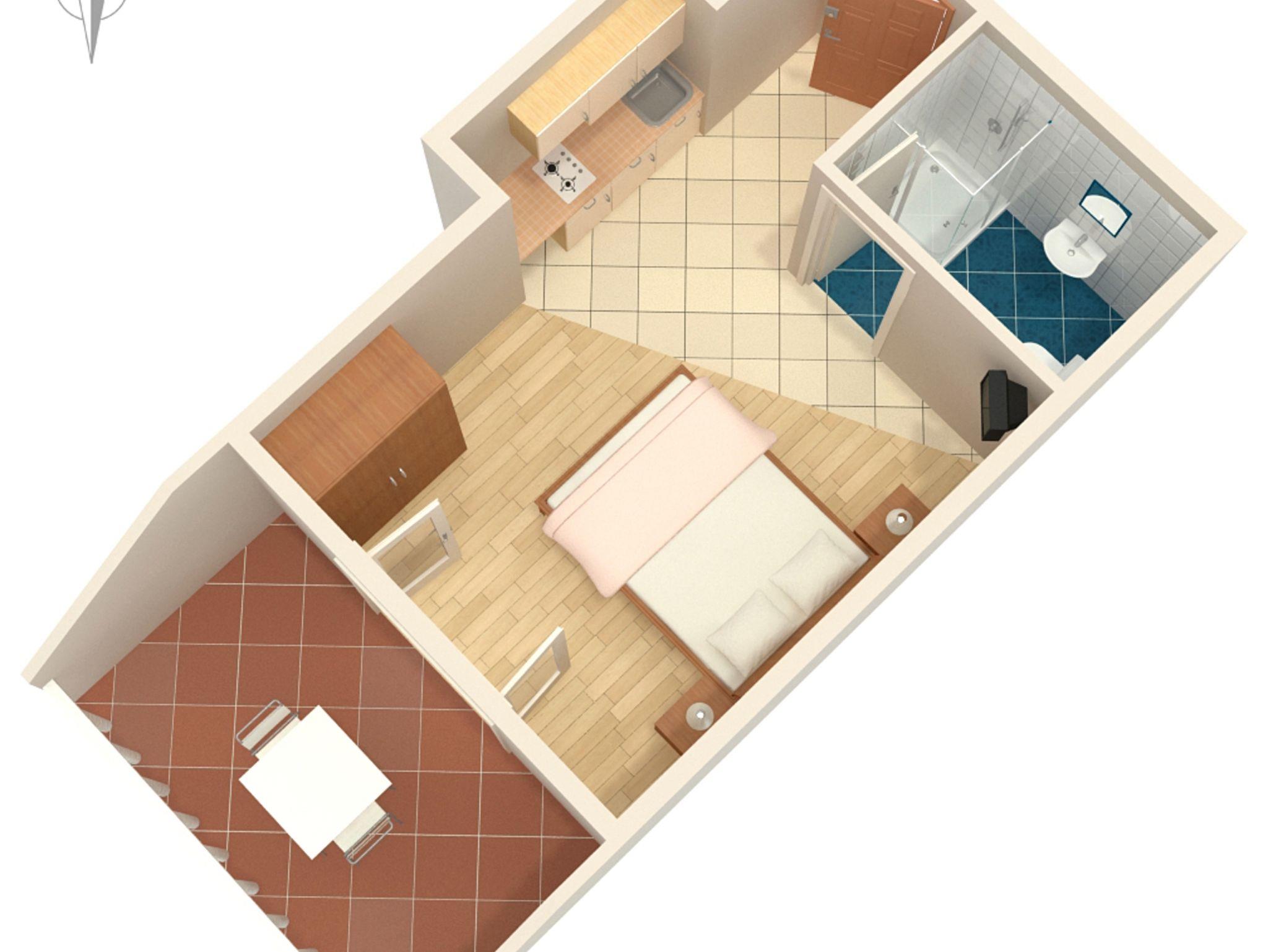 Studio bietet Platz für 2 Gäste. Die Betten sind in Schlafzimmern, die es 1 gibt, innerhalb einer Gesamtfläche von 17m2, angeordnet. Die Gäste haben eine eigene Terrasse zur Verfügung, auf der sie in warmen Sommernächten genießen können. Das Studio-Apartment bietet Meerblick. Es ist erlaubt, Speisen auf dem Gemeinschafts-Grill vorzubereiten. In der gebuchten Unterkunftseinheit zahlt man am Ort ein Depositum ( der Preis ist an der Internetseite angeführt ). IM PREIS INBEGRIFFEN: Kurtaxe, Endreinigung, Klimatisierung, Parkplatz, Internet. VERBINDLICHE ZUSÄTZLICHE KOSTEN: Kaution (150,00 € Einmalzahlung), Aufzahlung für Kurzaufenthalte (prozentualer Zuschlag pro Nächtigungsanzahl: 30% - 1, 20% - 2, 10% - 3). UNVERBINDLICHE ZUSÄTZLICHE KOSTEN: Wäschewaschen (10,00 € Waschen). Die Verfügbarkeit zusätzlicher Dienstleistungen in Ihrem reservierten Termin und die Preise derselben (falls nicht aufgeführt) müssen im Voraus überprüft werden. Zusätzliche Dienstleistungen die in der Zahlungsaufforderung nicht aufgeführt sind werden direkt beim Vermieter bezahlt, angenommen der Gast nutzt auch diese.
