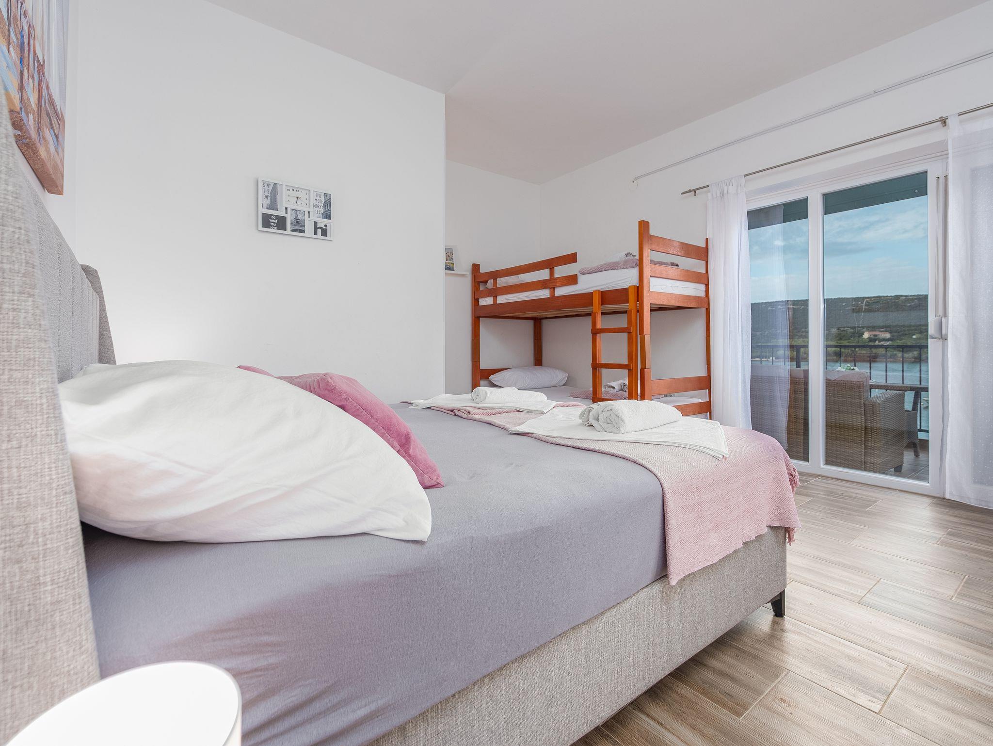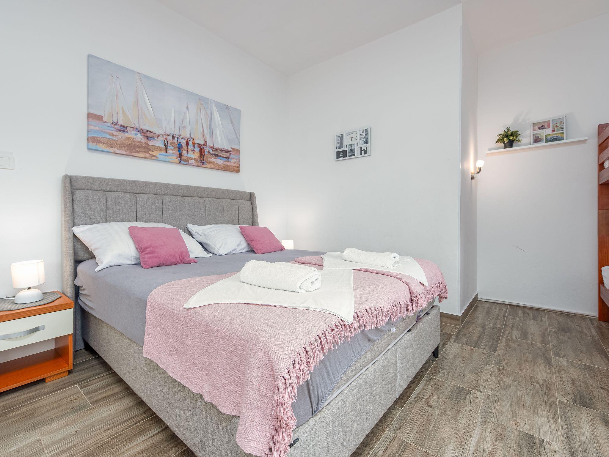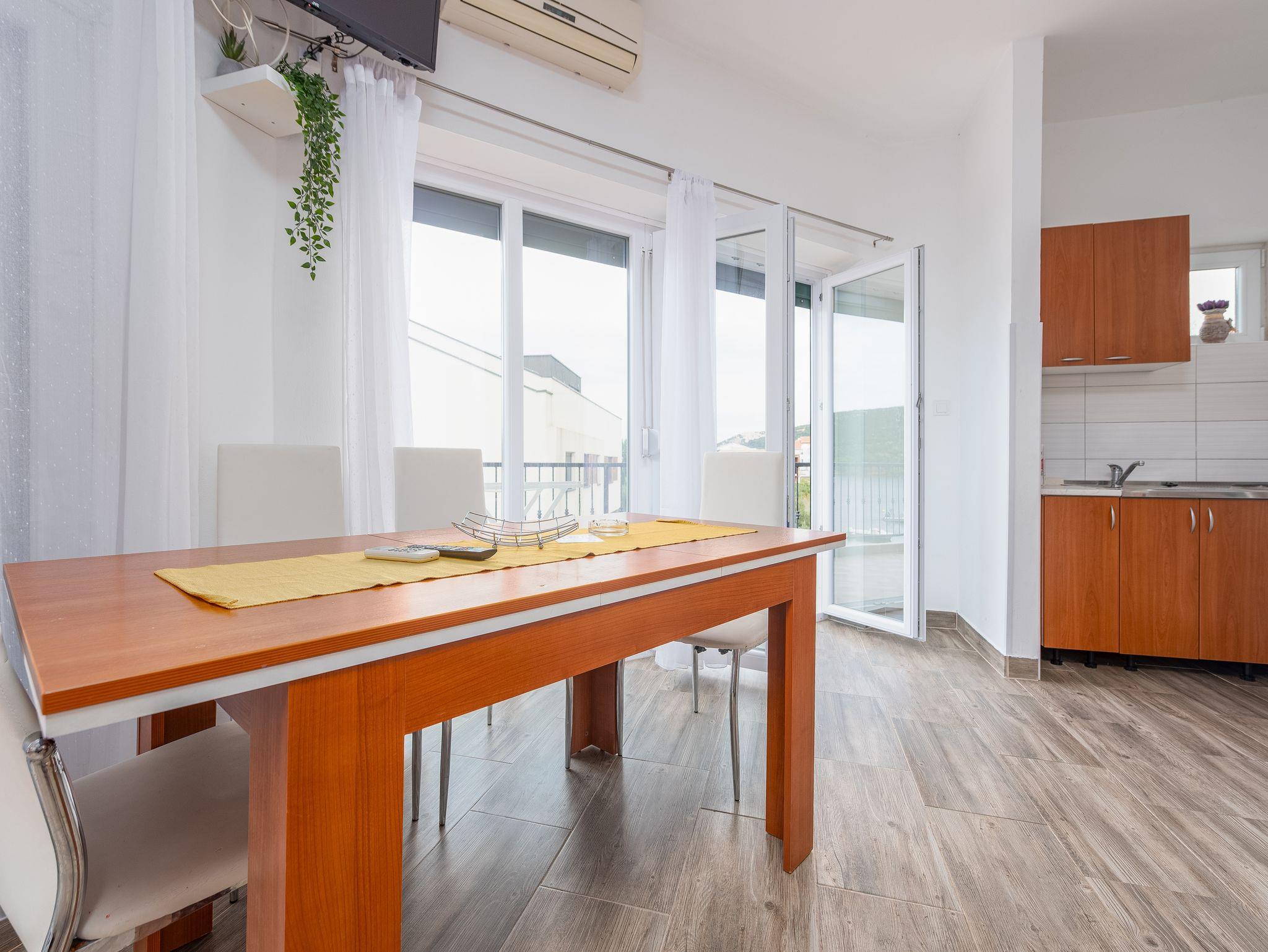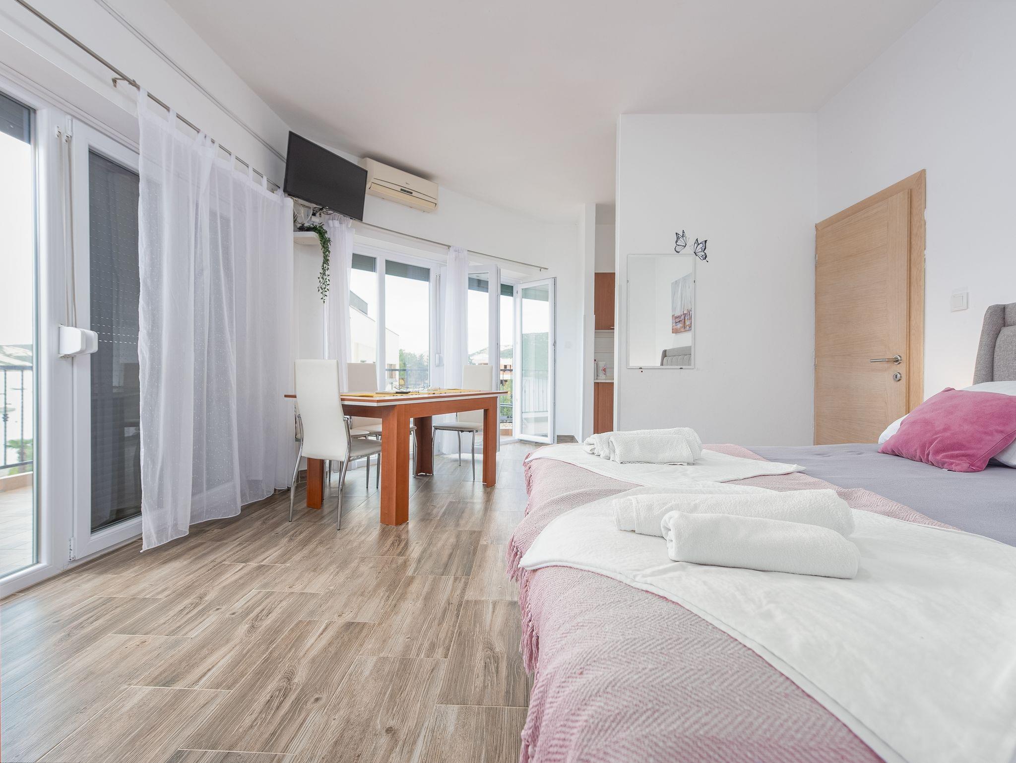 Studio bietet Platz für 4 Gäste. Die Betten sind in Schlafzimmern, die es 1 gibt, innerhalb einer Gesamtfläche von 33m2, angeordnet. Die Gäste haben eine eigene Terrasse zur Verfügung, auf der sie in warmen Sommernächten genießen können. Das Studio-Apartment bietet Meerblick. Es ist erlaubt, Speisen auf dem Gemeinschafts-Grill vorzubereiten. IM PREIS INBEGRIFFEN: Kurtaxe, Endreinigung, Klimatisierung, Parkplatz, Bootsanlegeplatz, Föhn. VERBINDLICHE ZUSÄTZLICHE KOSTEN: Aufzahlung für Kurzaufenthalte (prozentualer Zuschlag pro Nächtigungsanzahl: 30% - 1, 20% - 2, 10% - 3). Die Verfügbarkeit zusätzlicher Dienstleistungen in Ihrem reservierten Termin und die Preise derselben (falls nicht aufgeführt) müssen im Voraus überprüft werden. Zusätzliche Dienstleistungen die in der Zahlungsaufforderung nicht aufgeführt sind werden direkt beim Vermieter bezahlt, angenommen der Gast nutzt auch diese.
