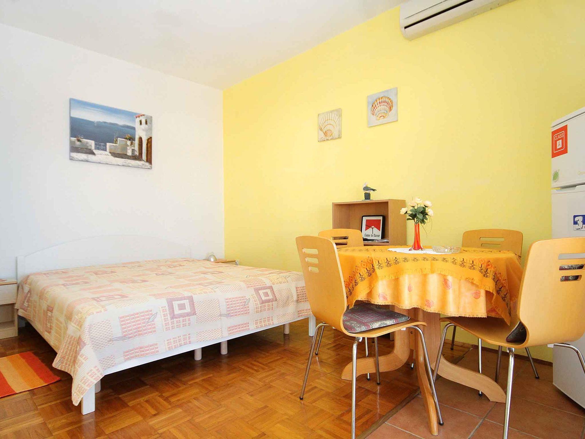 Ferienwohnung bietet Platz für 4 Gäste. Die Betten sind in Schlafzimmern, die es 1 gibt, und in Esszimmer, innerhalb einer Gesamtfläche von 33m2, angeordnet. Die Gäste haben eine eigene Terrasse zur Verfügung, auf der sie in warmen Sommernächten genießen können. Das Apartment bietet Meerblick. Es ist erlaubt, Speisen auf dem Gemeinschafts-Grill vorzubereiten. Während ihres Aufenthalts können Gäste das gemeinsam zur Nutzung stehende Schwimmbad benutzen. In der gebuchten Unterkunftseinheit zahlt man am Ort ein Depositum ( der Preis ist an der Internetseite angeführt ). IM PREIS INBEGRIFFEN: Kurtaxe, Endreinigung, Pool, Parkplatz, Internet, Bügeleisen, Bügelbrett, Föhn, tragbarer Grill. VERBINDLICHE ZUSÄTZLICHE KOSTEN: Kaution (200,00 € Einmalzahlung). UNVERBINDLICHE ZUSÄTZLICHE KOSTEN: Frühstück (10,00 €, 50% Nachlass für Kinder zwischen 4 und 12 Jahren, Kinder bis 4 Jahre sind frei.), Klimatisierung (7,00 € pro Nacht), Wäschewaschen (10,00 € Waschen). Die Verfügbarkeit zusätzlicher Dienstleistungen in Ihrem reservierten Termin und die Preise derselben (falls nicht aufgeführt) müssen im Voraus überprüft werden. Zusätzliche Dienstleistungen die in der Zahlungsaufforderung nicht aufgeführt sind werden direkt beim Vermieter bezahlt, angenommen der Gast nutzt auch diese.