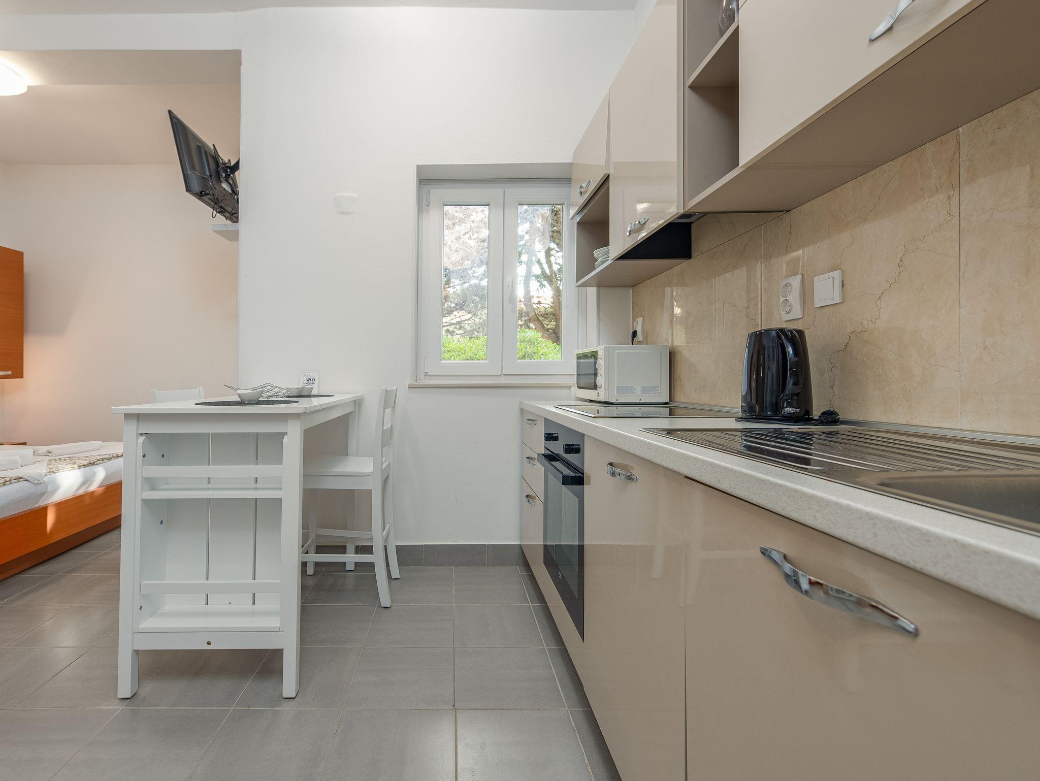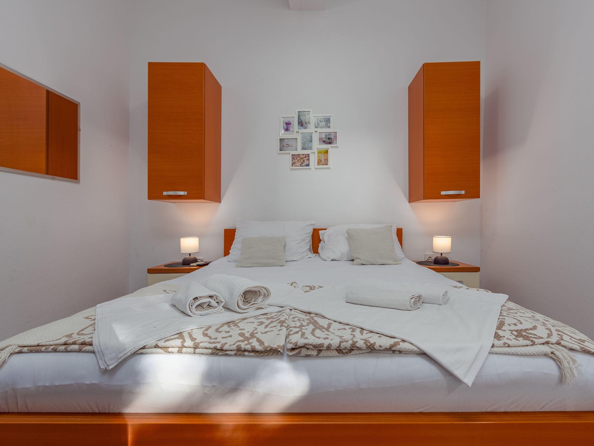 Studio bietet Platz für 2 Gäste. Die Betten sind in Schlafzimmern, die es 1 gibt, innerhalb einer Gesamtfläche von 18m2, angeordnet. Die Gäste haben eine eigene Terrasse zur Verfügung, auf der sie in warmen Sommernächten genießen können. Es ist erlaubt, Speisen auf dem Gemeinschafts-Grill vorzubereiten. IM PREIS INBEGRIFFEN: Kurtaxe, Endreinigung, Klimatisierung, Parkplatz, Bootsanlegeplatz, Föhn. VERBINDLICHE ZUSÄTZLICHE KOSTEN: Aufzahlung für Kurzaufenthalte (prozentualer Zuschlag pro Nächtigungsanzahl: 30% - 1, 20% - 2, 10% - 3). Die Verfügbarkeit zusätzlicher Dienstleistungen in Ihrem reservierten Termin und die Preise derselben (falls nicht aufgeführt) müssen im Voraus überprüft werden. Zusätzliche Dienstleistungen die in der Zahlungsaufforderung nicht aufgeführt sind werden direkt beim Vermieter bezahlt, angenommen der Gast nutzt auch diese.